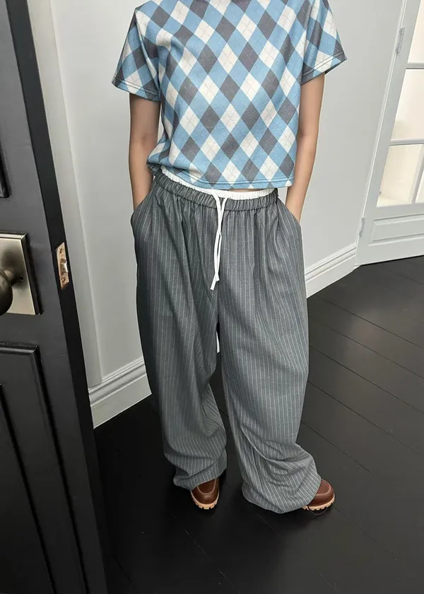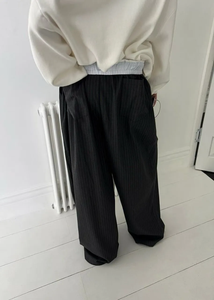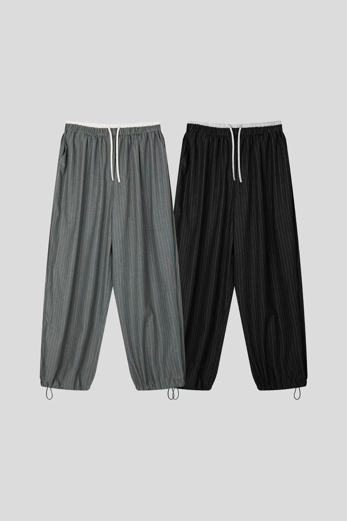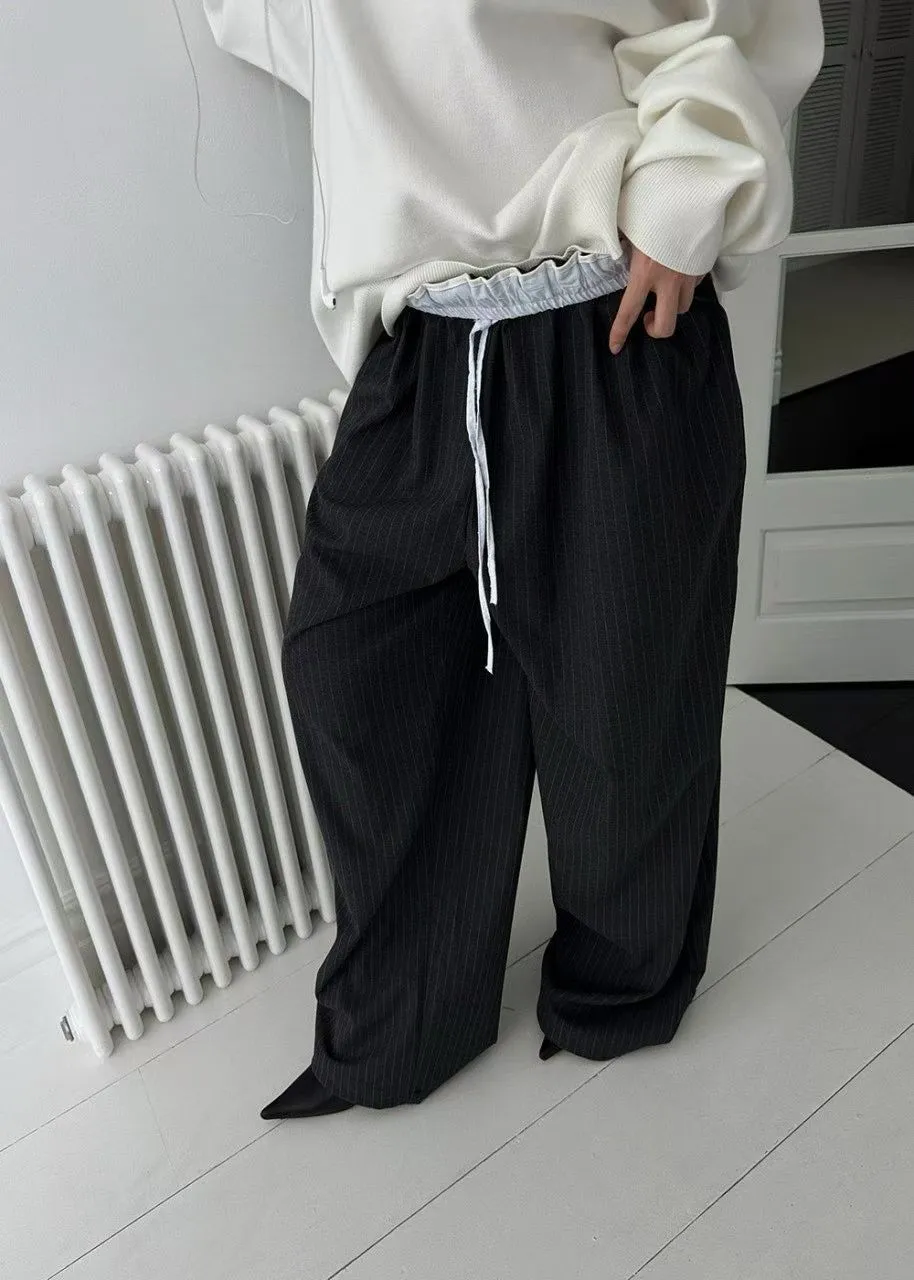 25JC21 寬鬆直條撞色褲頭直紋西裝長褲 2色