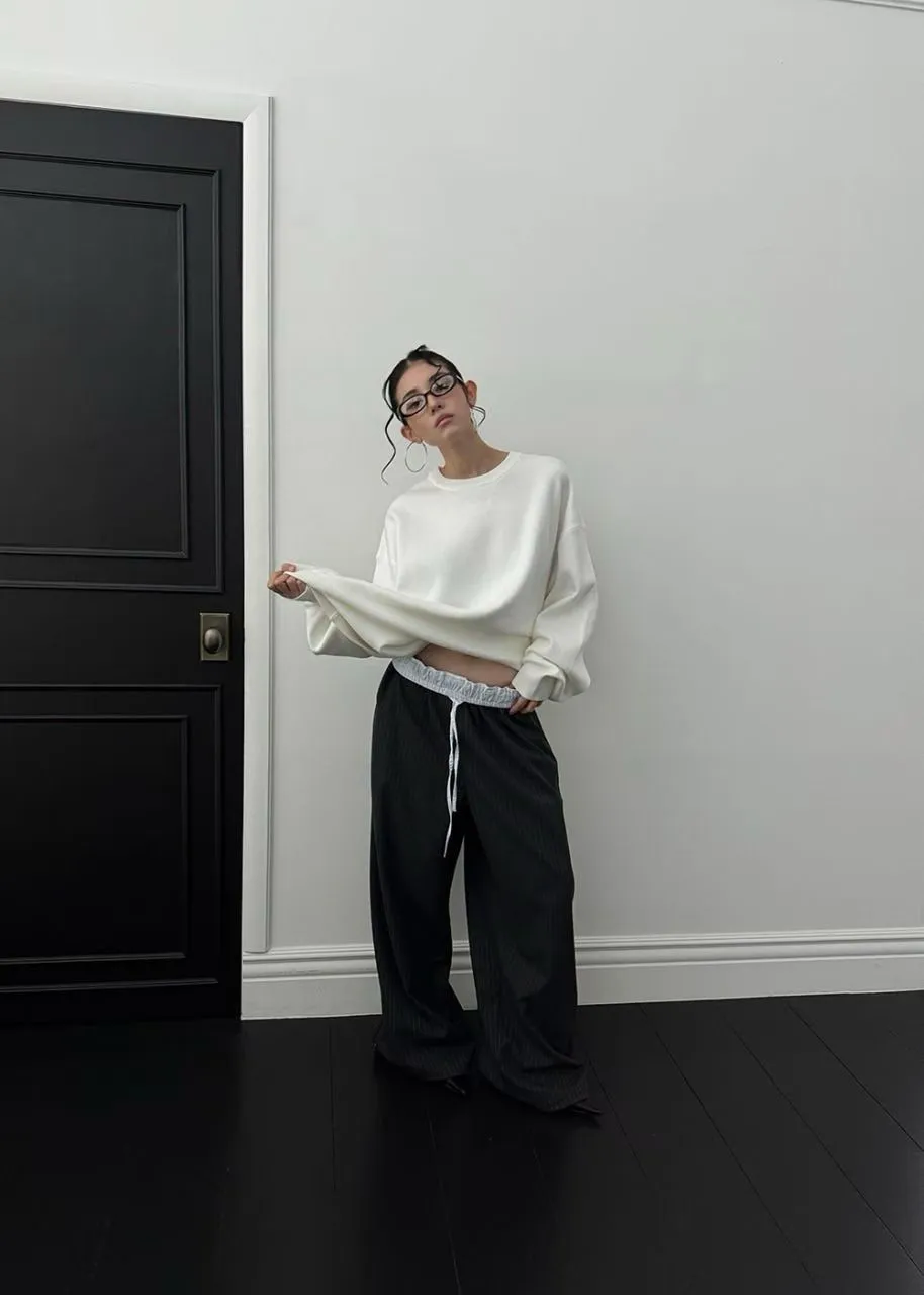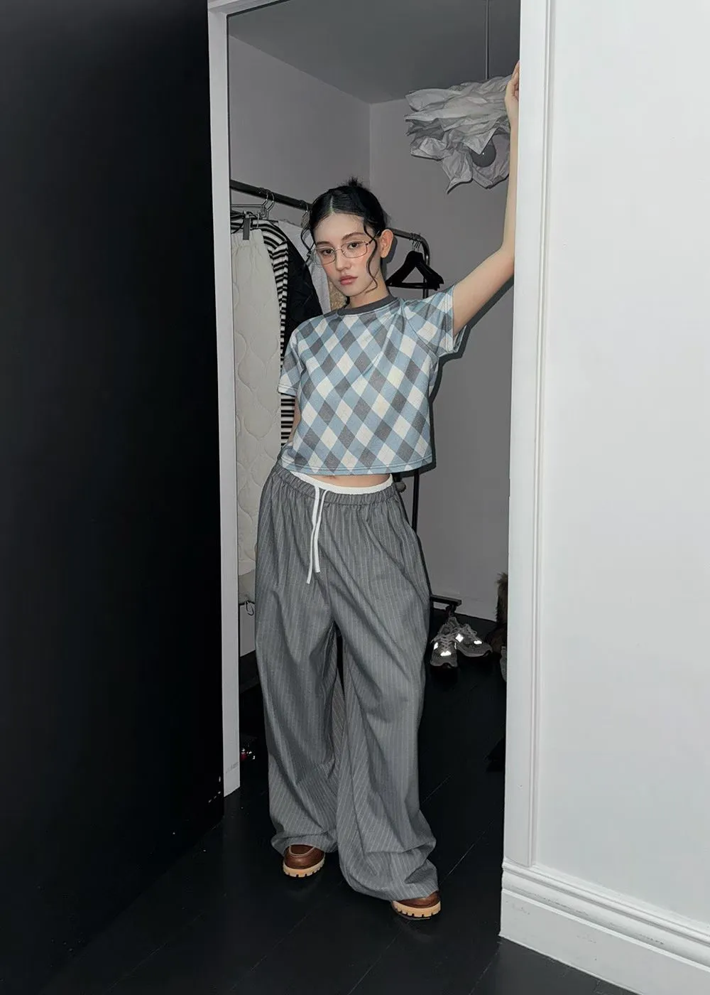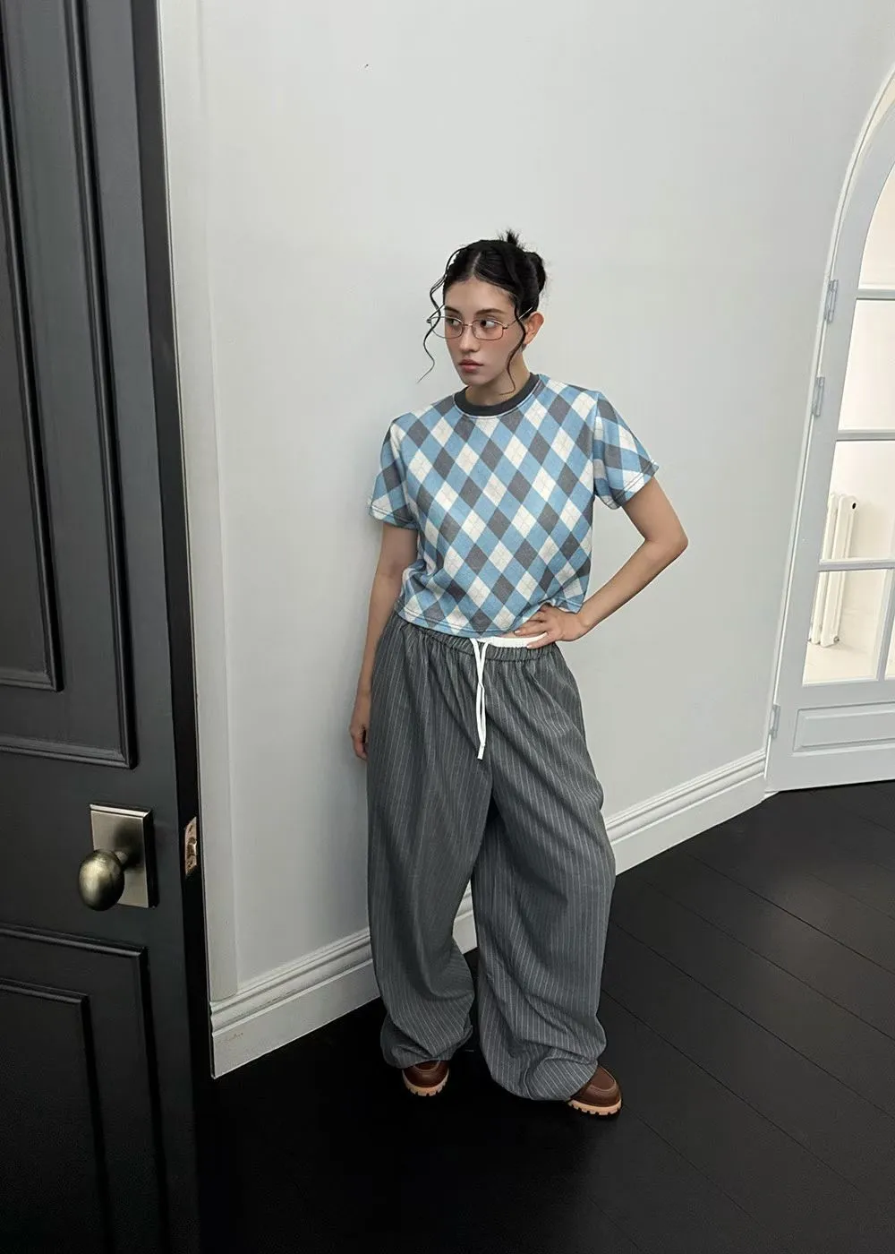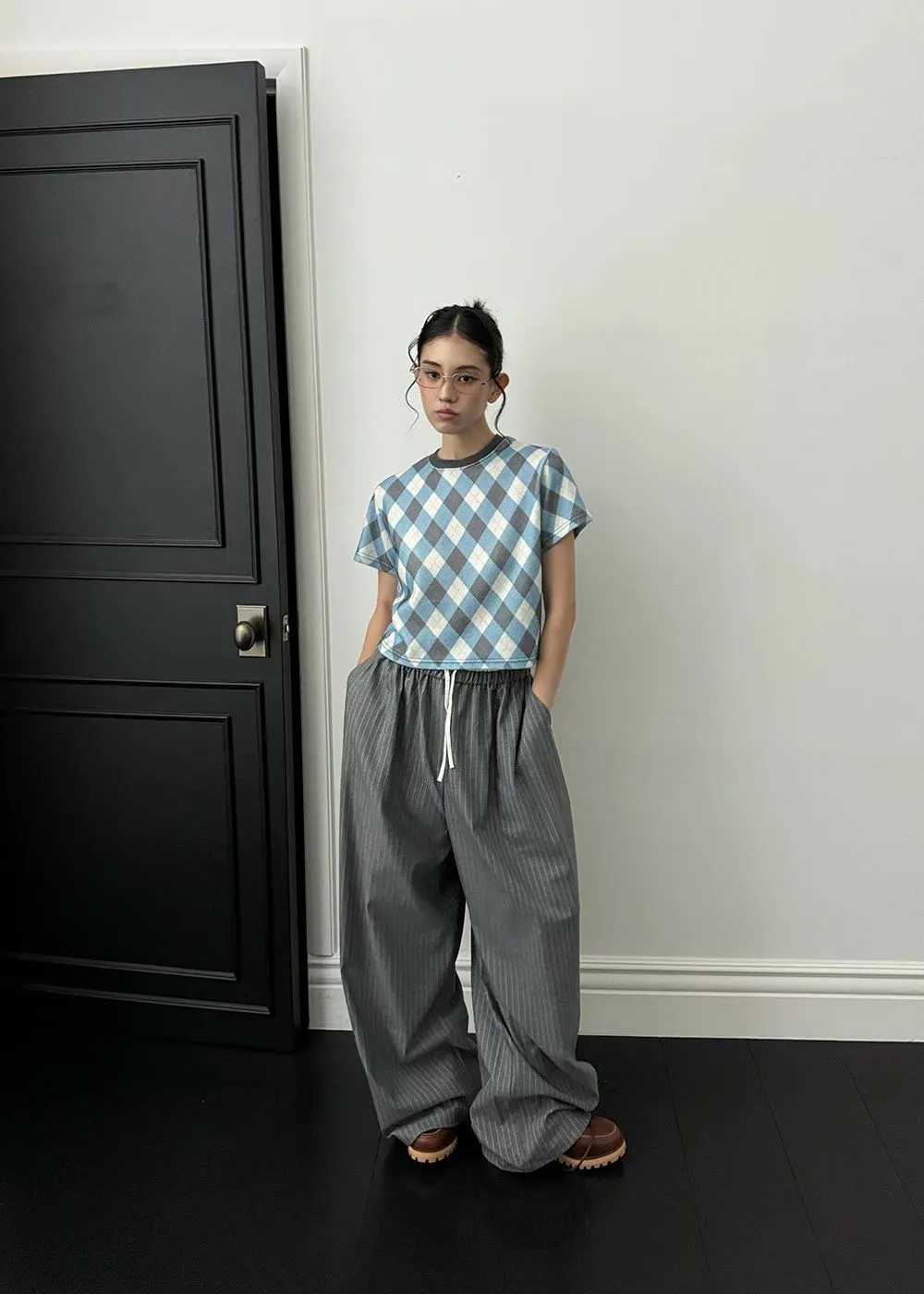 25JC21 寬鬆直條撞色褲頭直紋西裝長褲 2色