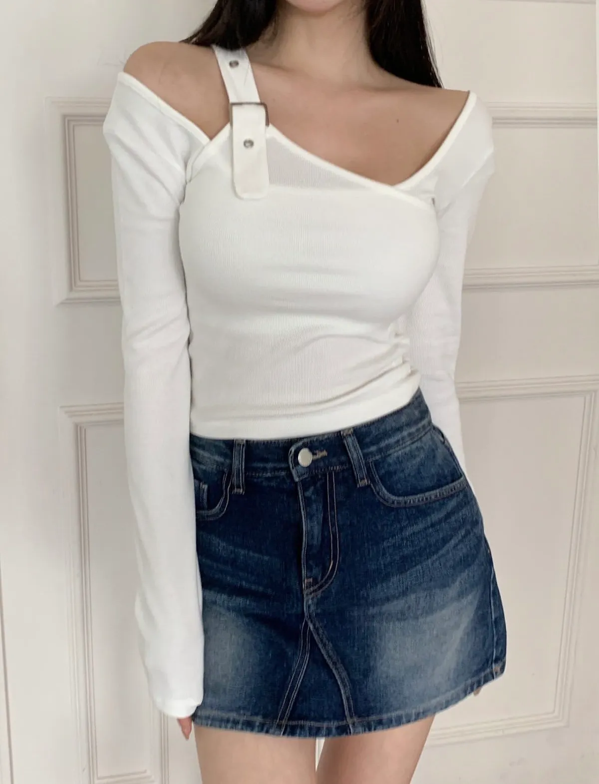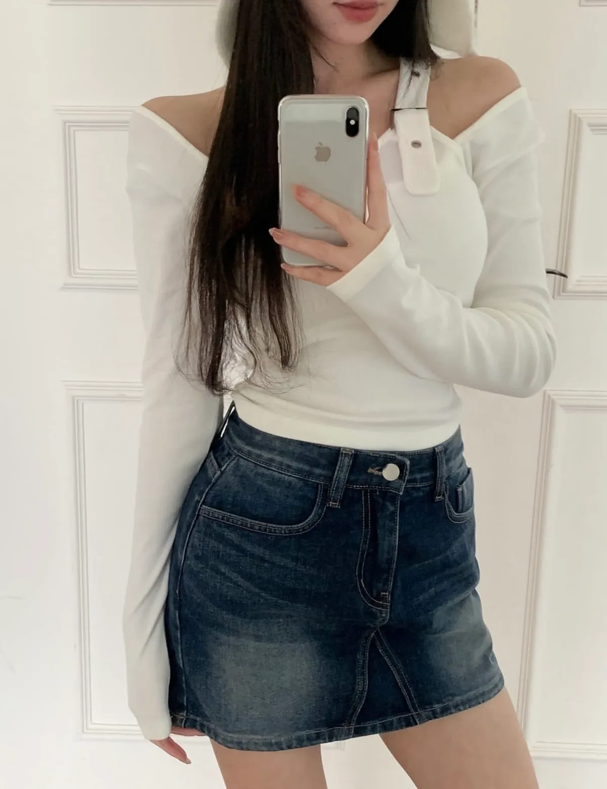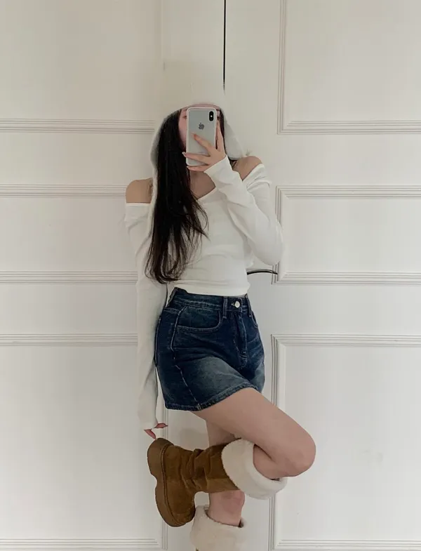 25JD28 新品)深洗色牛仔短褲裙 SML