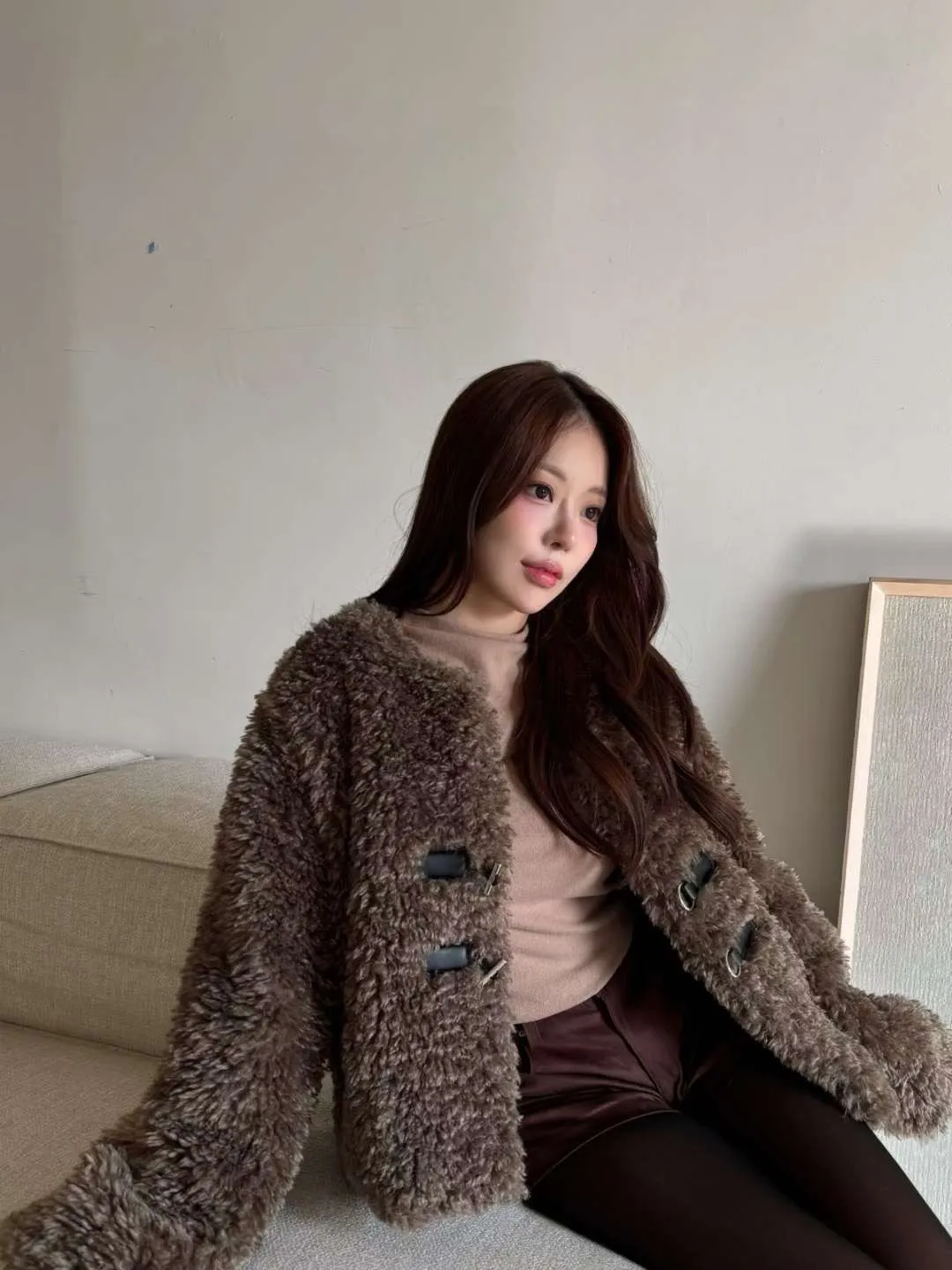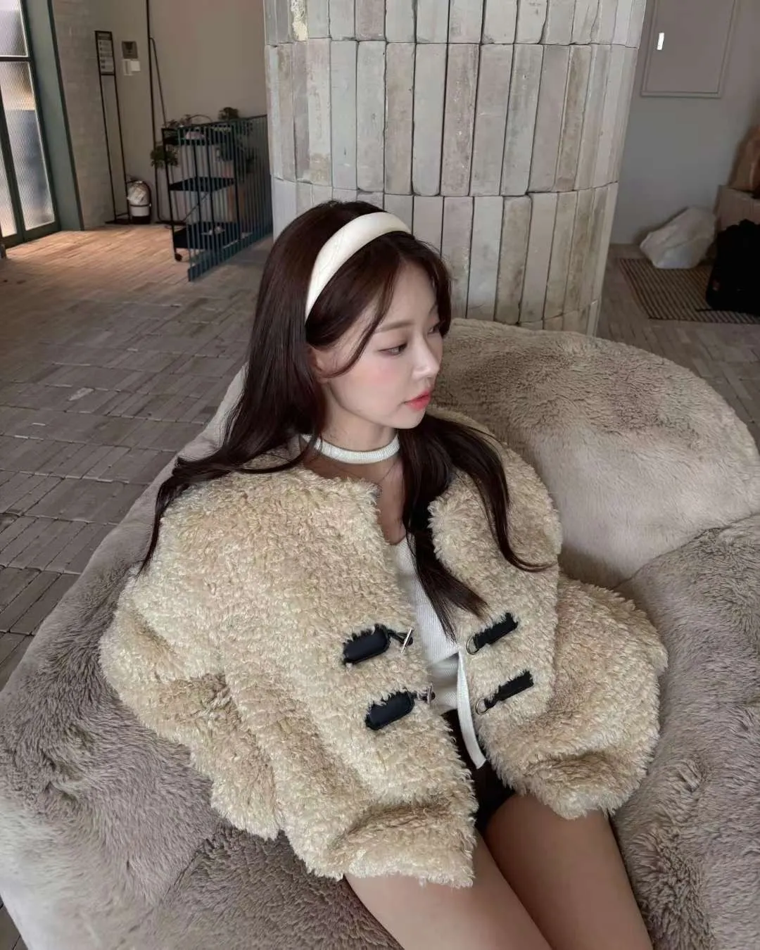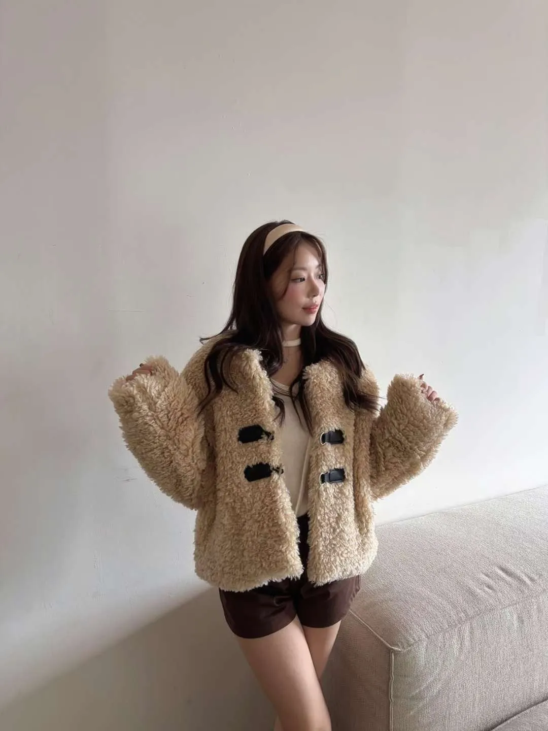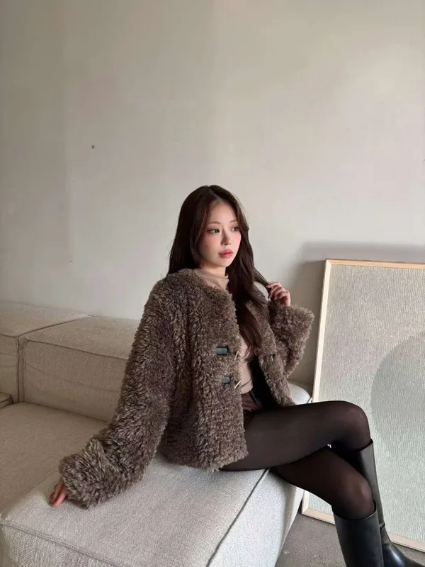 25JE04 毛毛T扣菱紋夾棉外套 2色