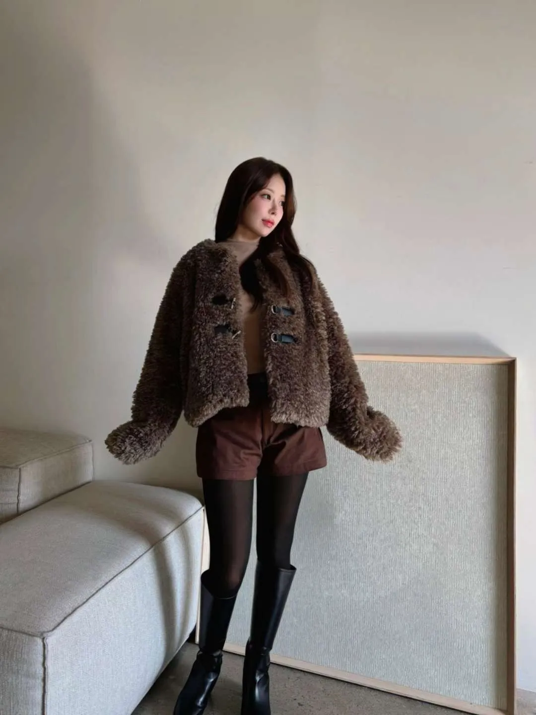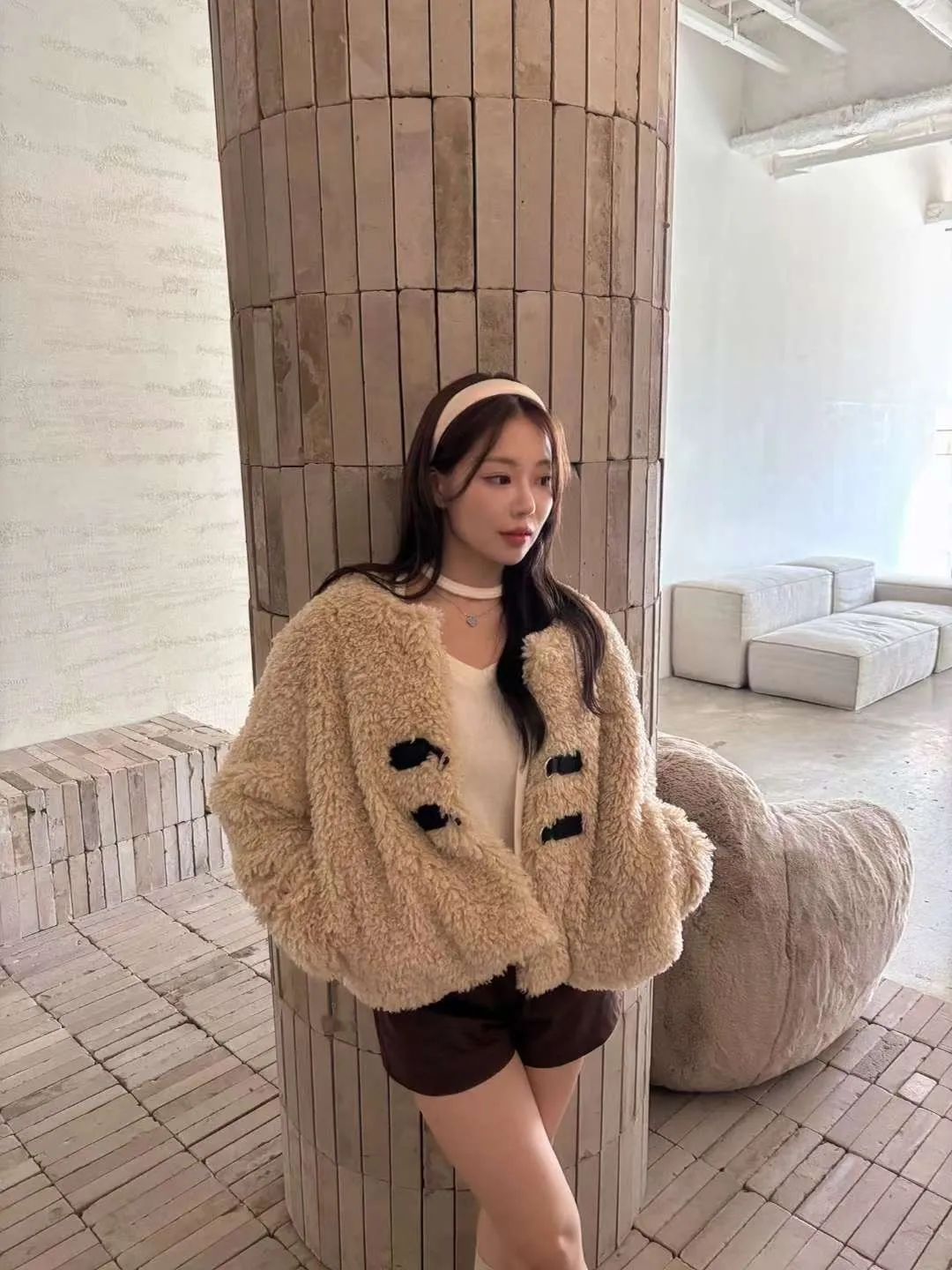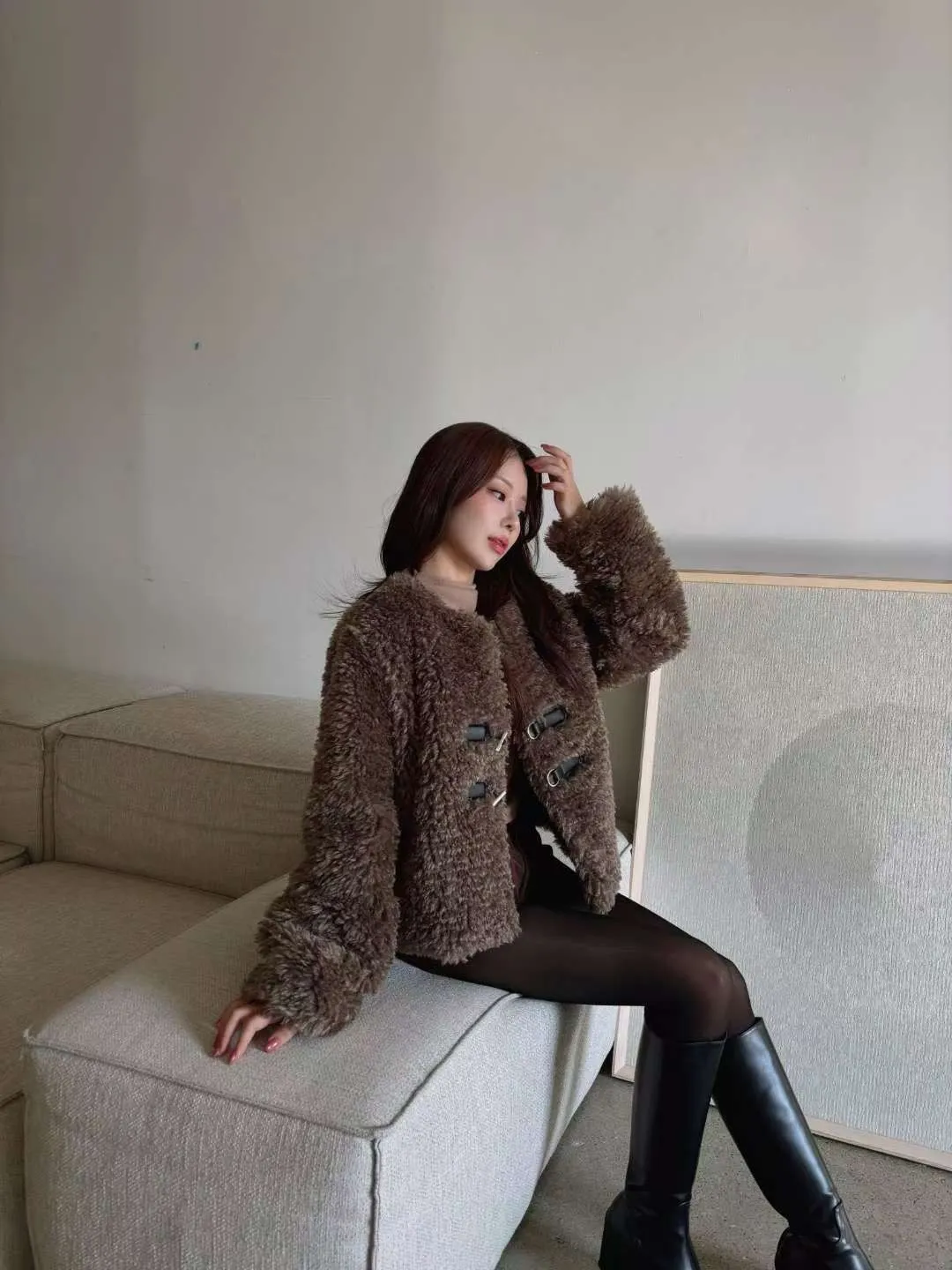 25JE04 毛毛T扣菱紋夾棉外套 2色