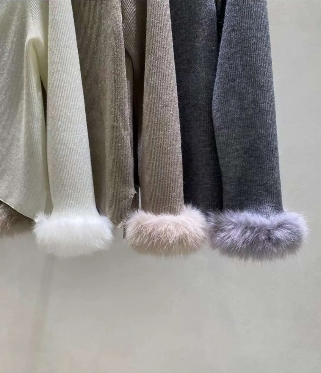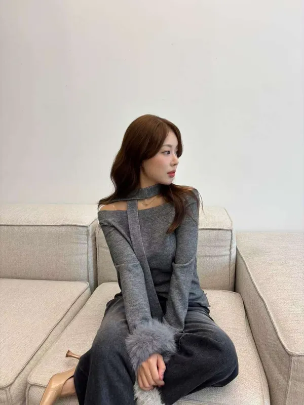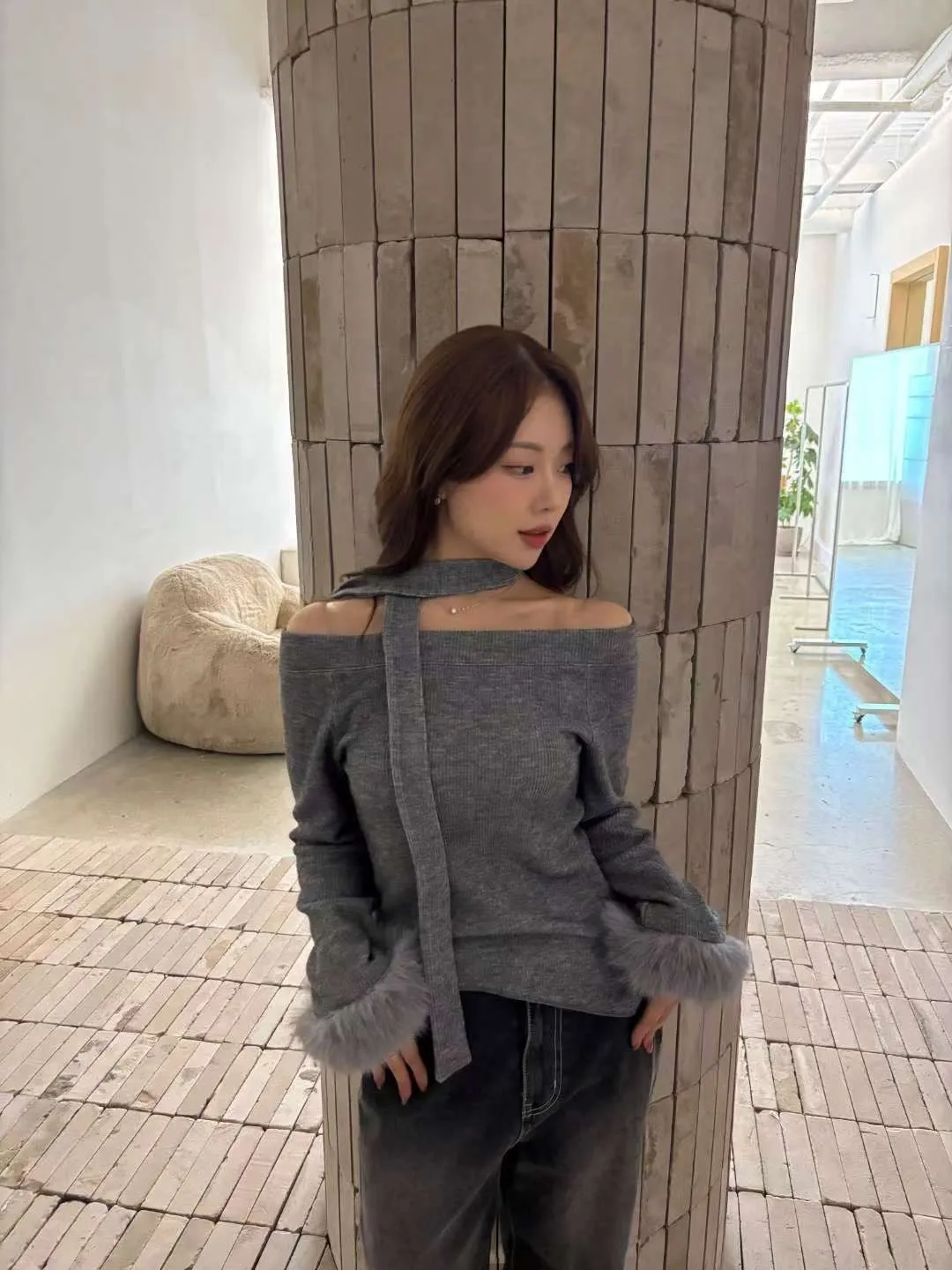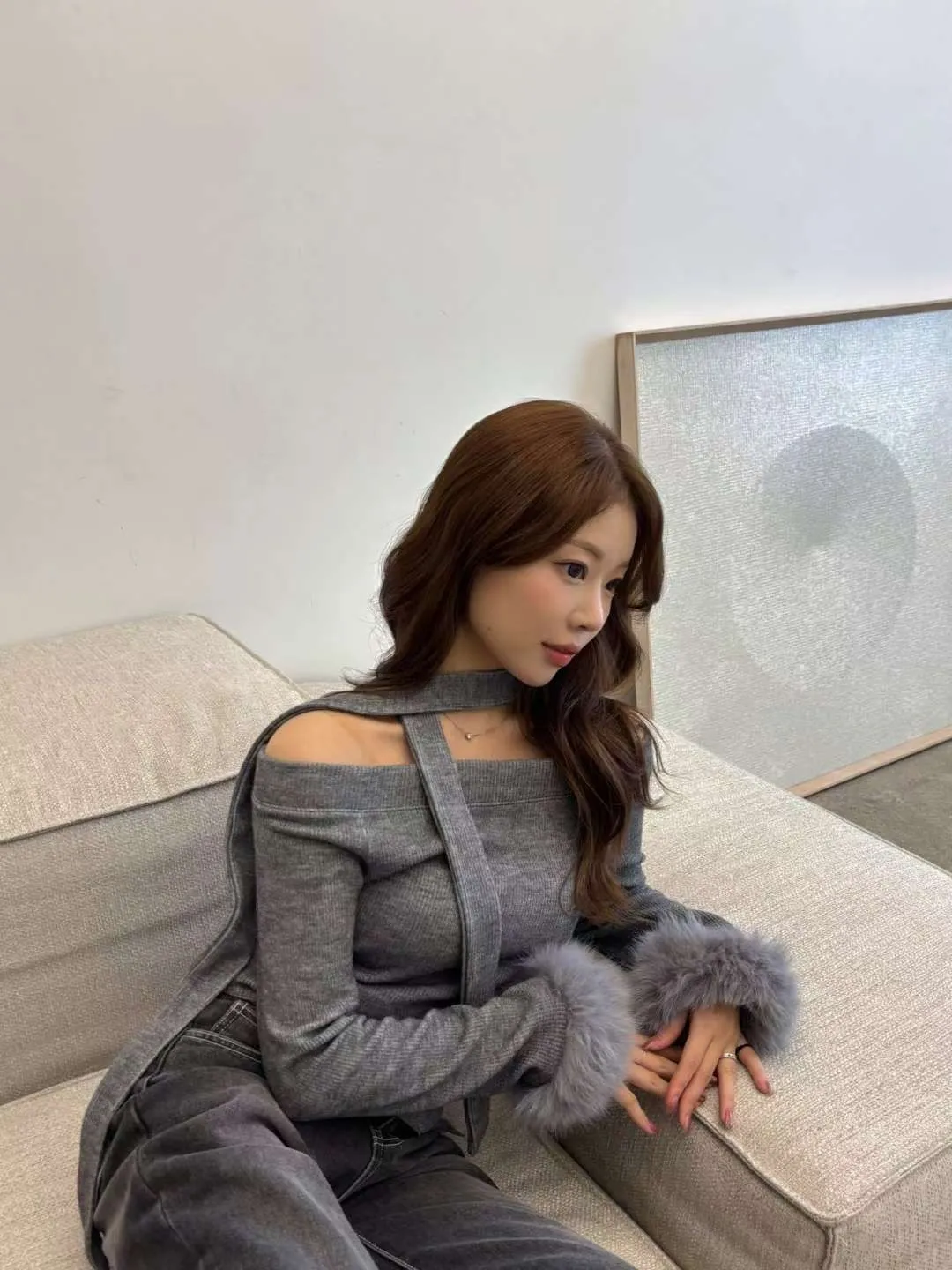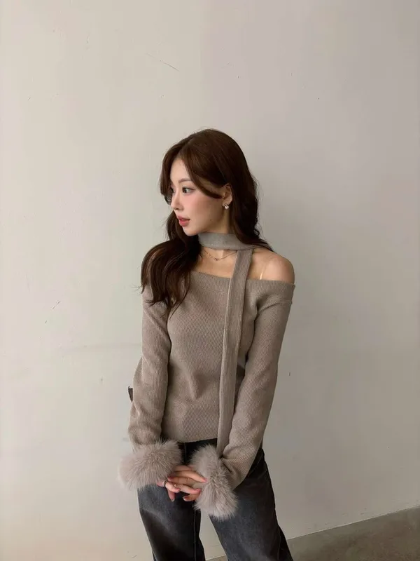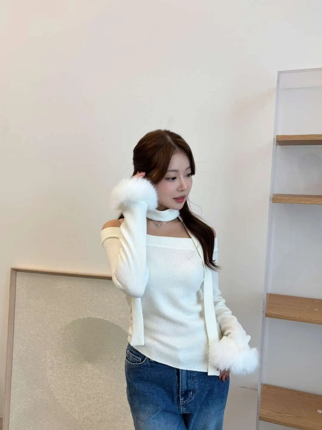 25JE05 袖拼毛毛上衣+綁帶 3色