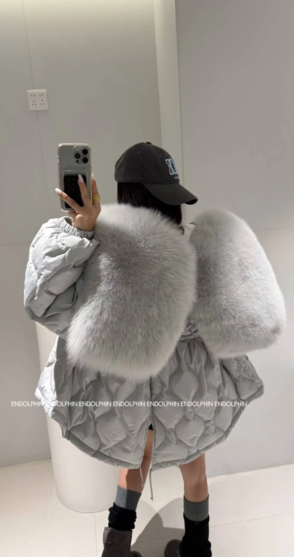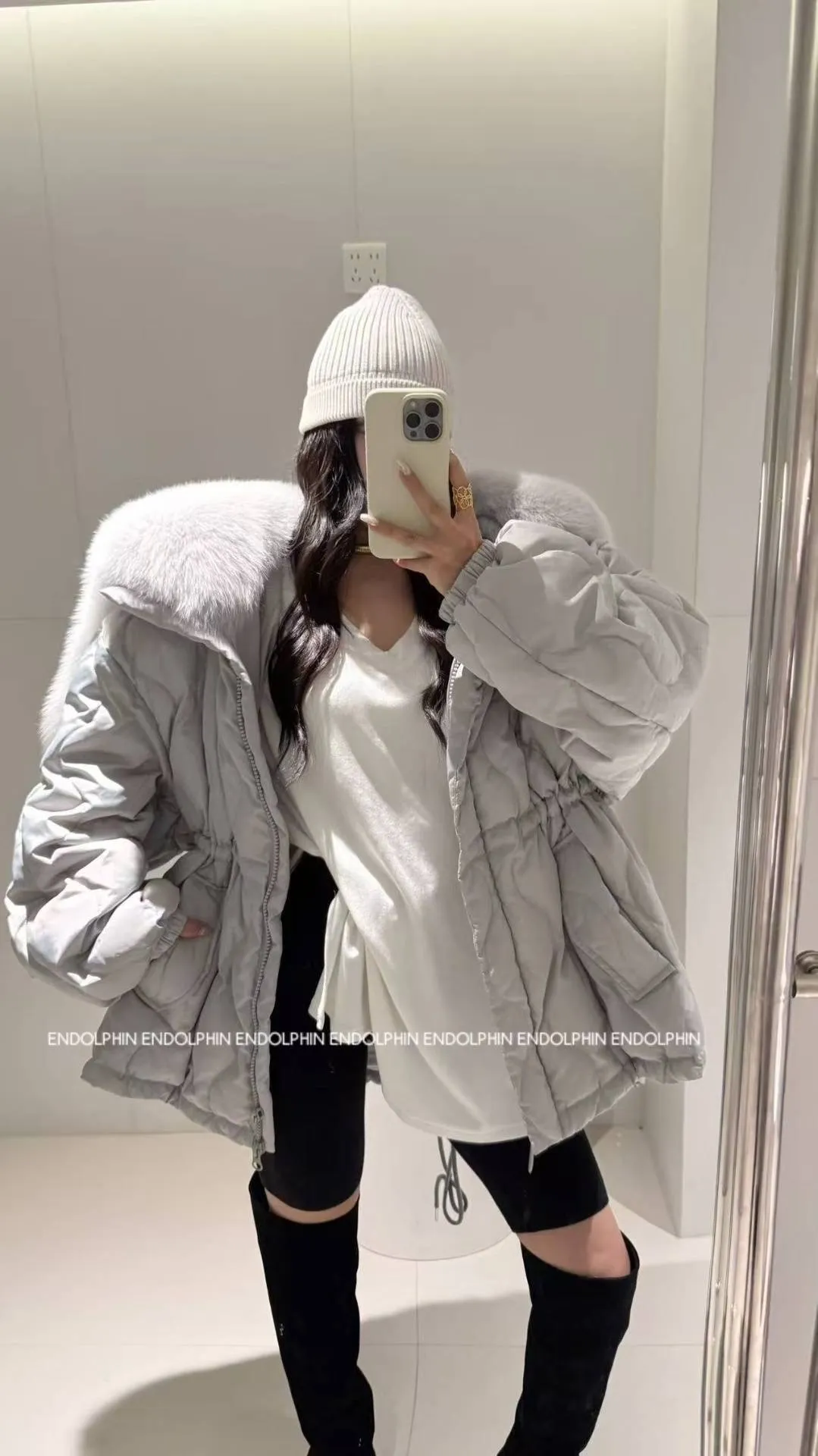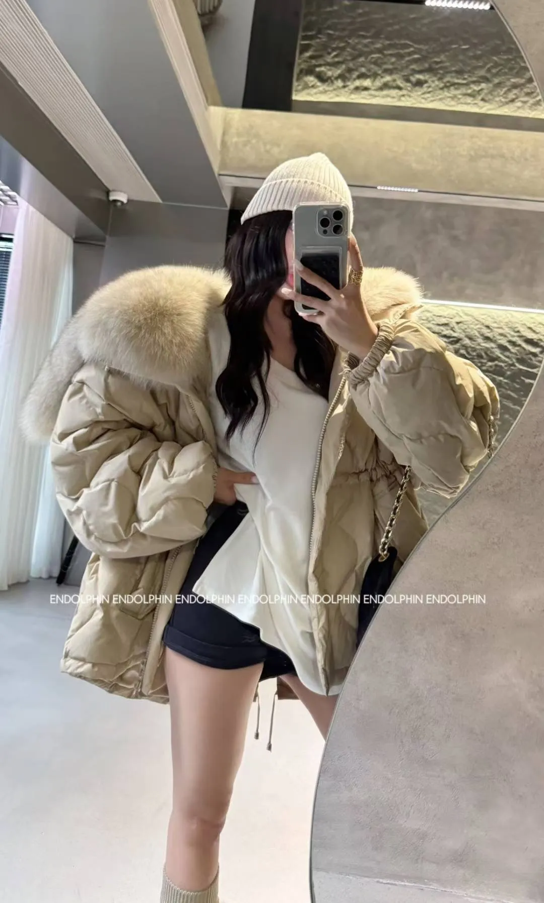 25JF01 狐狸毛(可拆大水手領)鴨絨前短後長外套 3色