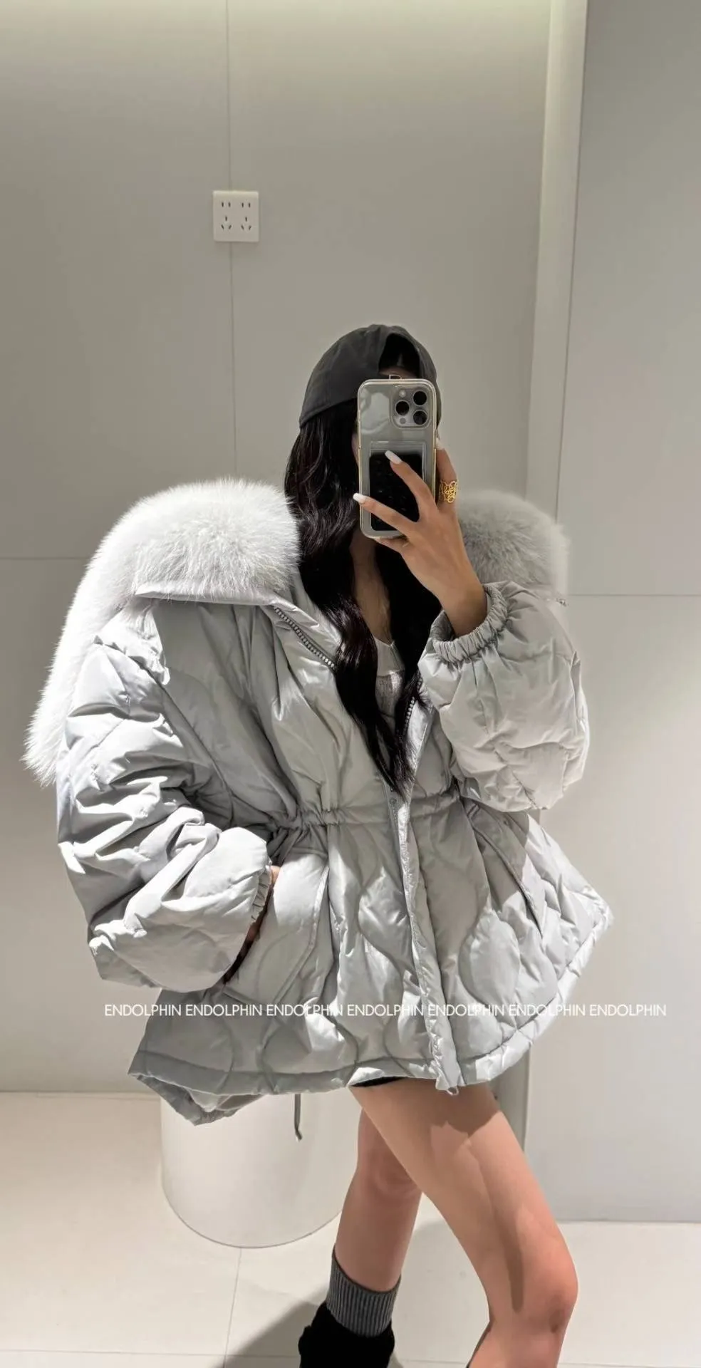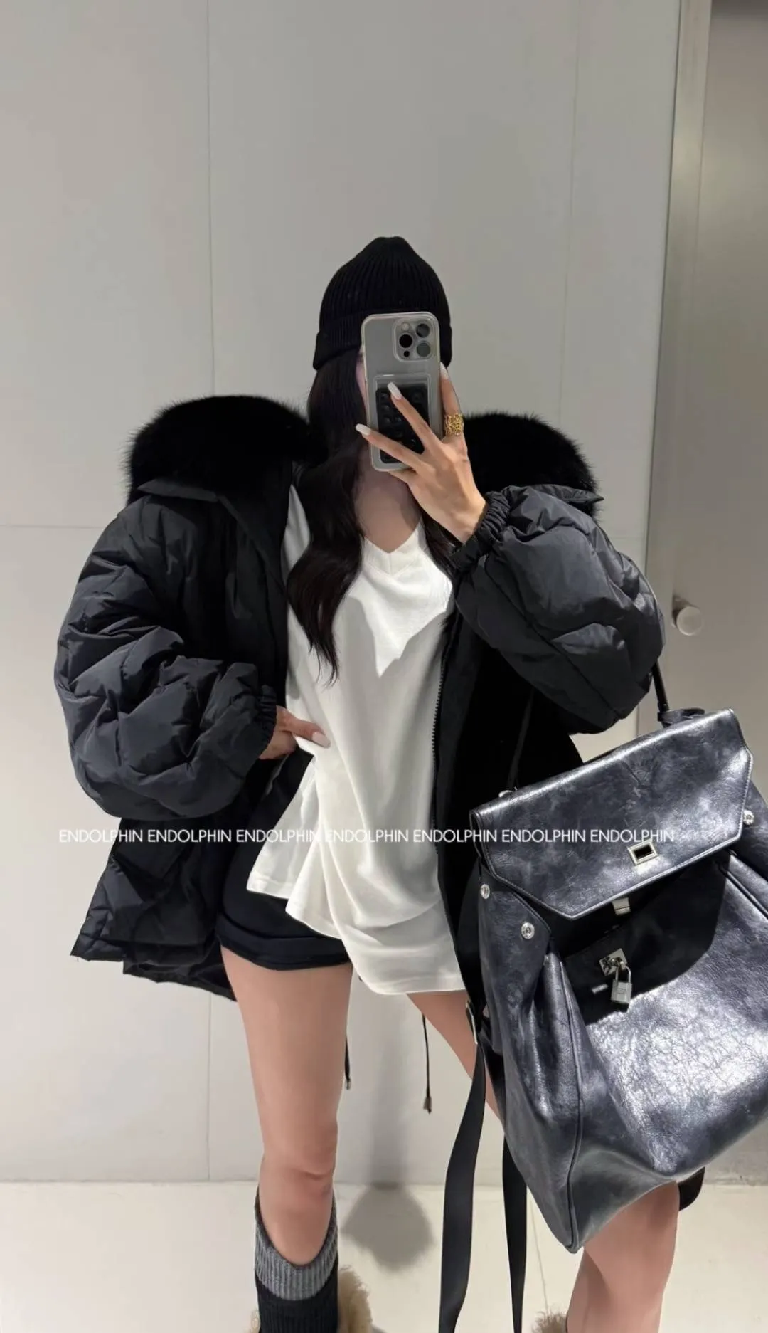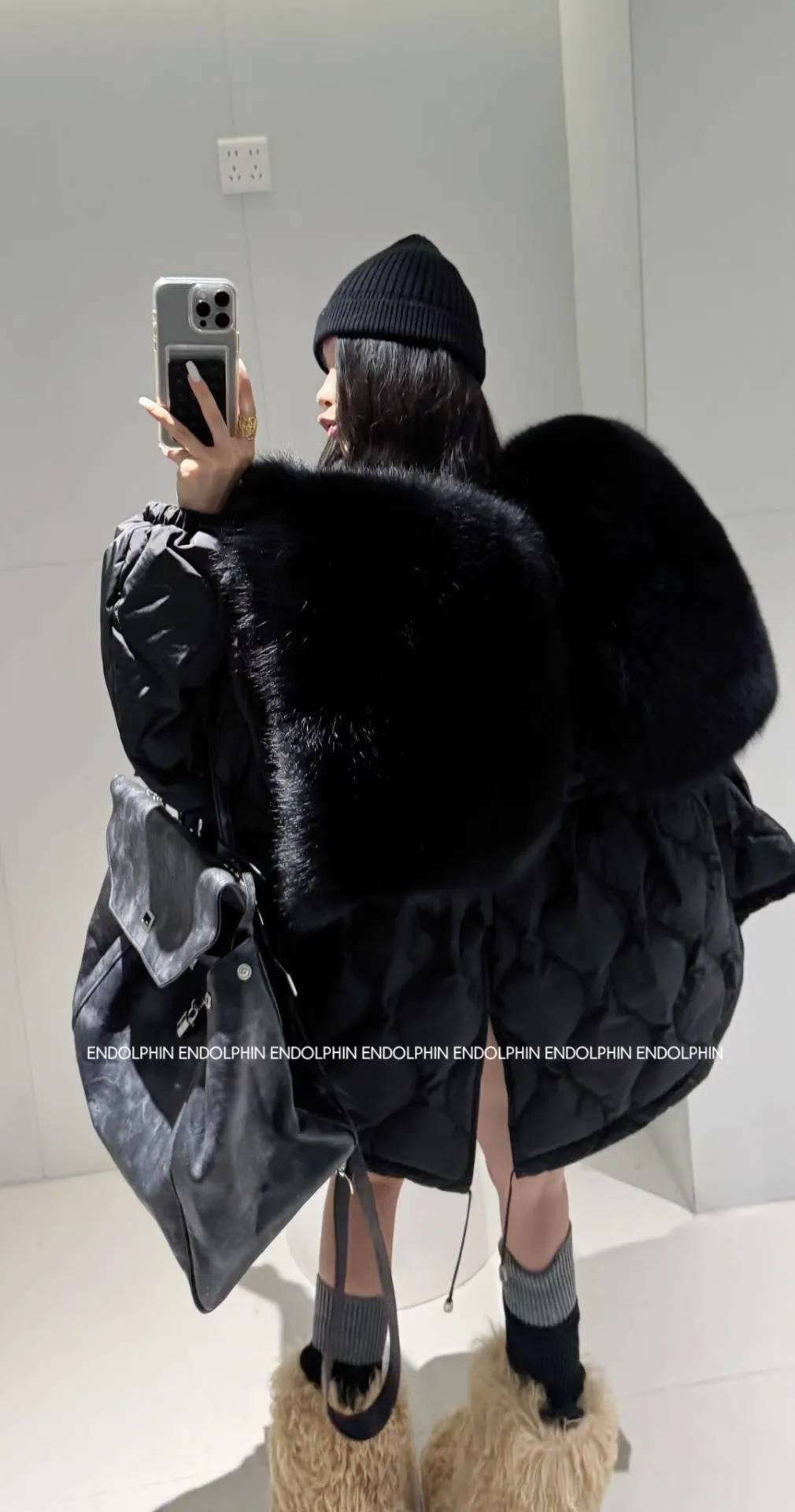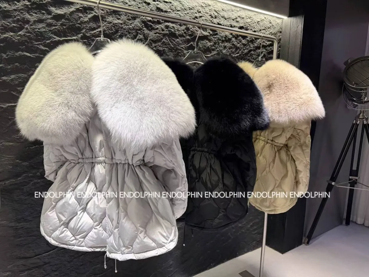 25JF01 狐狸毛(可拆大水手領)鴨絨前短後長外套 3色