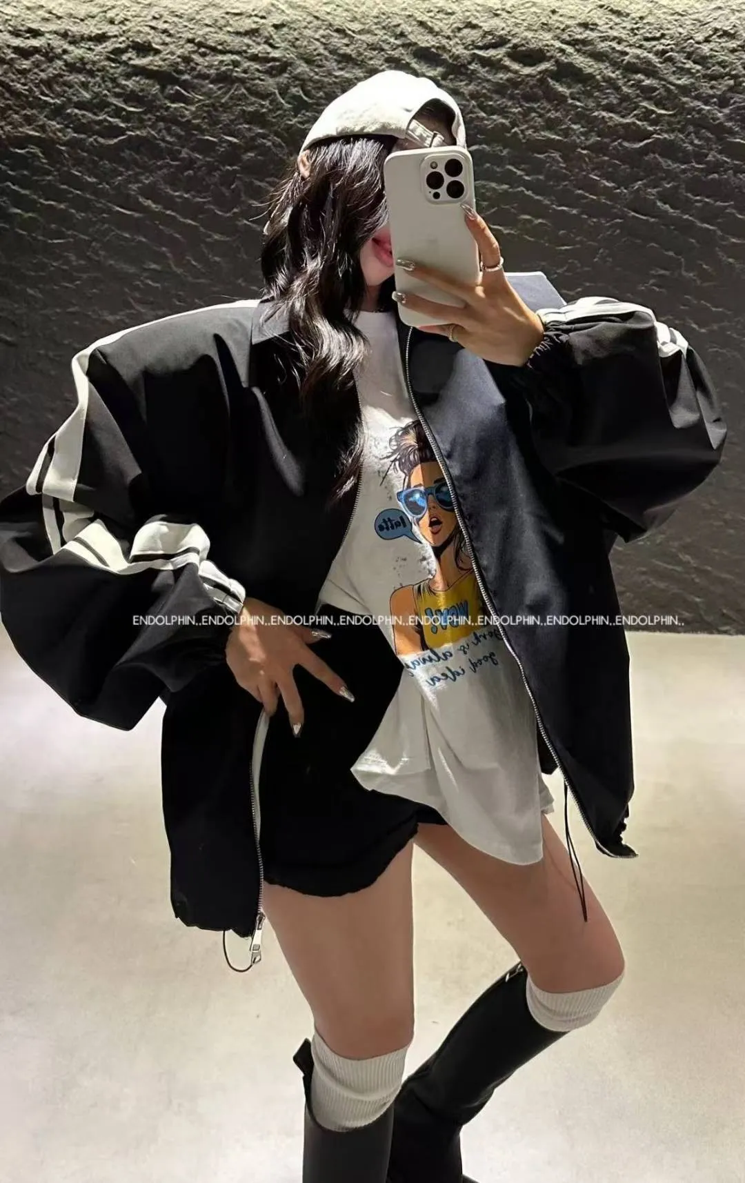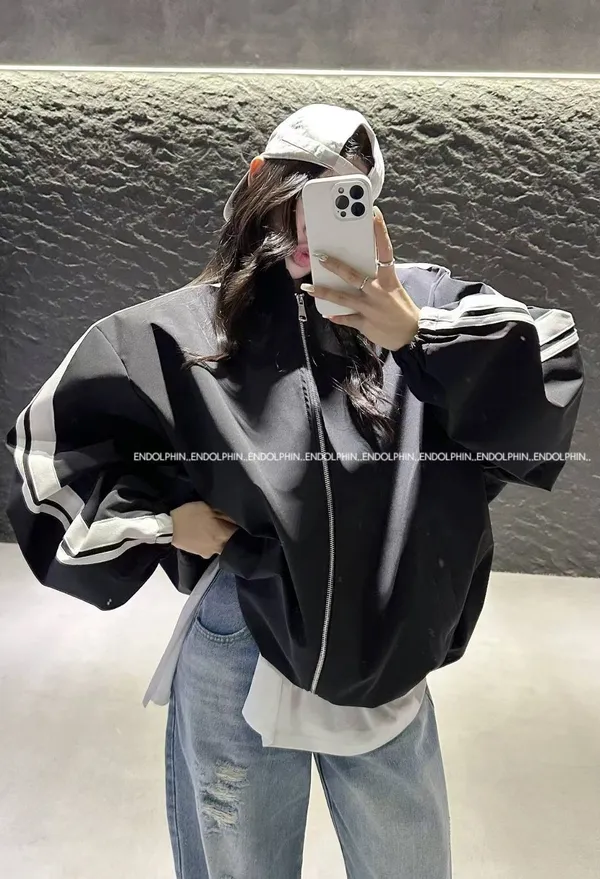 25JF06 挺防刮中長版運動邊條下縮繩夾克 3色