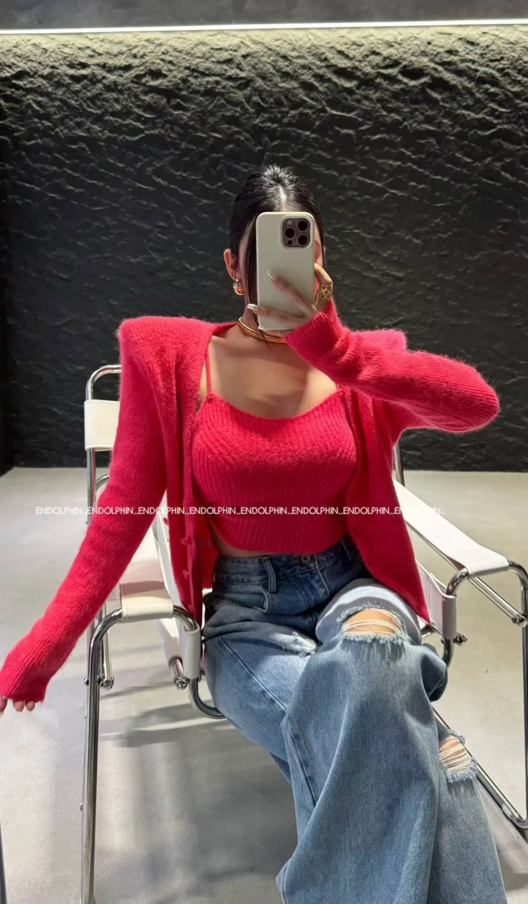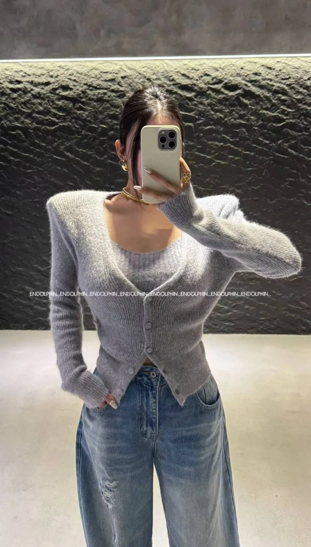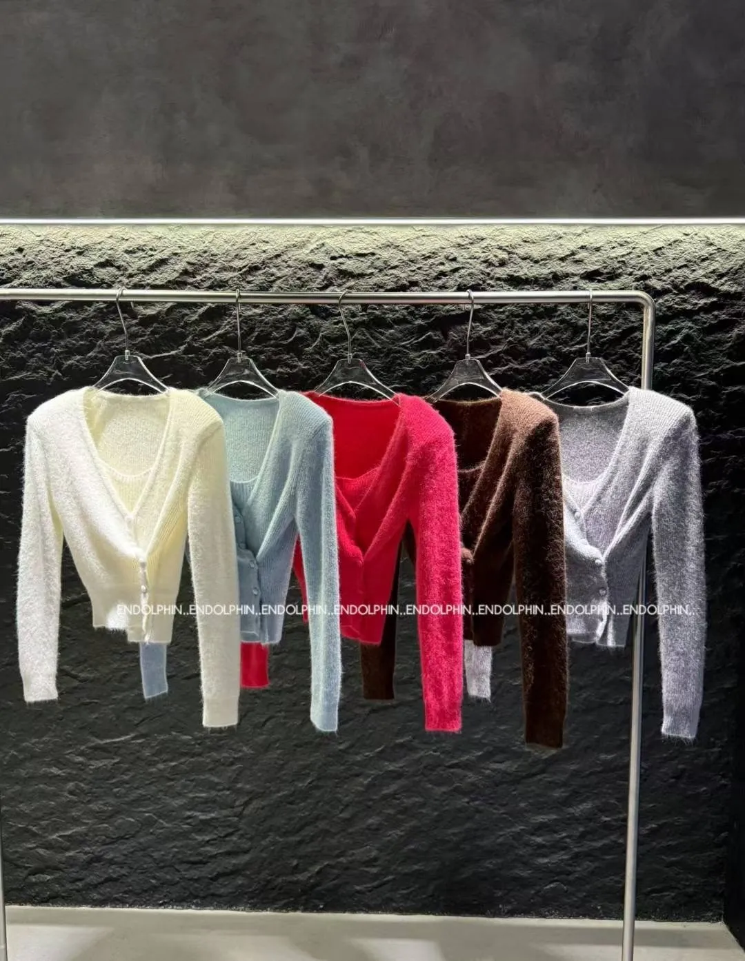 25JF17 針織細肩帶背心+多扣針織罩衫 SET 5色