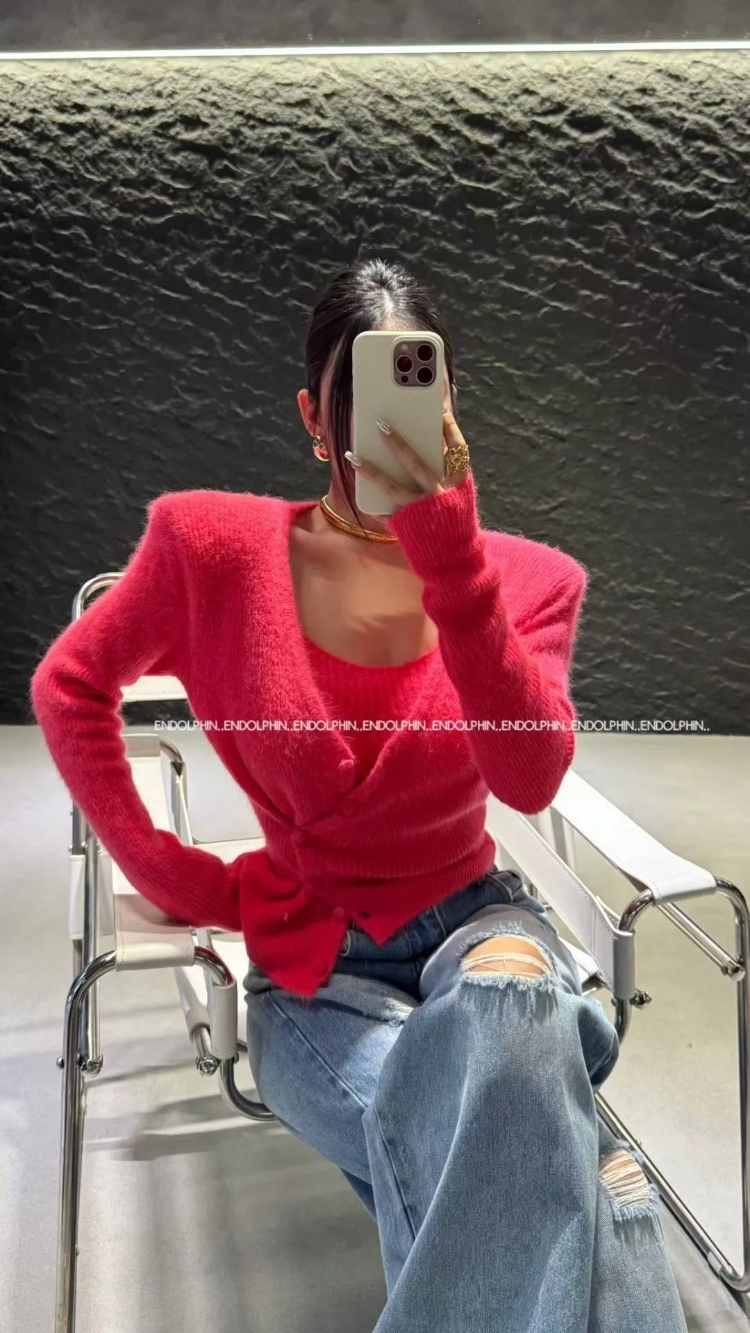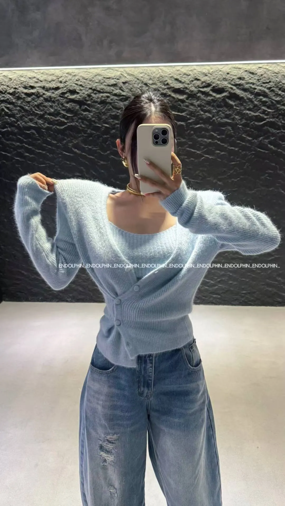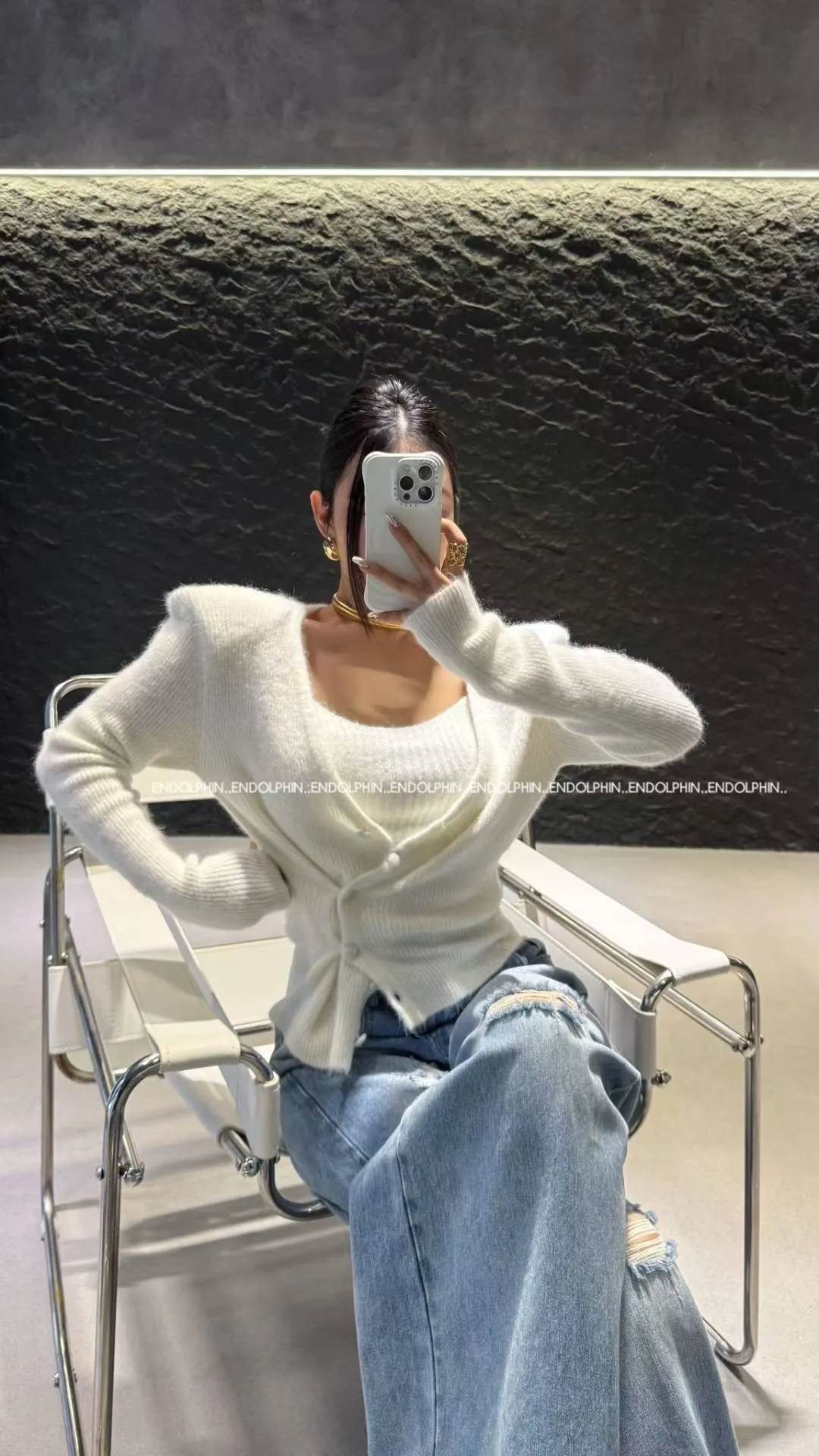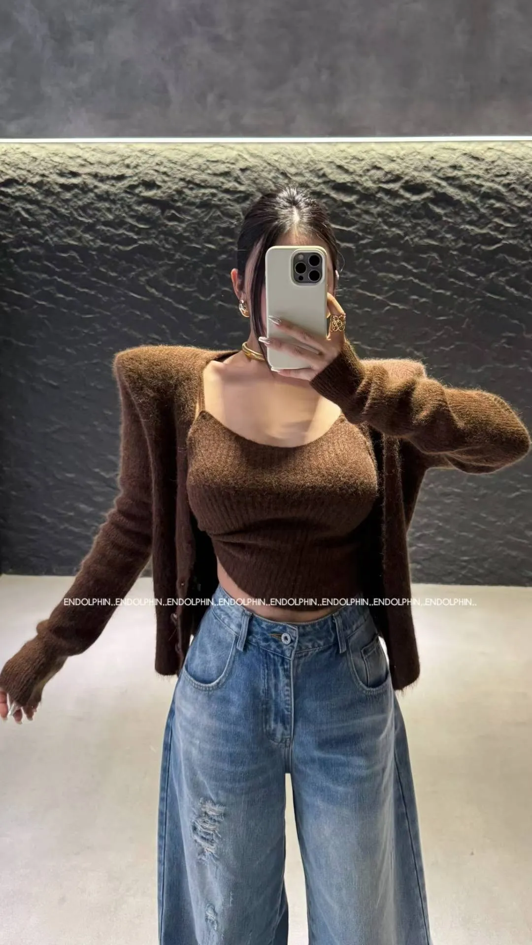25JF17 針織細肩帶背心+多扣針織罩衫 SET 5色