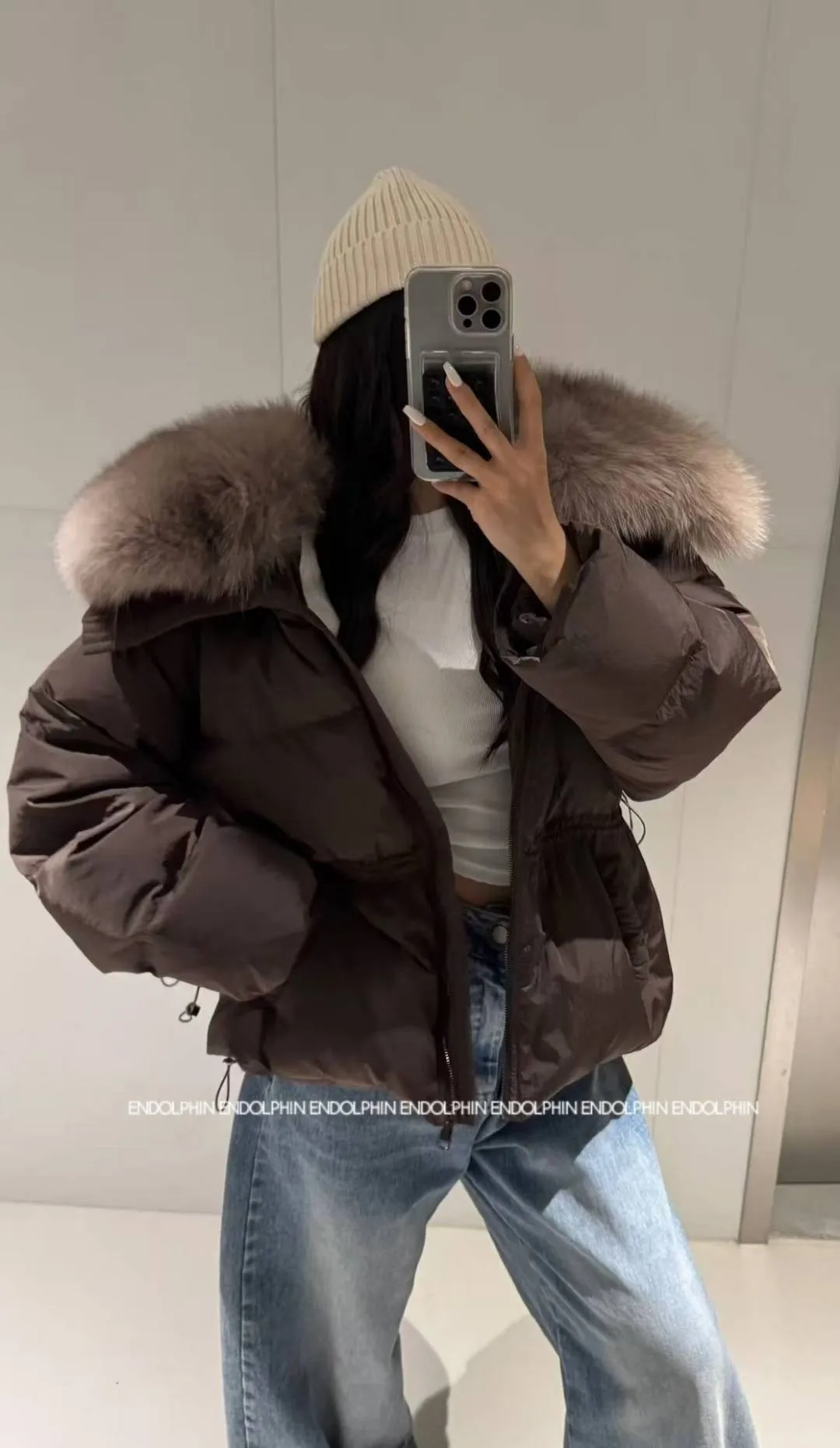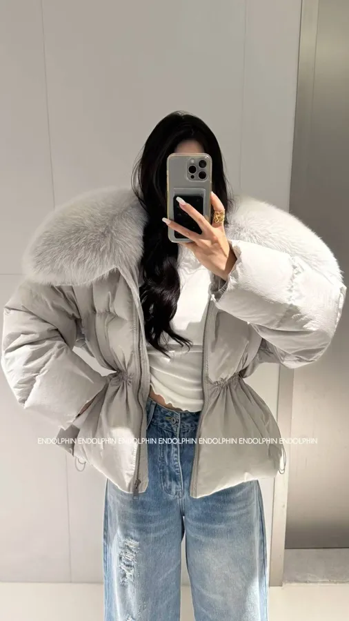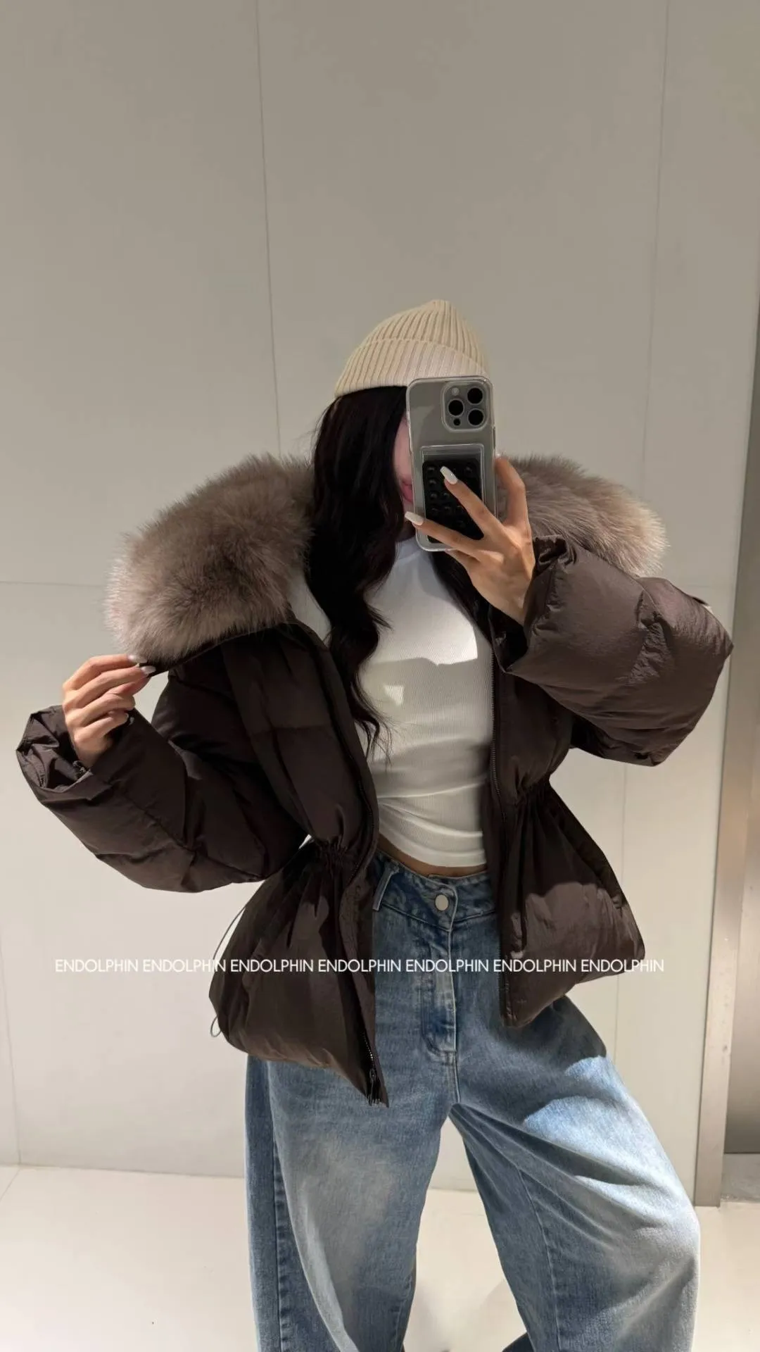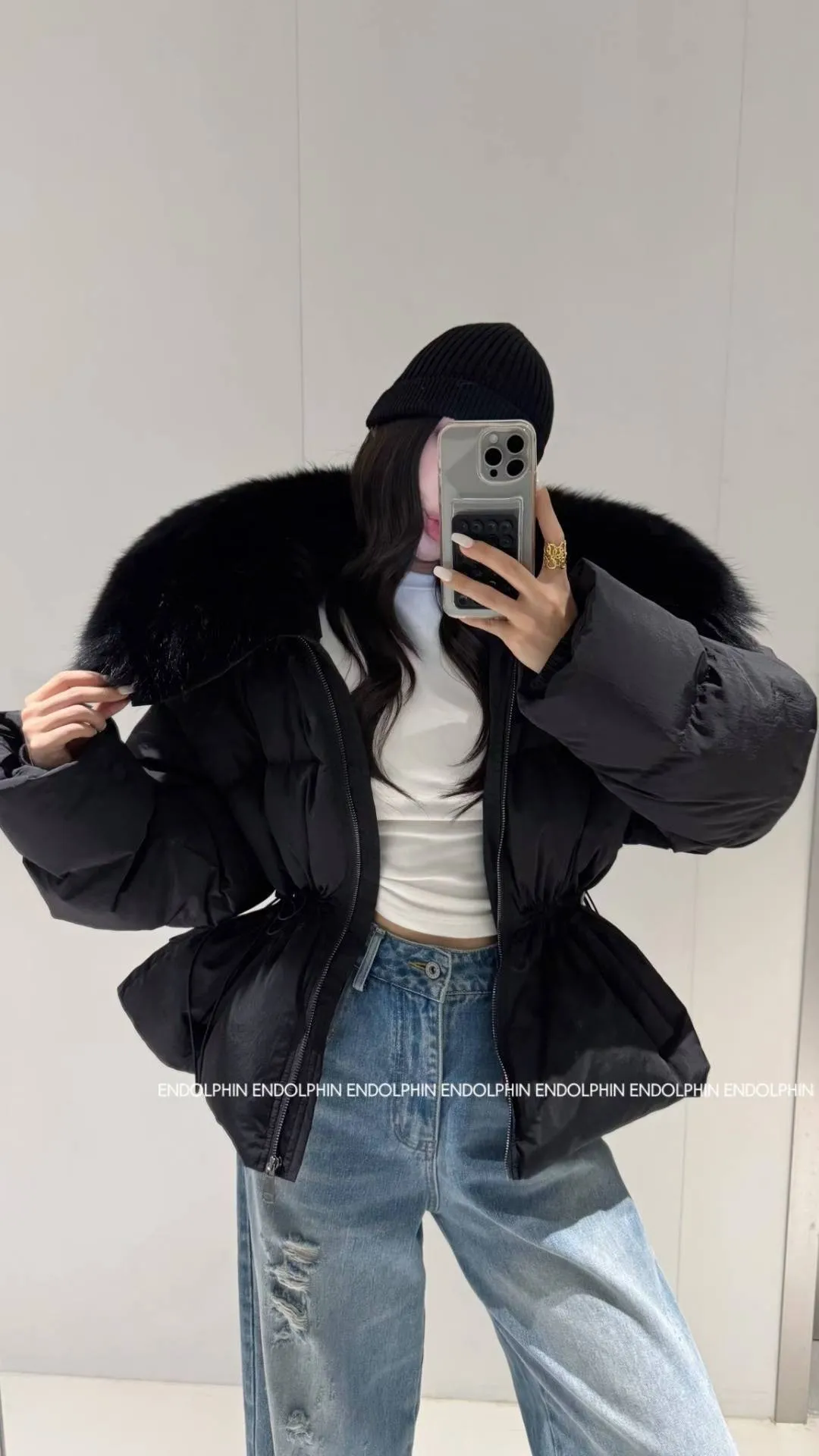 25JF25 狐狸毛(可拆)鴨絨縮腰外套 4色