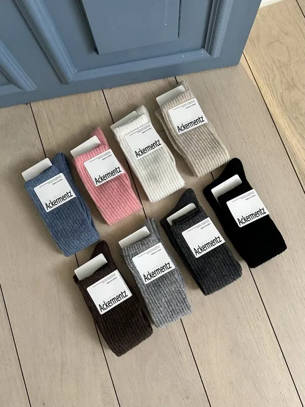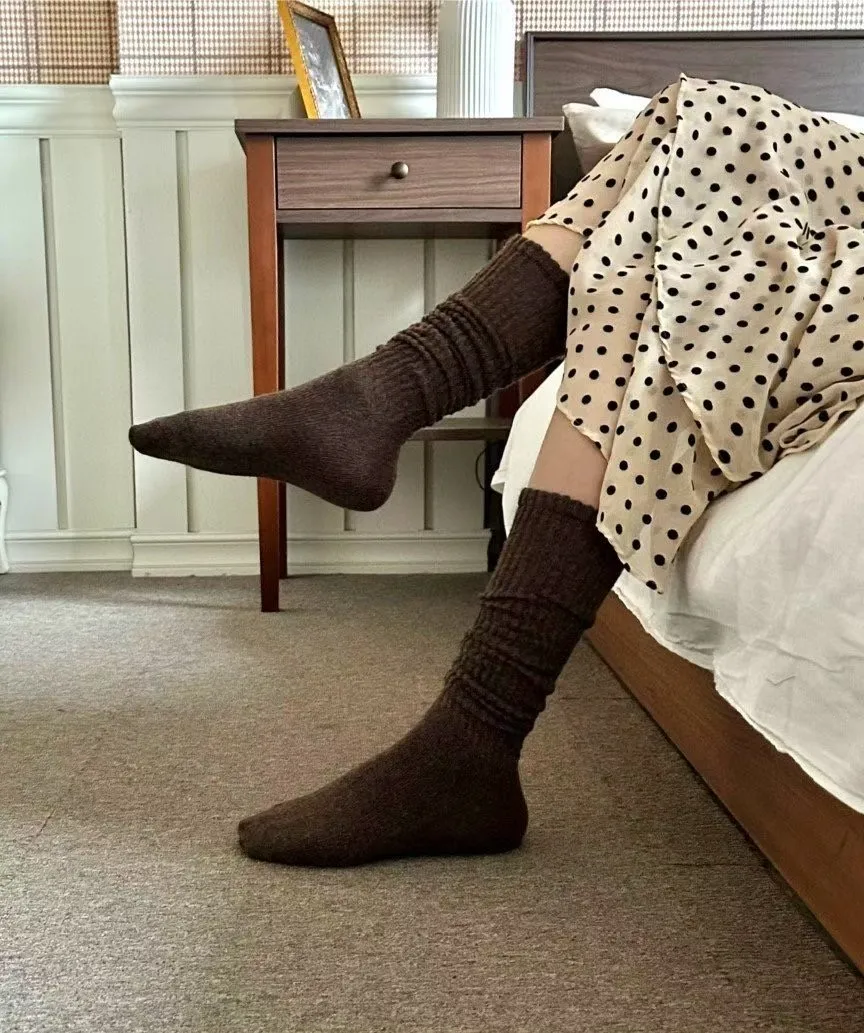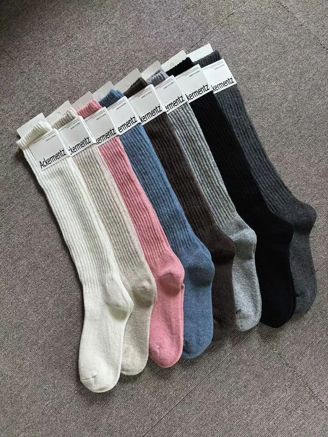 25JG01 新款)羊毛細膝下坑條堆堆襪 8色