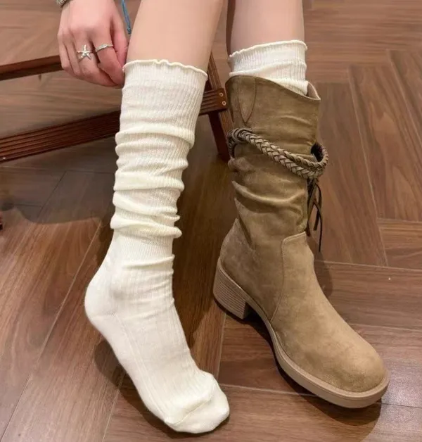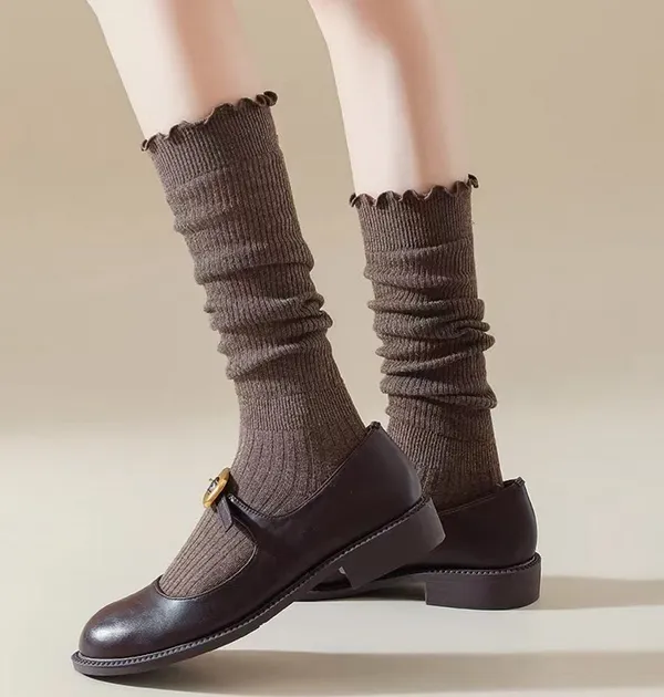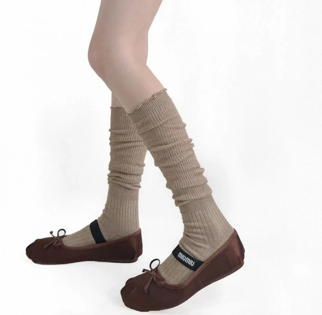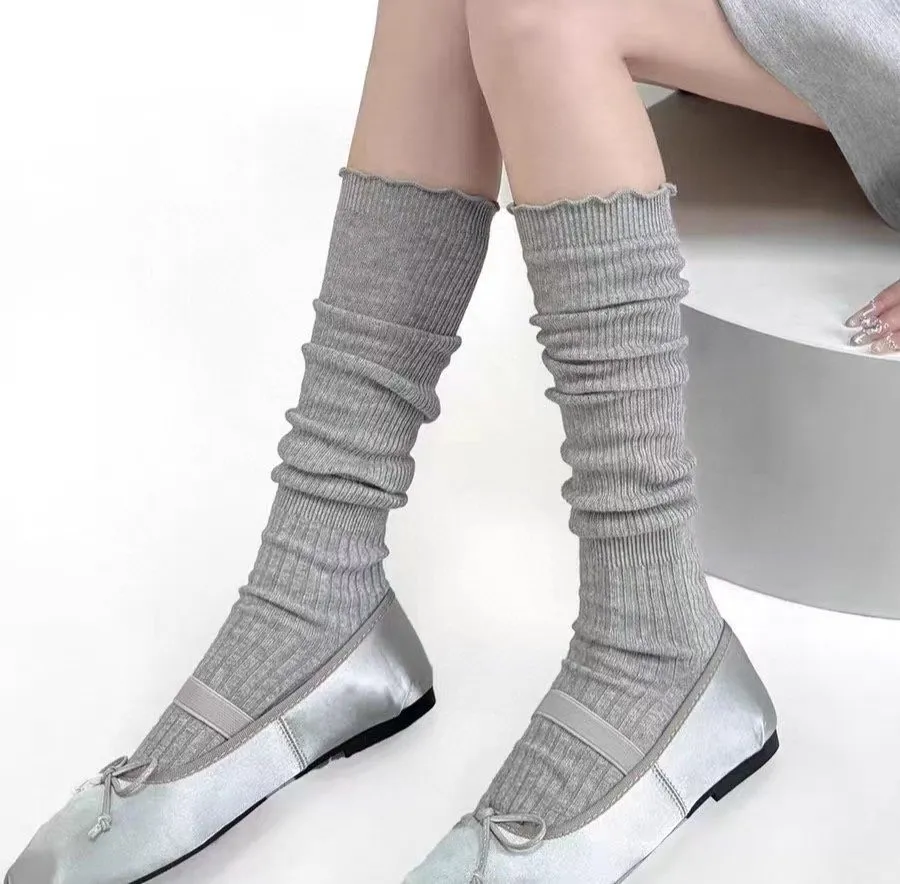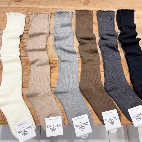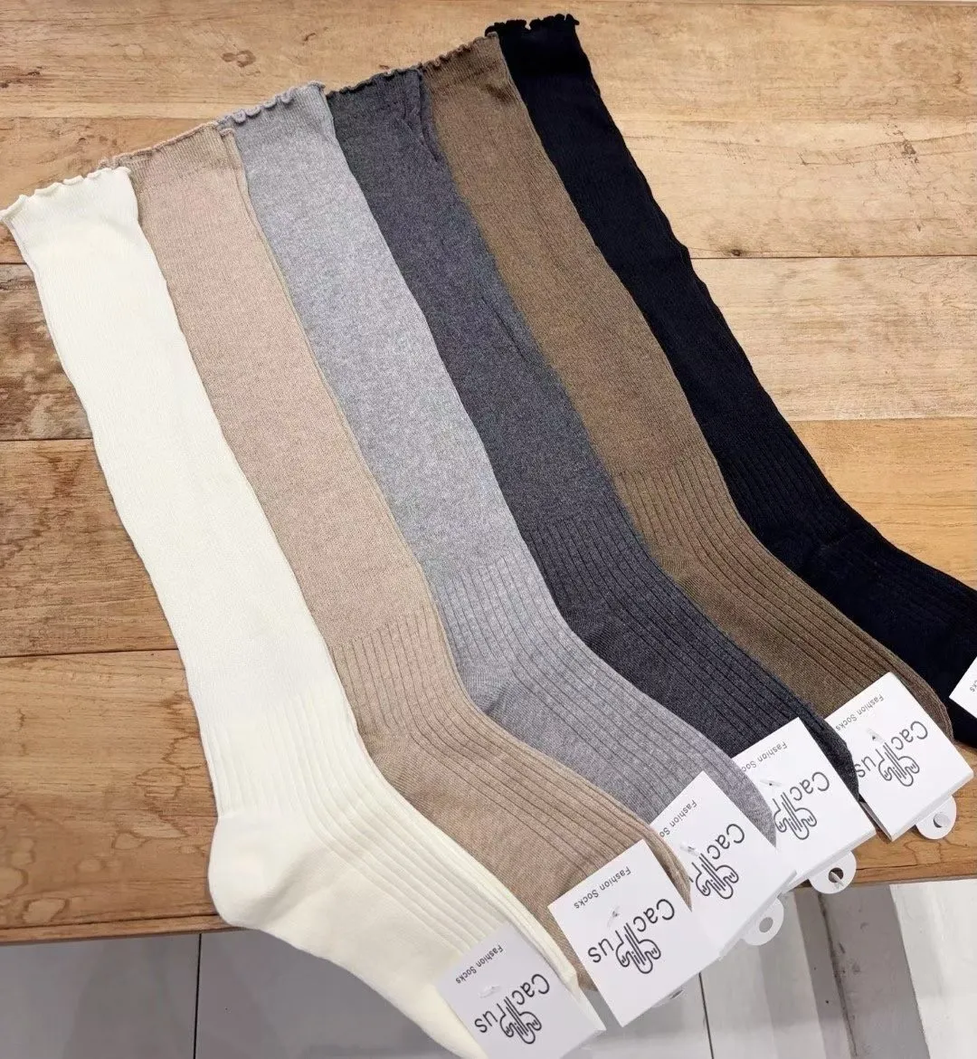25JG05 木耳邊熱賣款)螺紋棉質膝下堆堆襪 6色