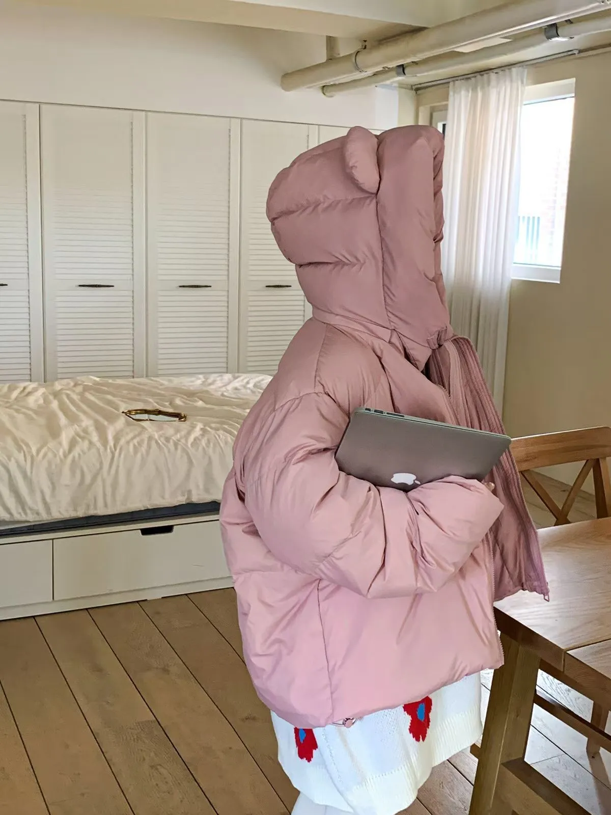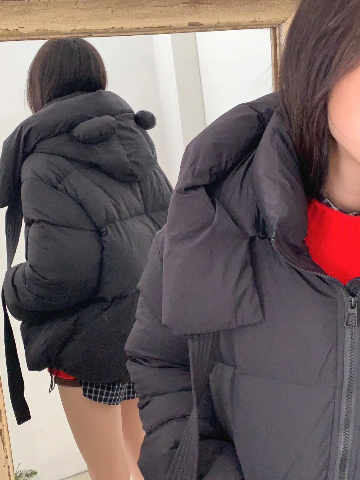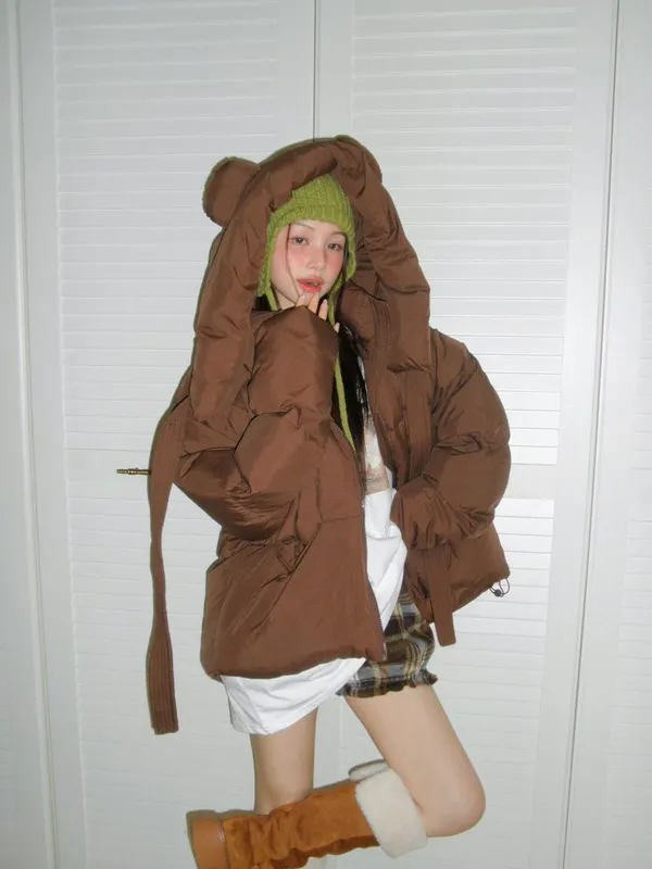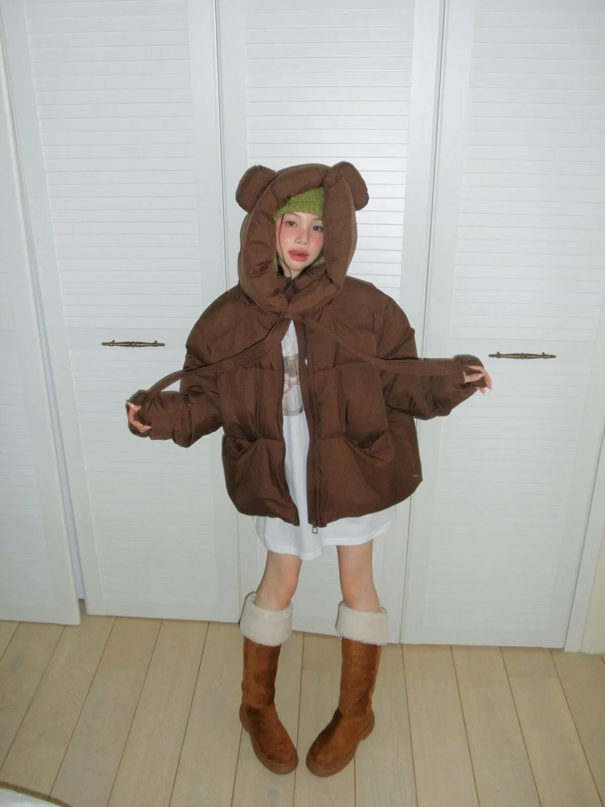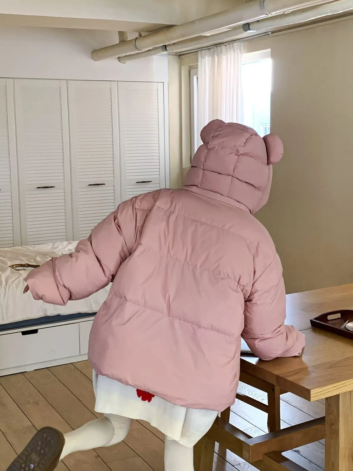 25JH03 熊熊連帽(可拆)鴨絨下縮繩外套 4色