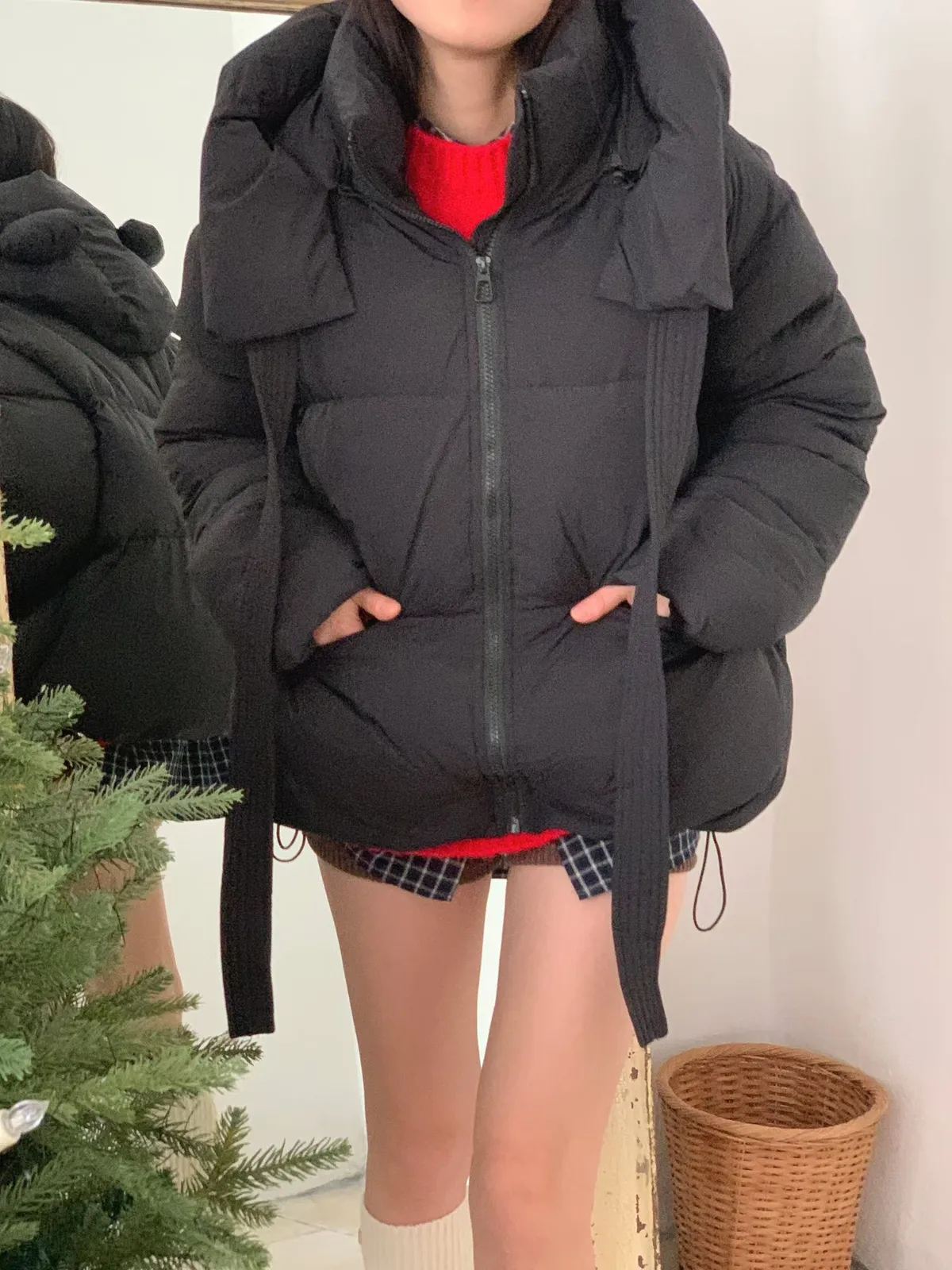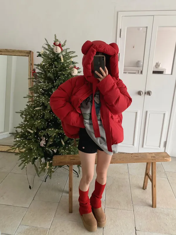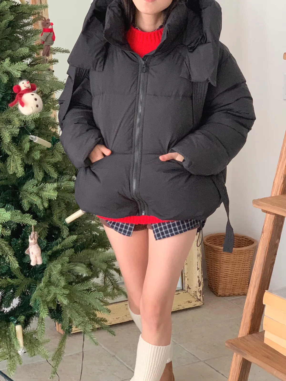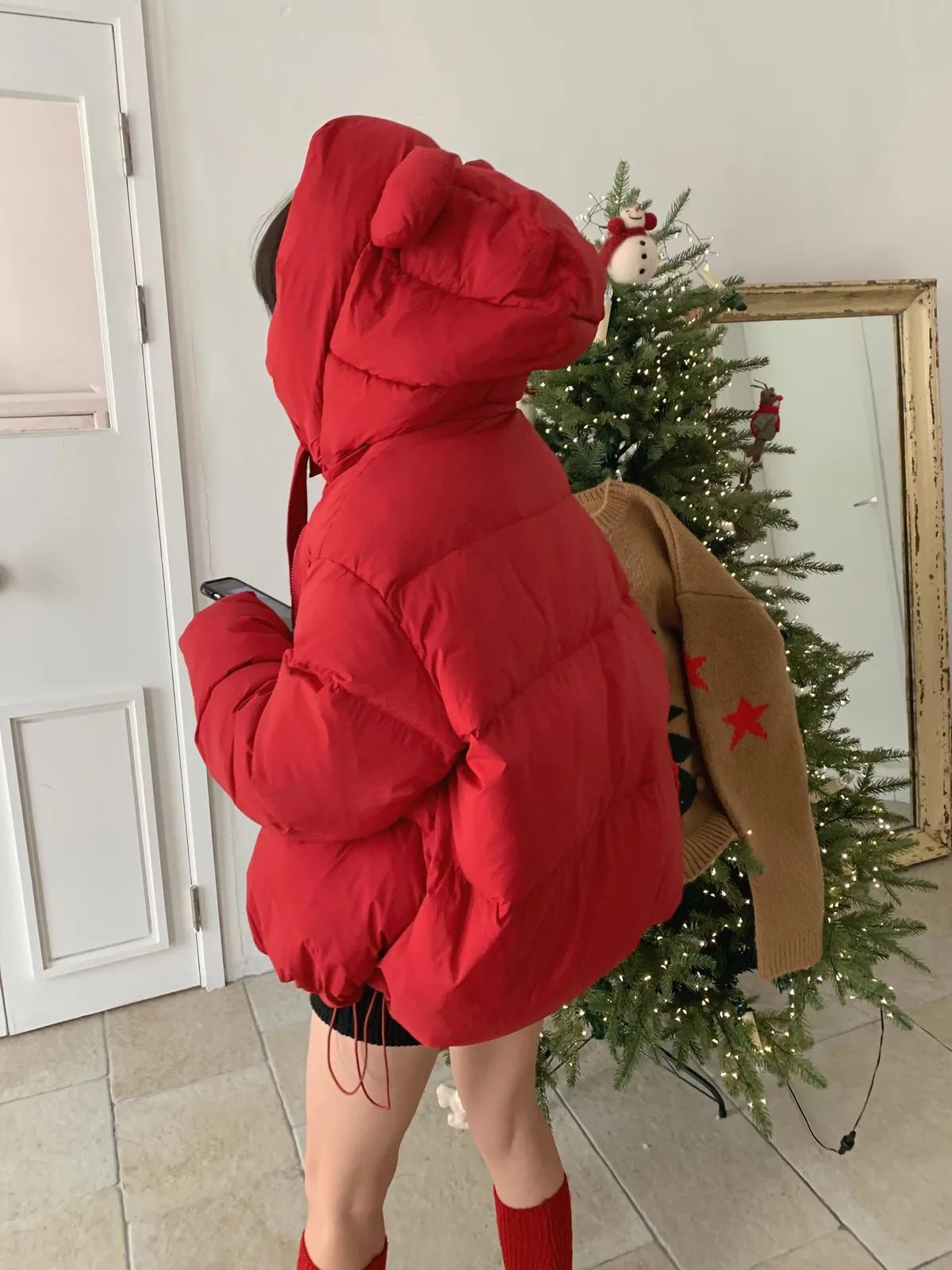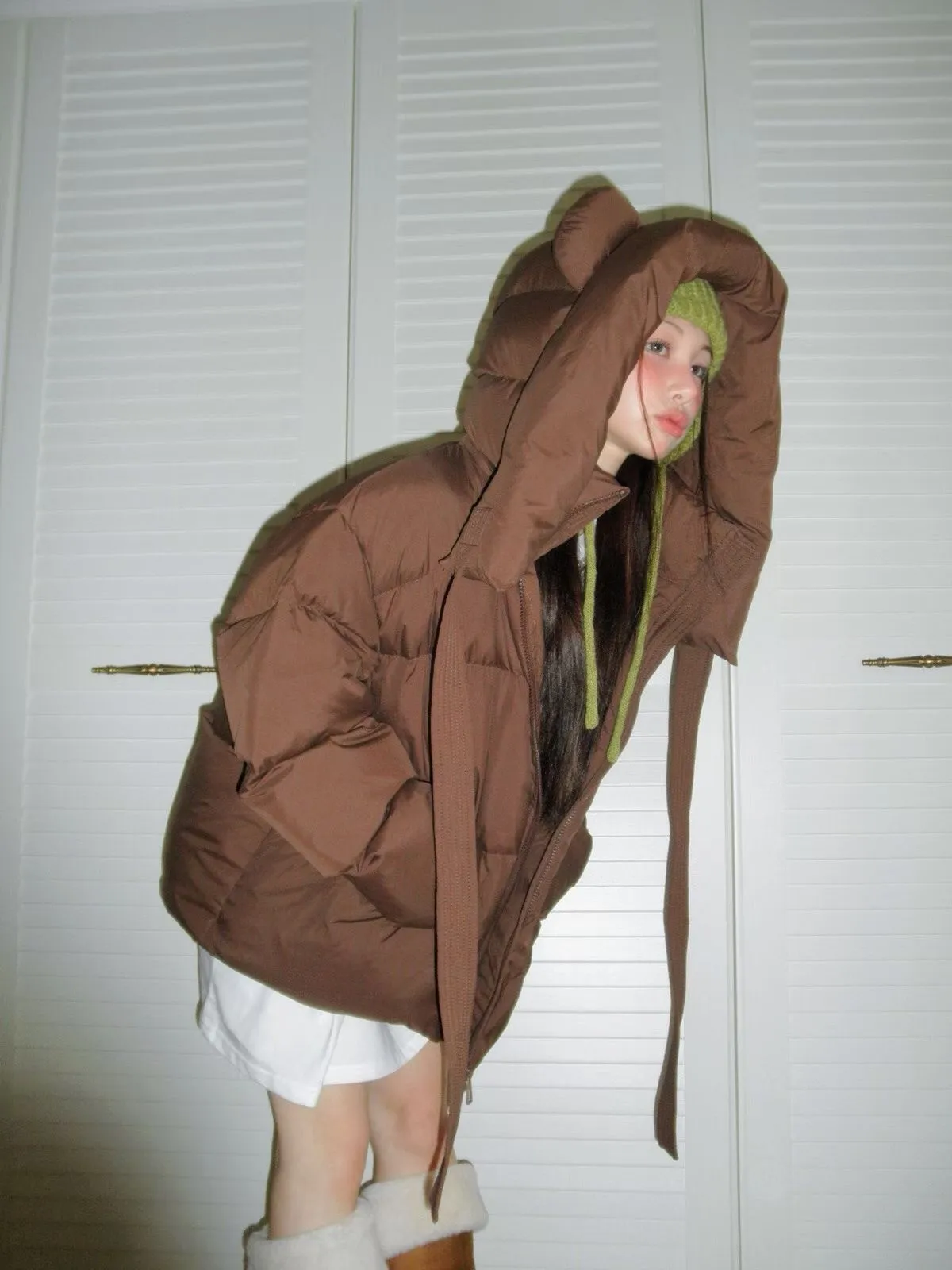 25JH03 熊熊連帽(可拆)鴨絨下縮繩外套 4色
