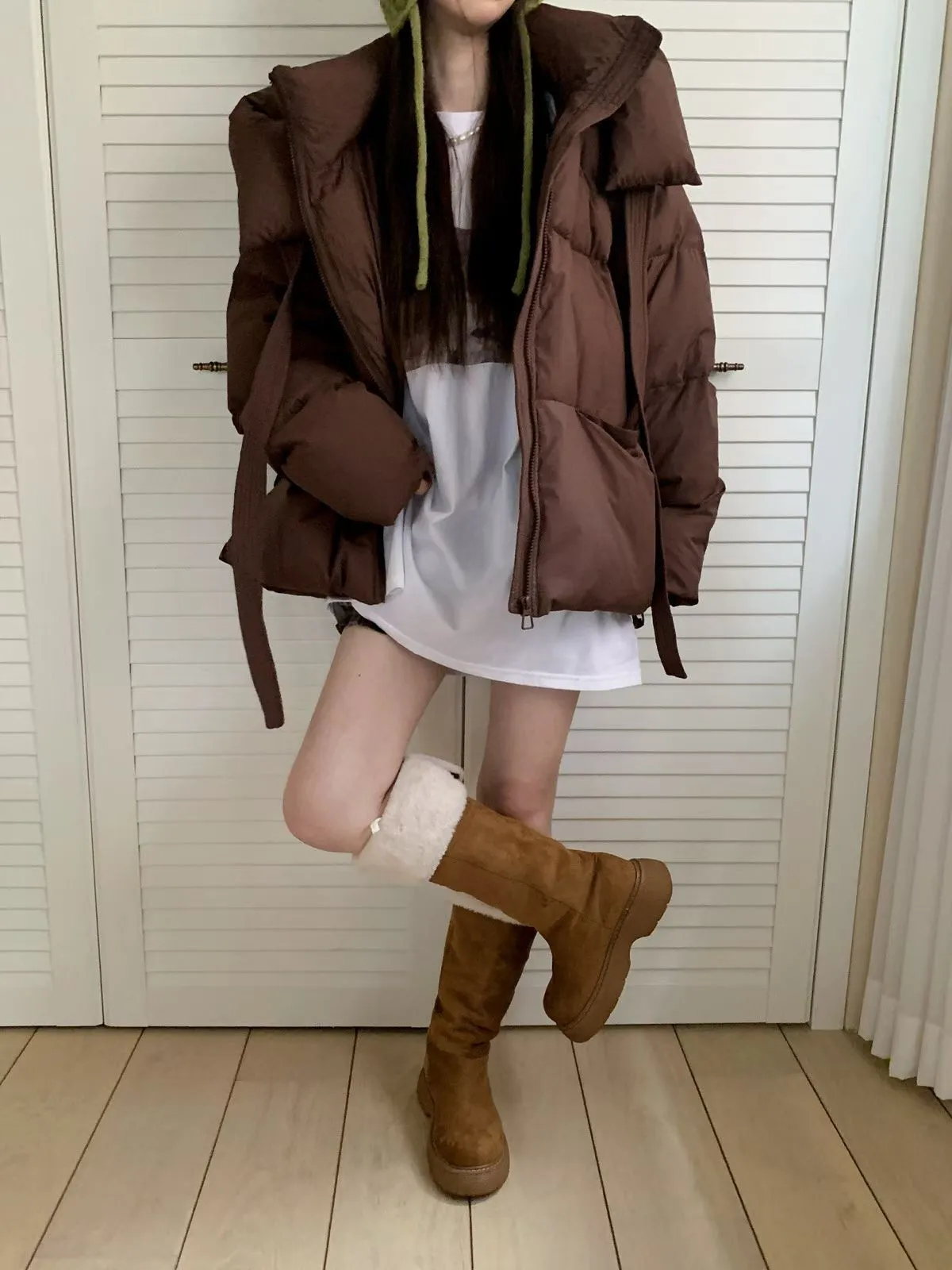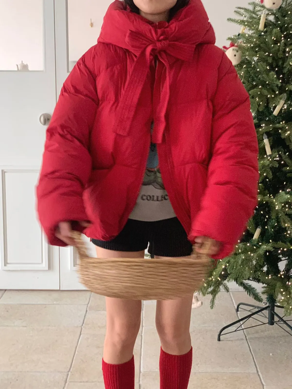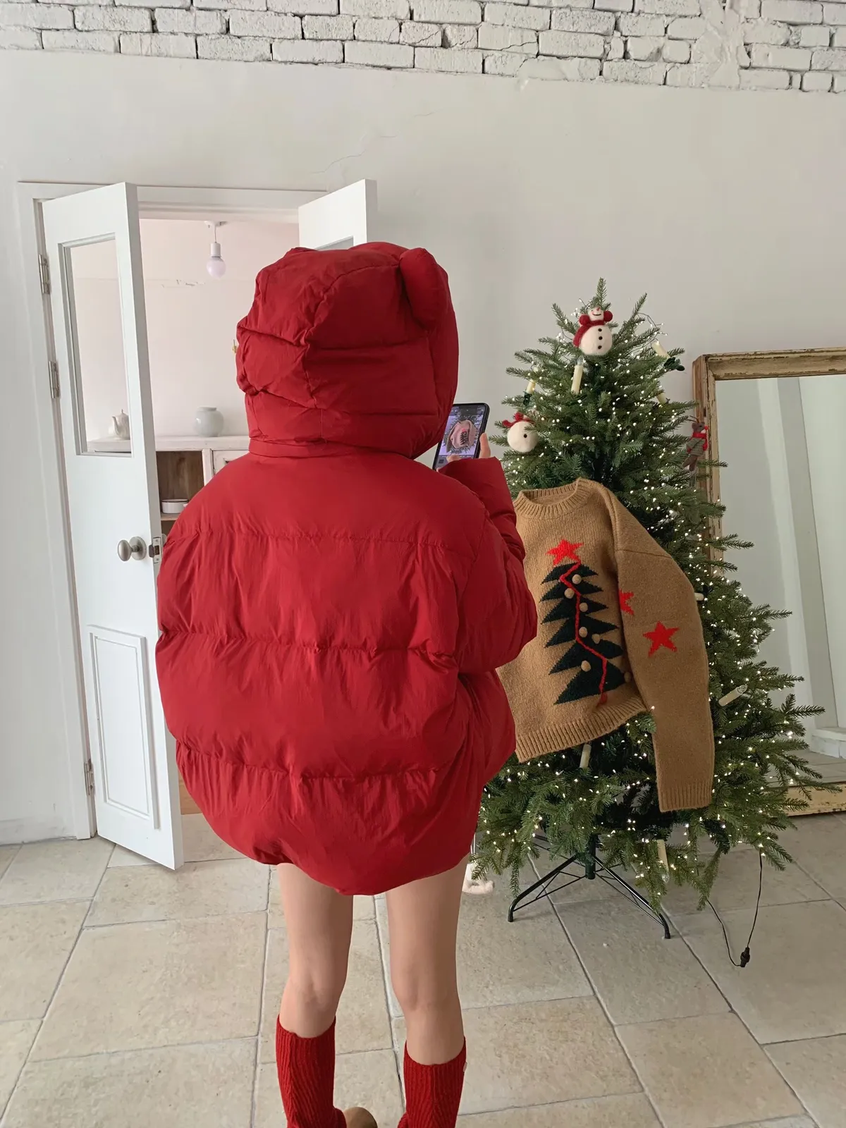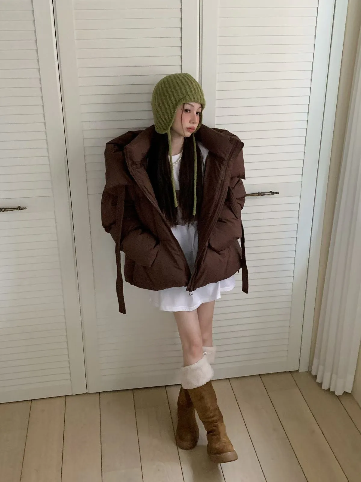 25JH03 熊熊連帽(可拆)鴨絨下縮繩外套 4色