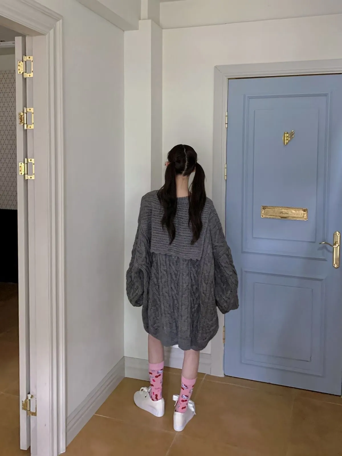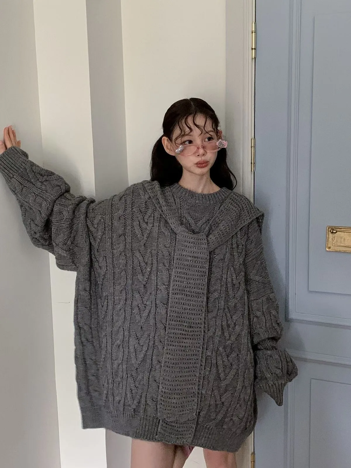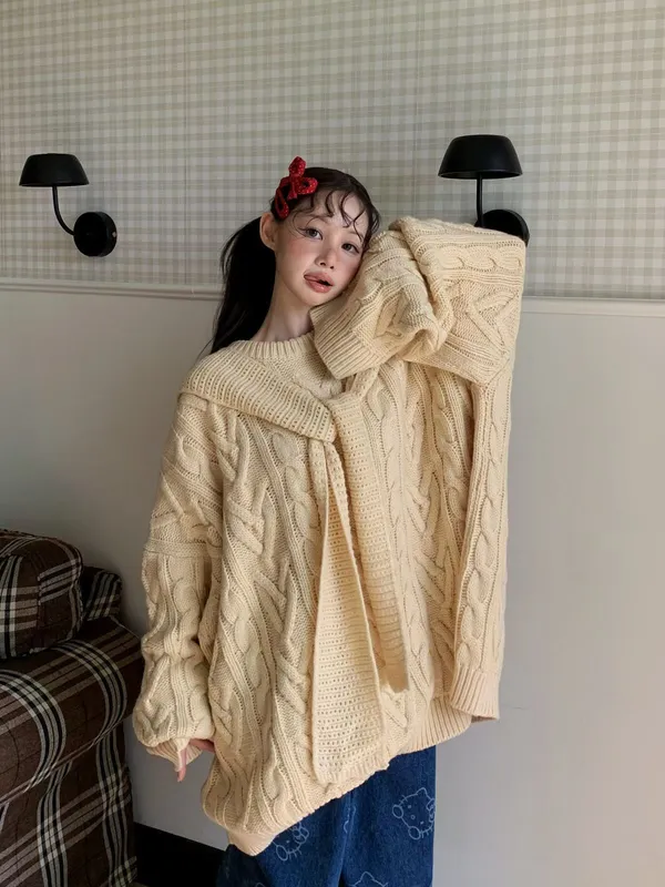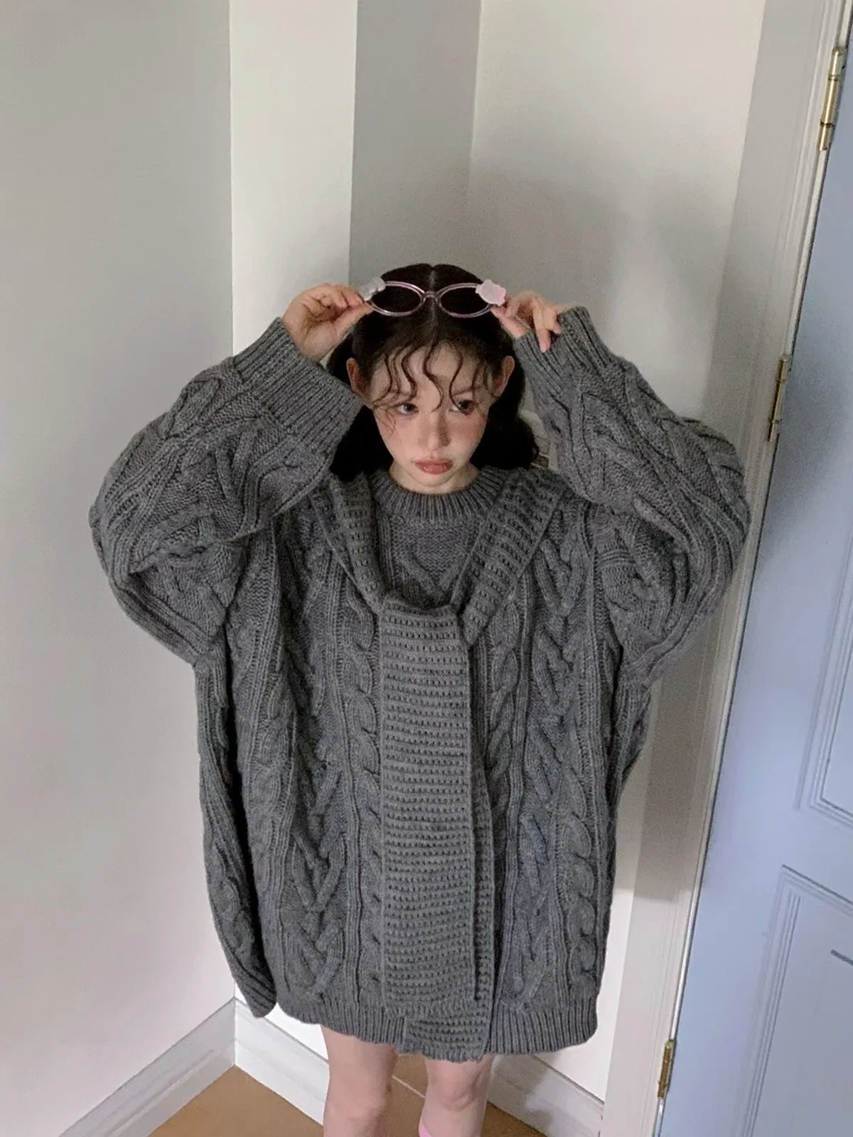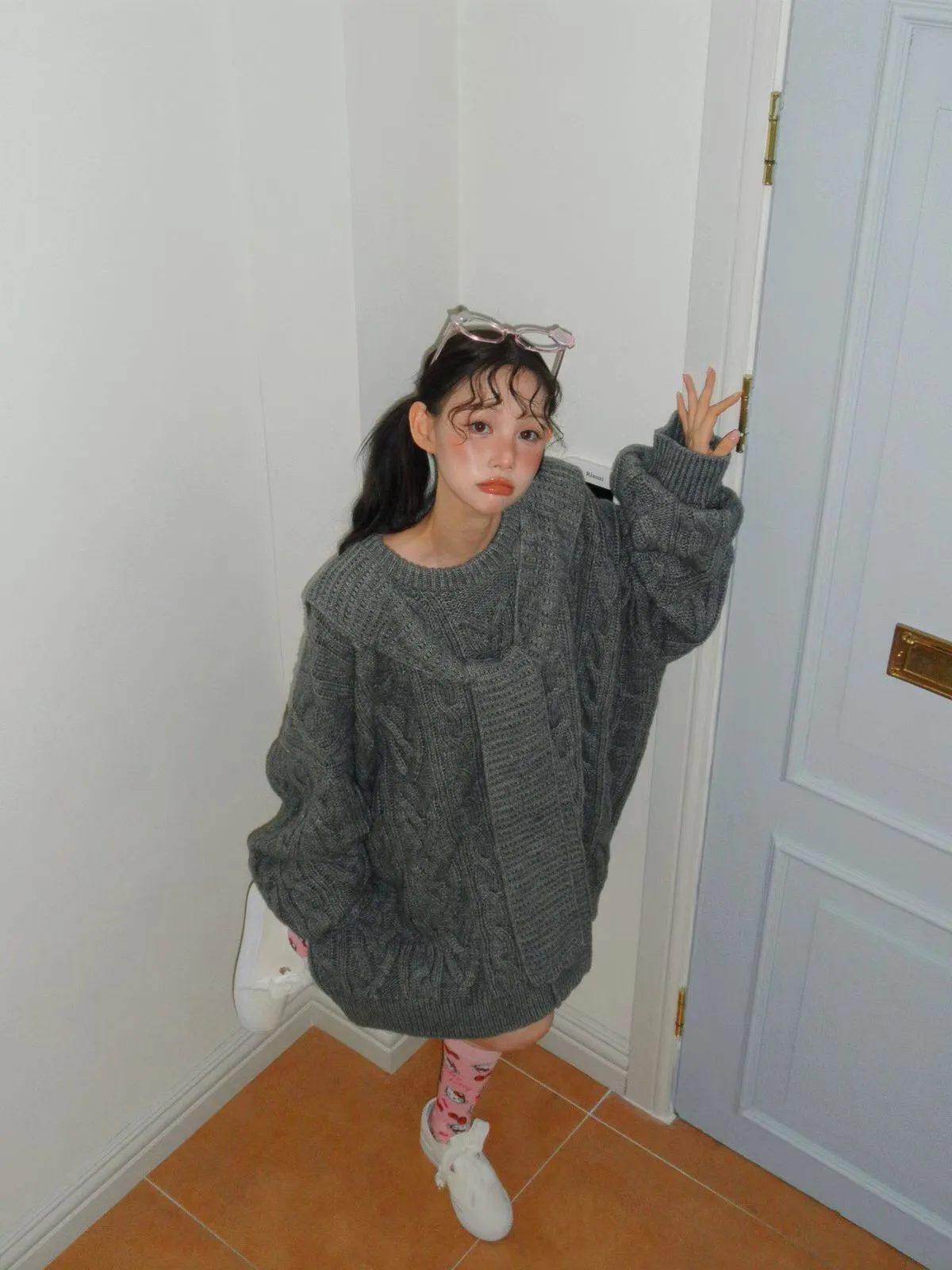 25JH06 披肩+長版麻花羊毛針織上衣洋裝 2色