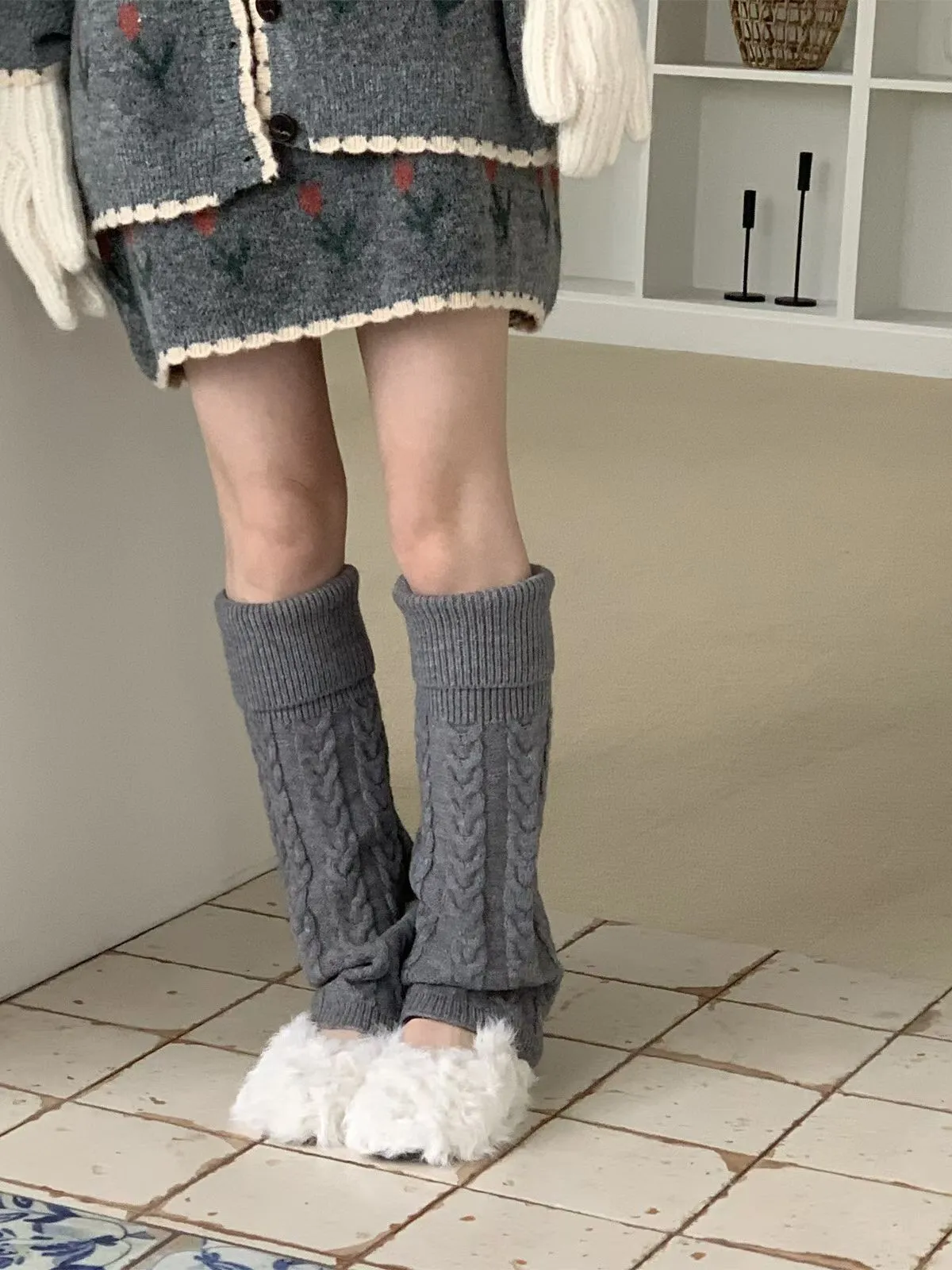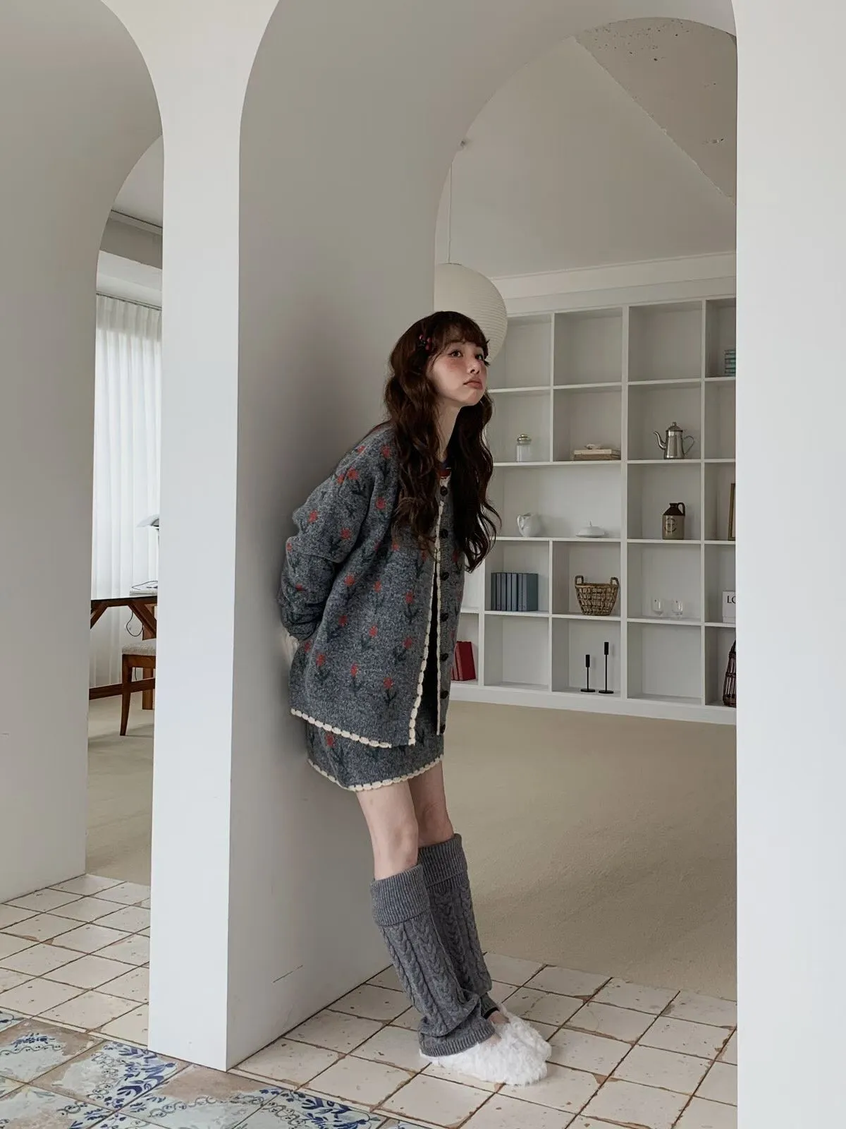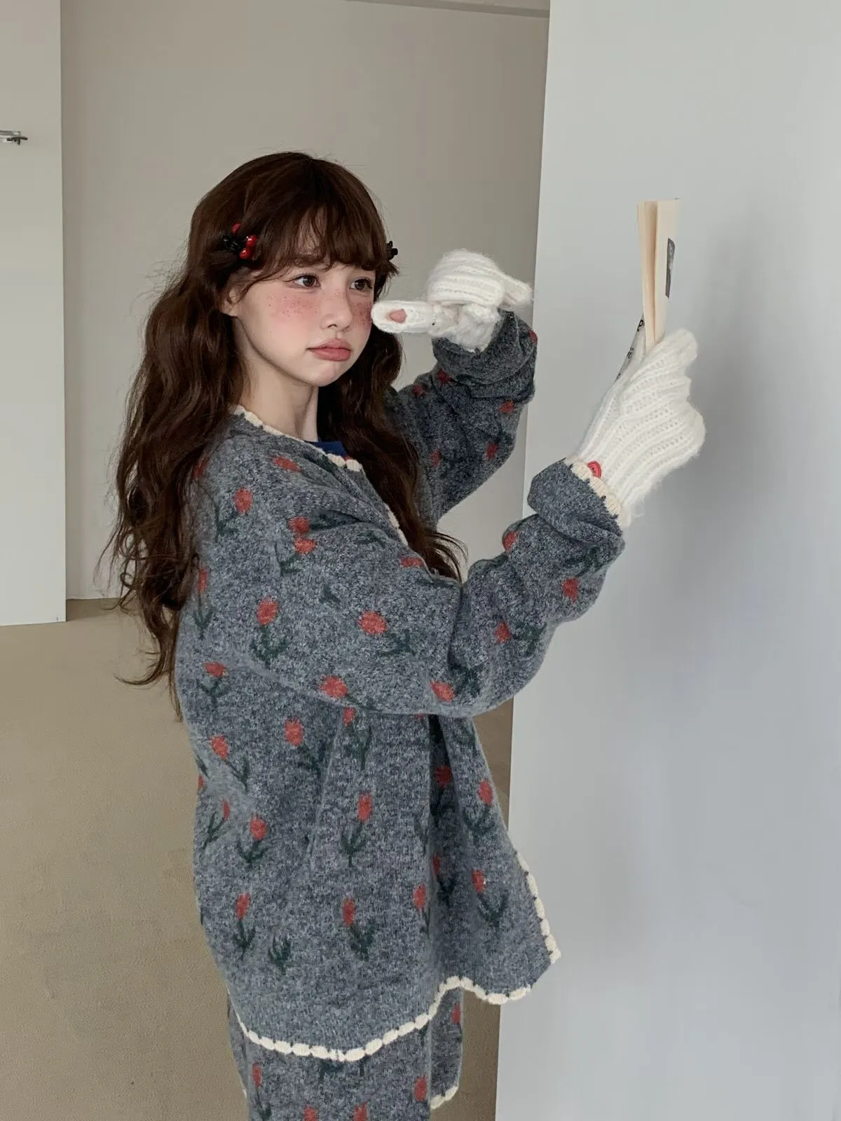 25JH08 羊毛針織鬱金香罩衫+短裙 SET