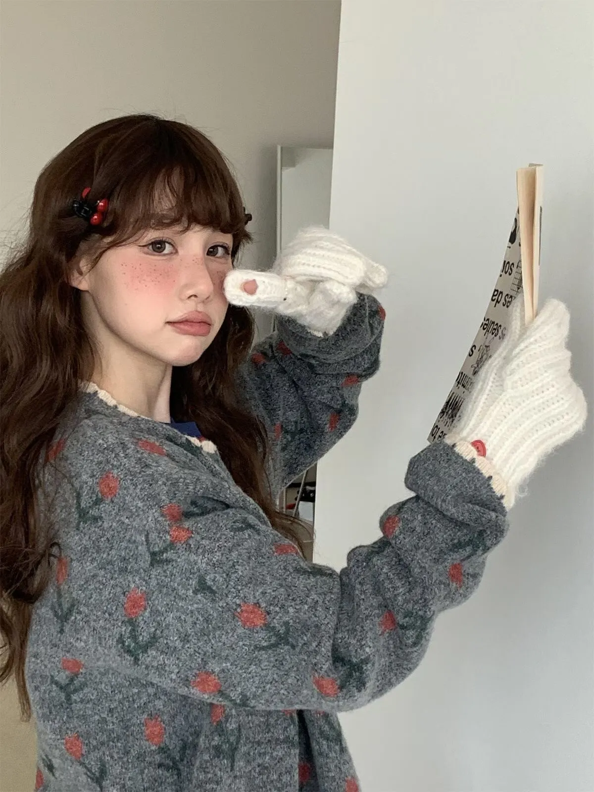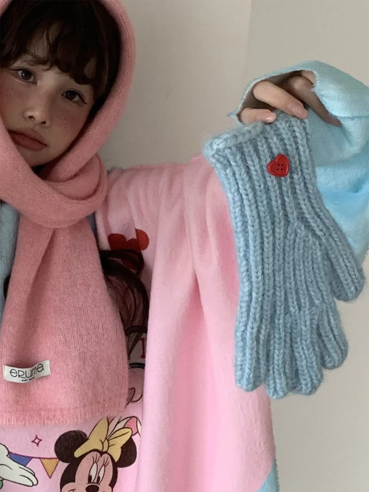 25JH11 針織羊毛愛心扣手套 4色