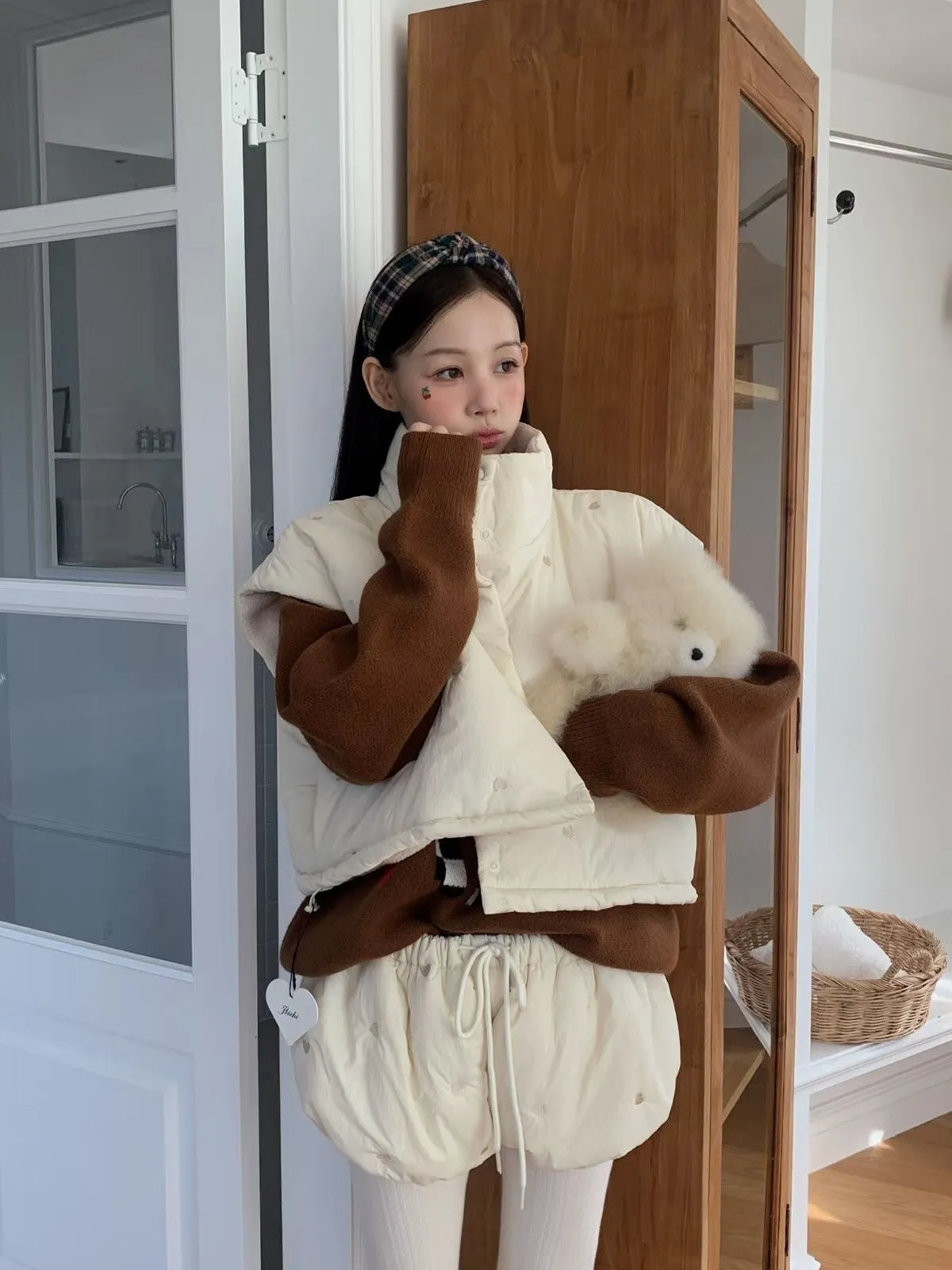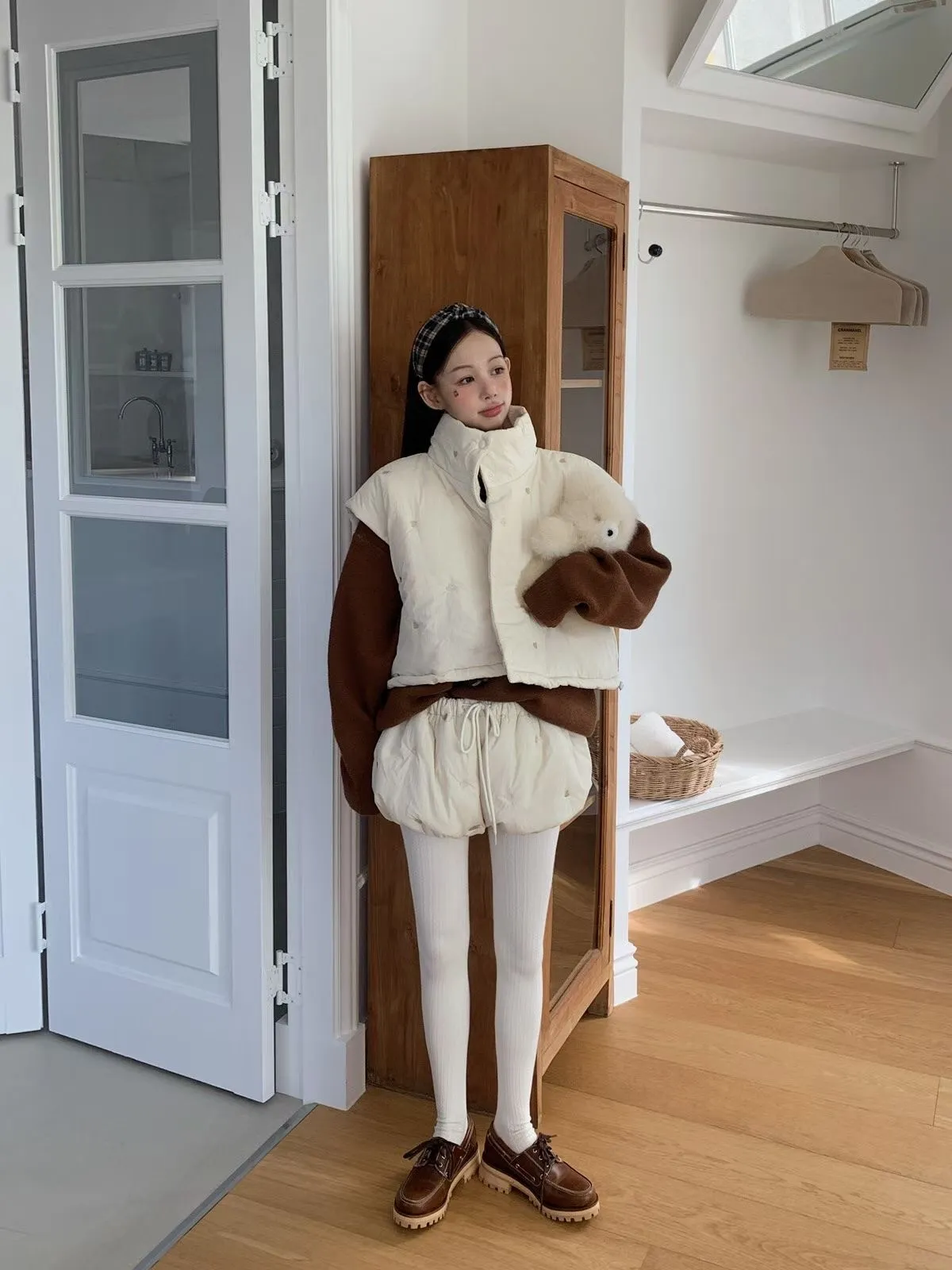 25JH15 電繡愛心夾棉南瓜短褲 2色