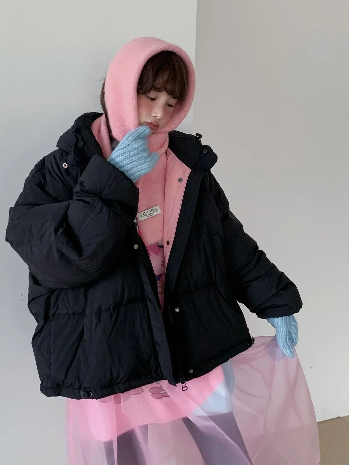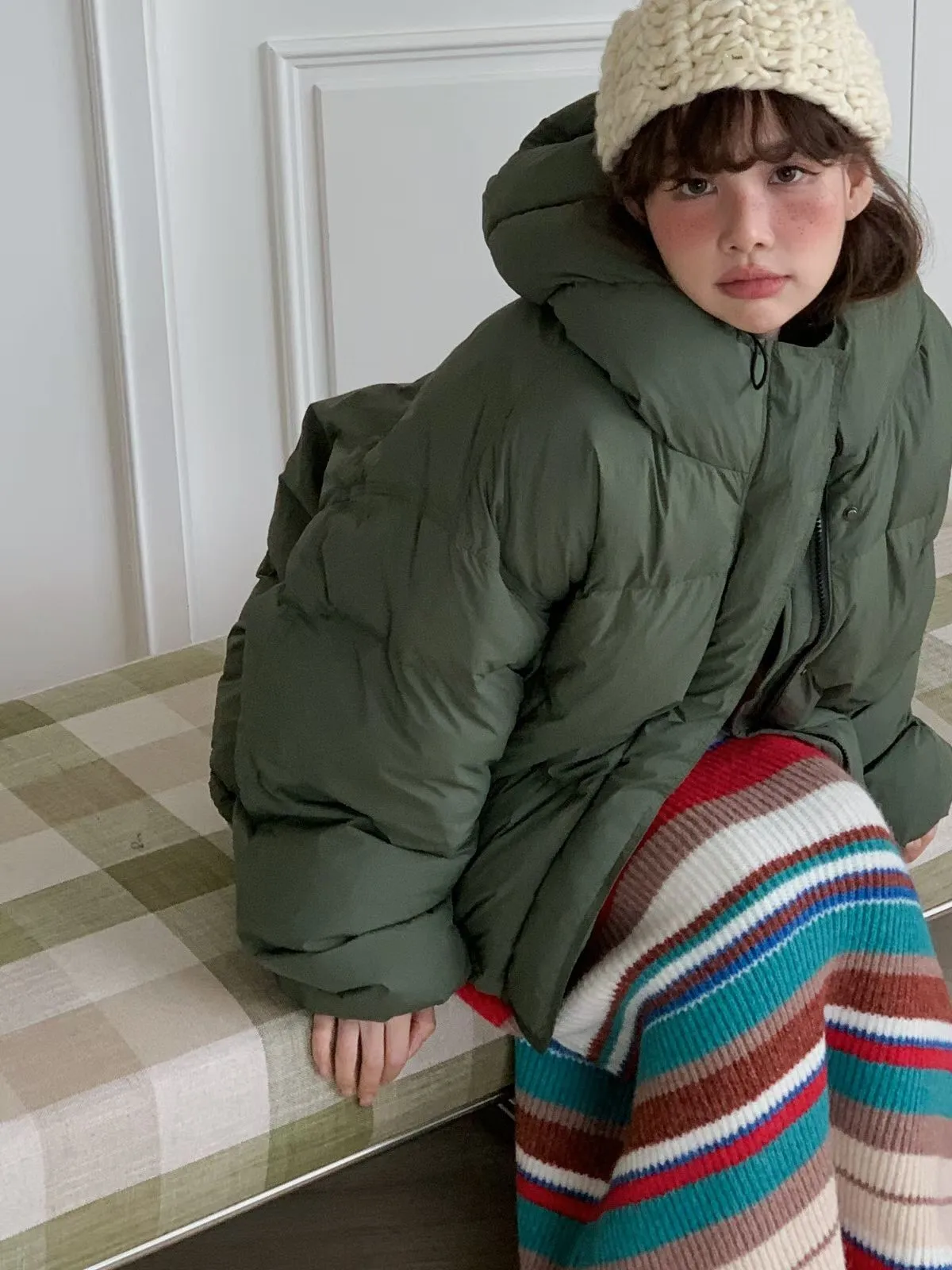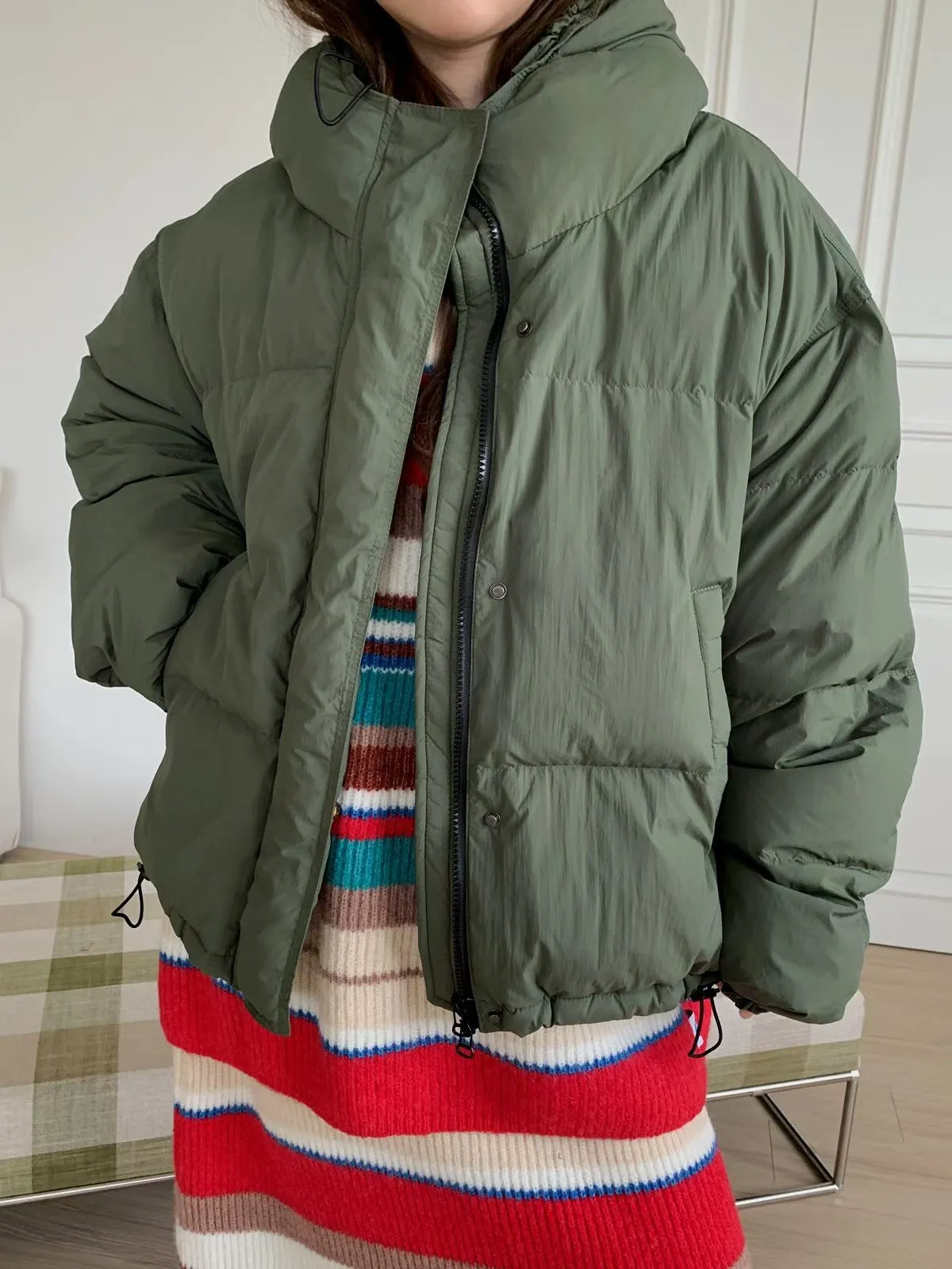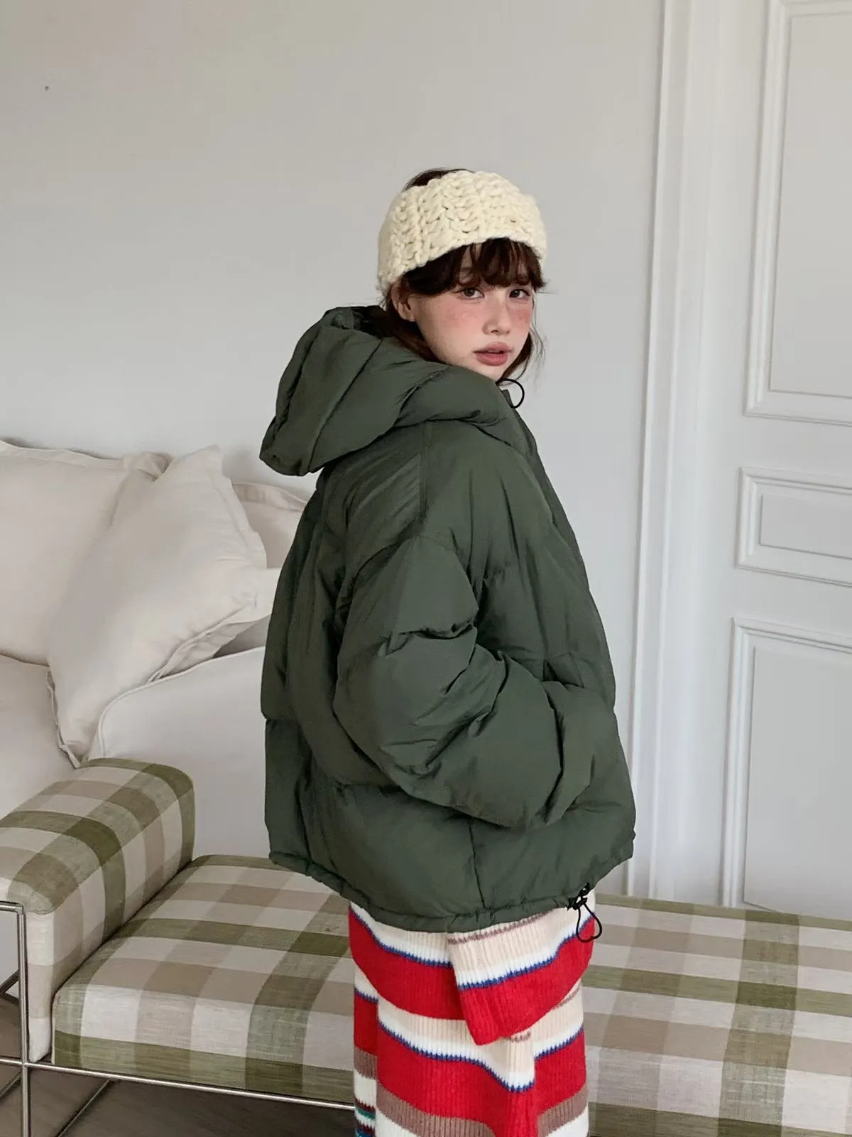 25JH21 連帽100%鴨絨下縮繩外套 3色