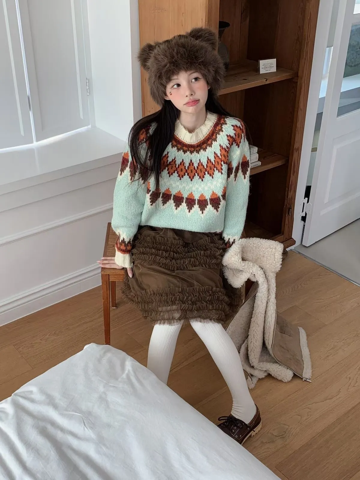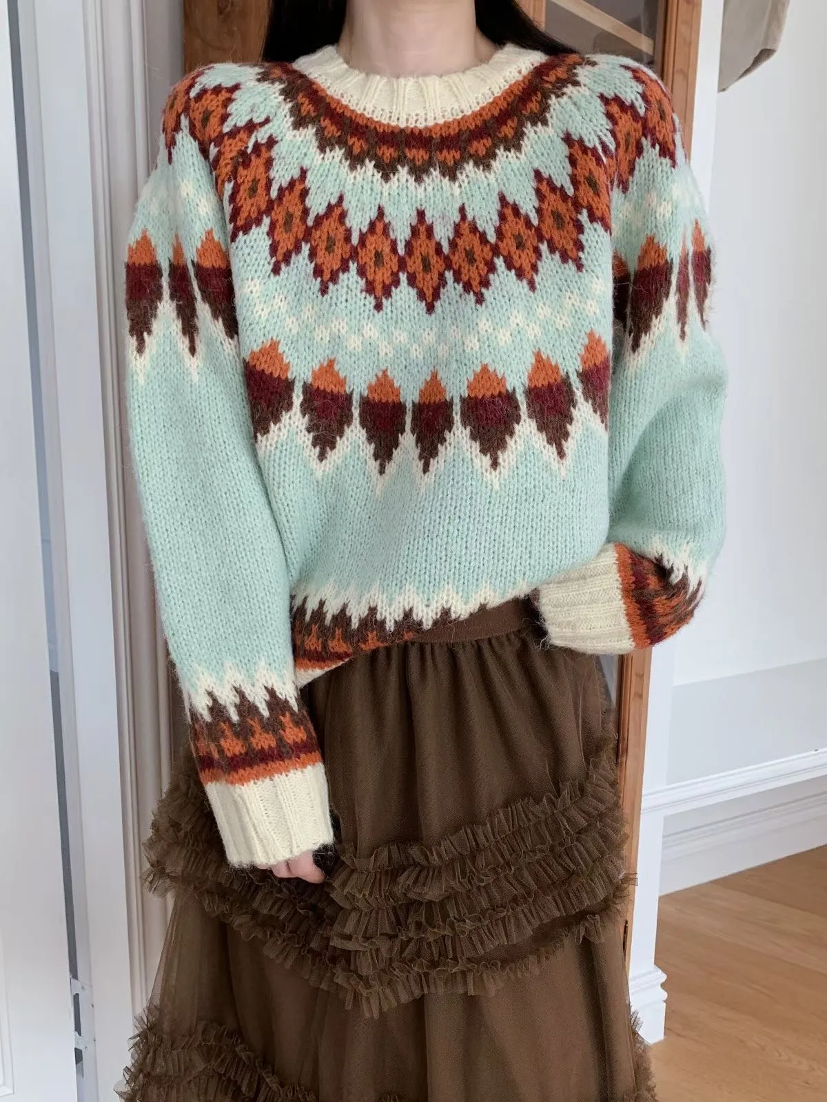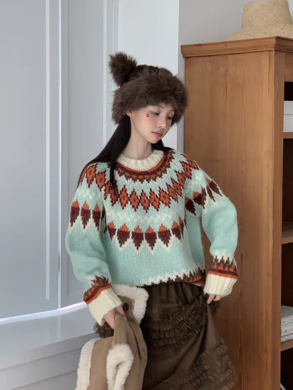25JH25 民族風針織棉毛衣 2色