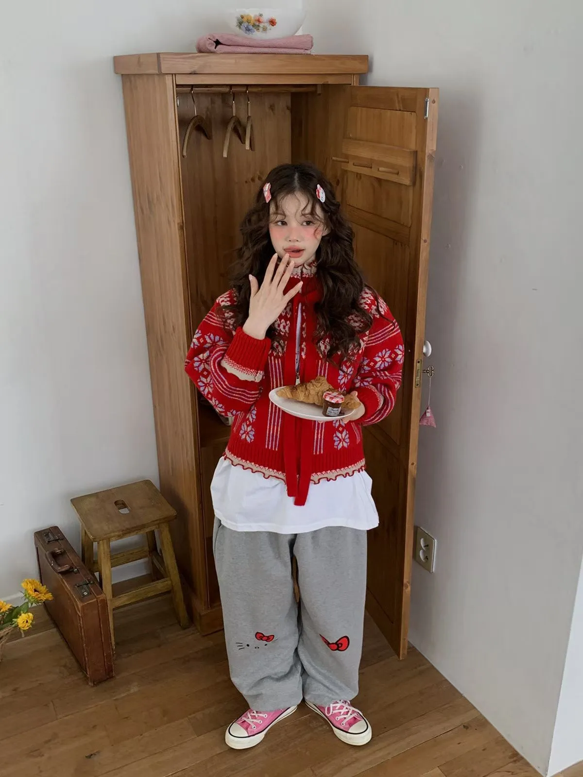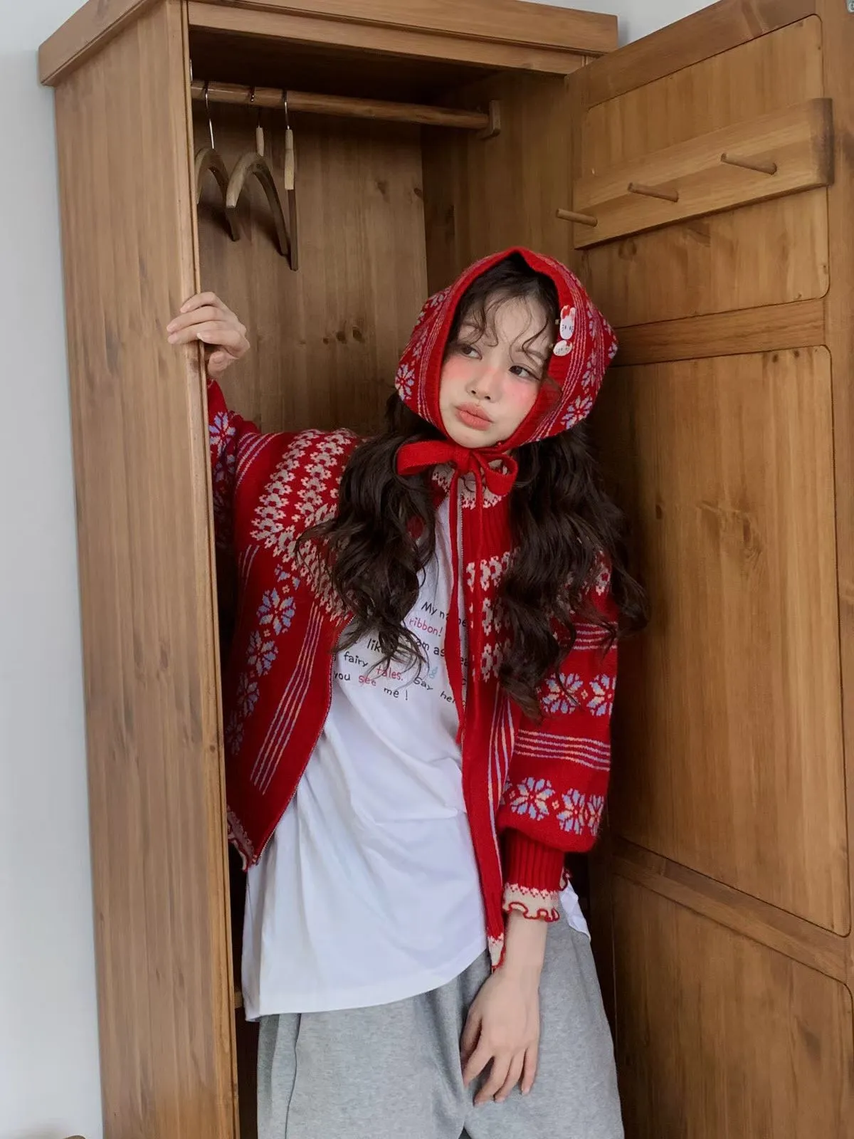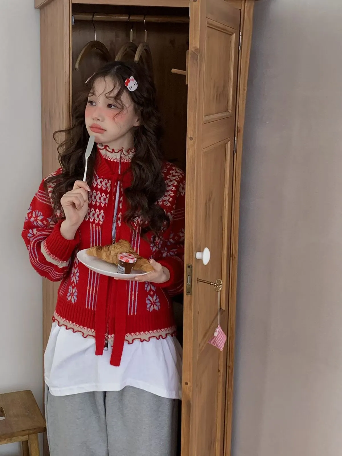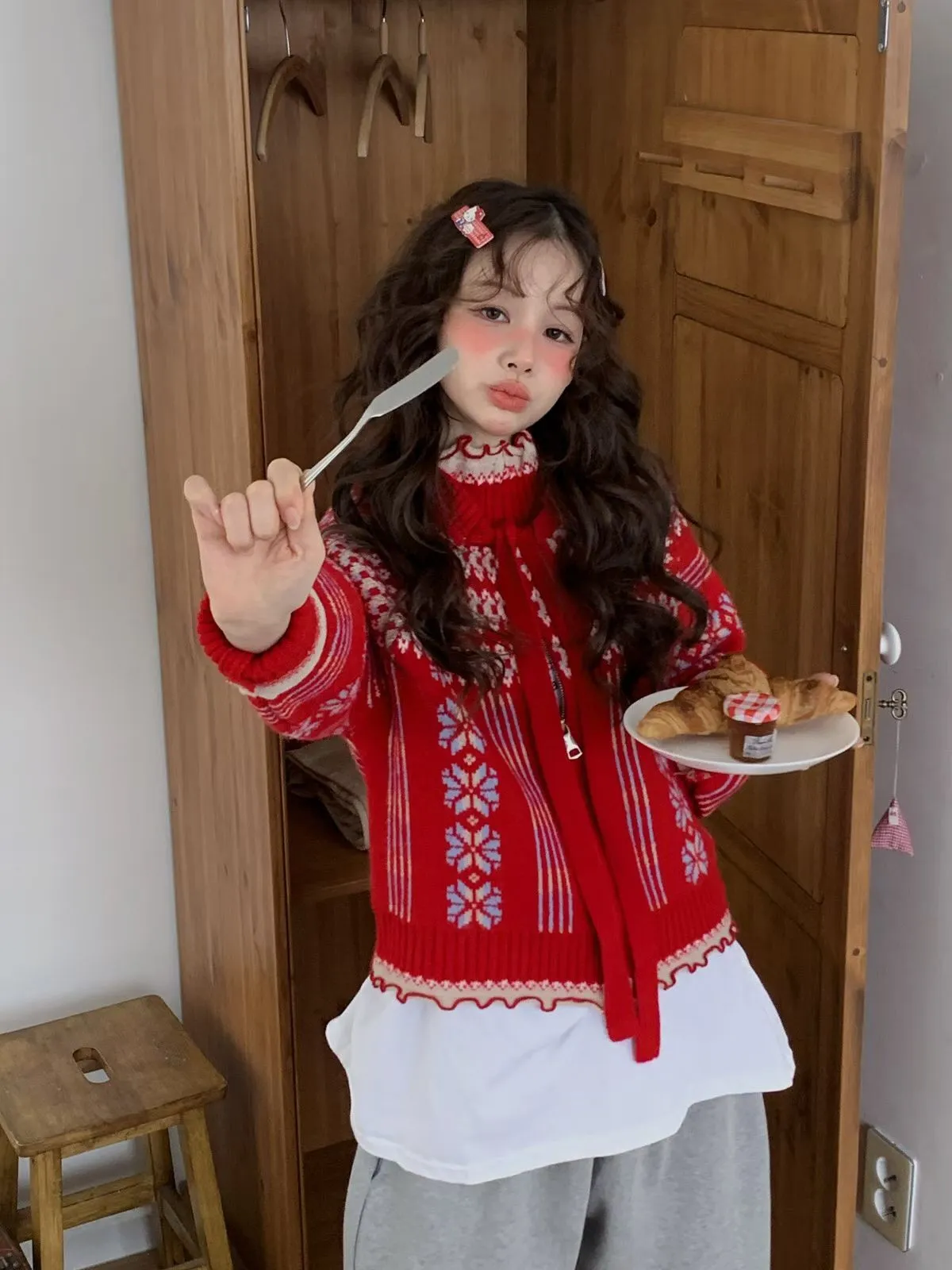 25JH36 碎彩花針織羊毛雙拉鏈毛衣外套+三角綁帶 set 2色