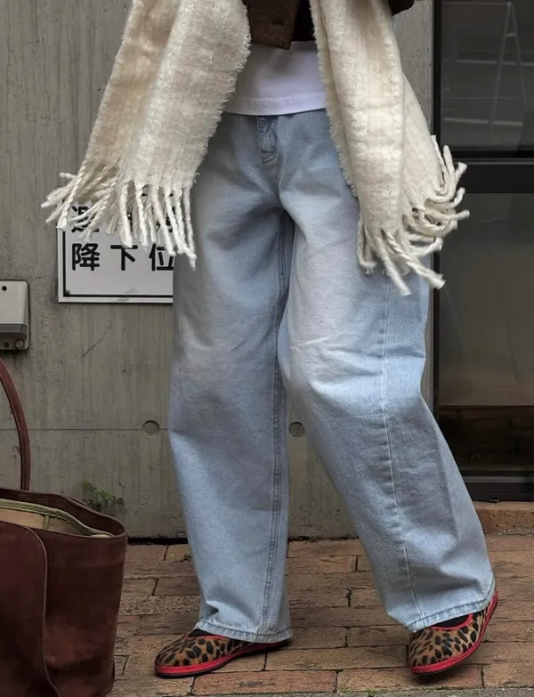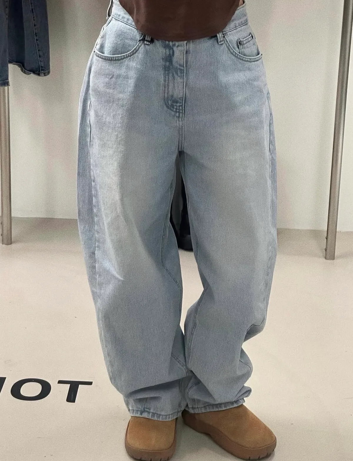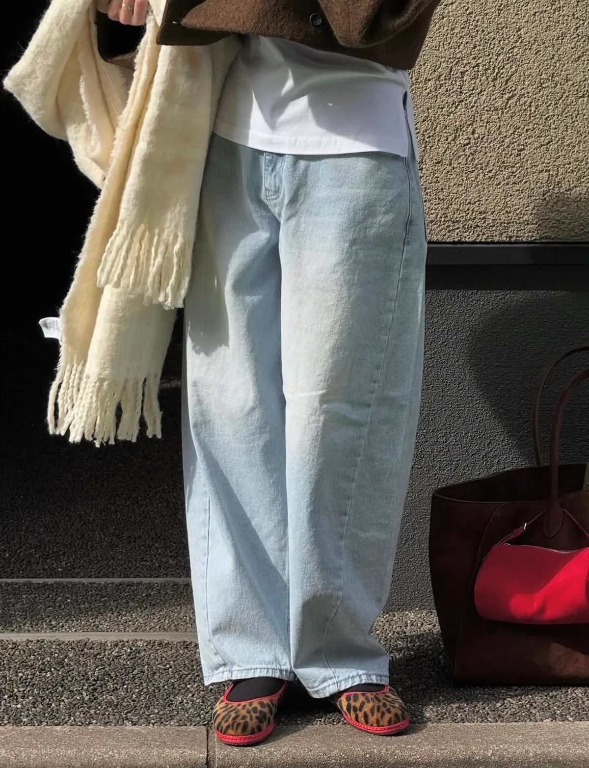 25JI03 彎彎剪裁淺洗色牛仔長褲 SML