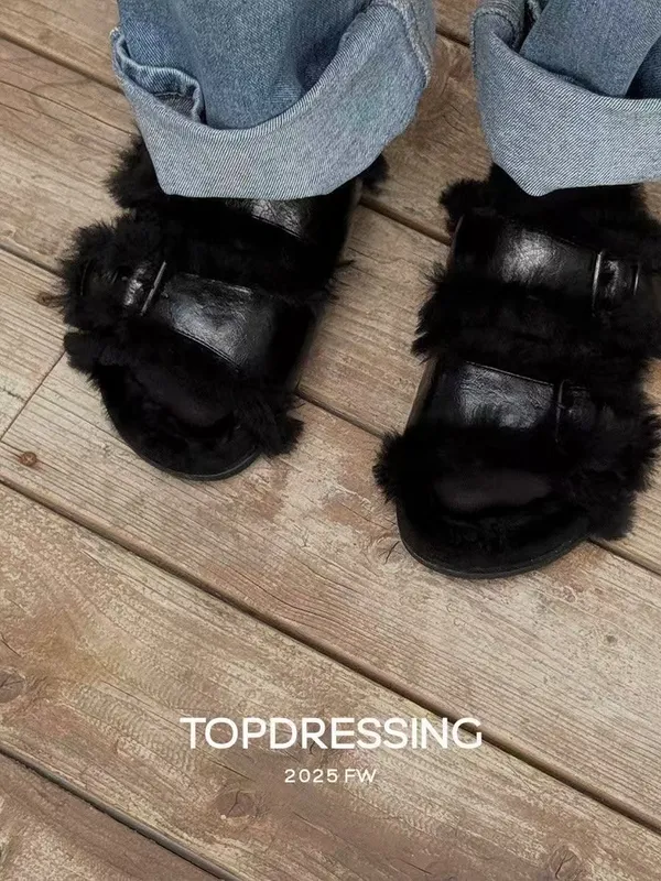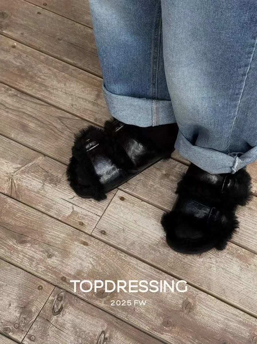 25JI08 羊毛兩帶勃肯拖鞋 SML