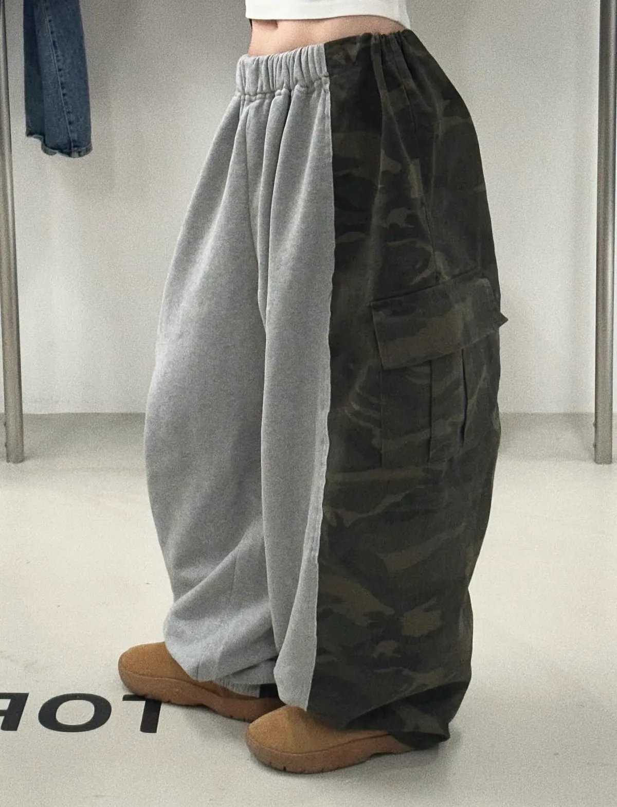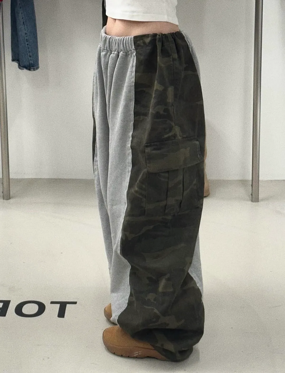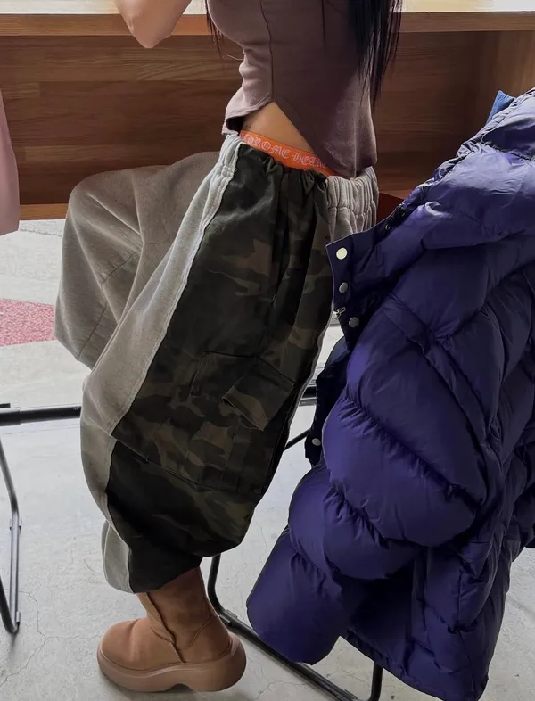 25JI10 內加絨迷彩拼接鬆緊腰棉褲