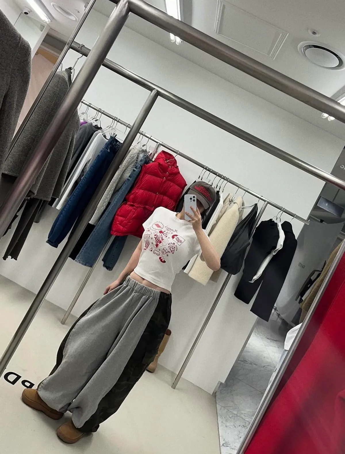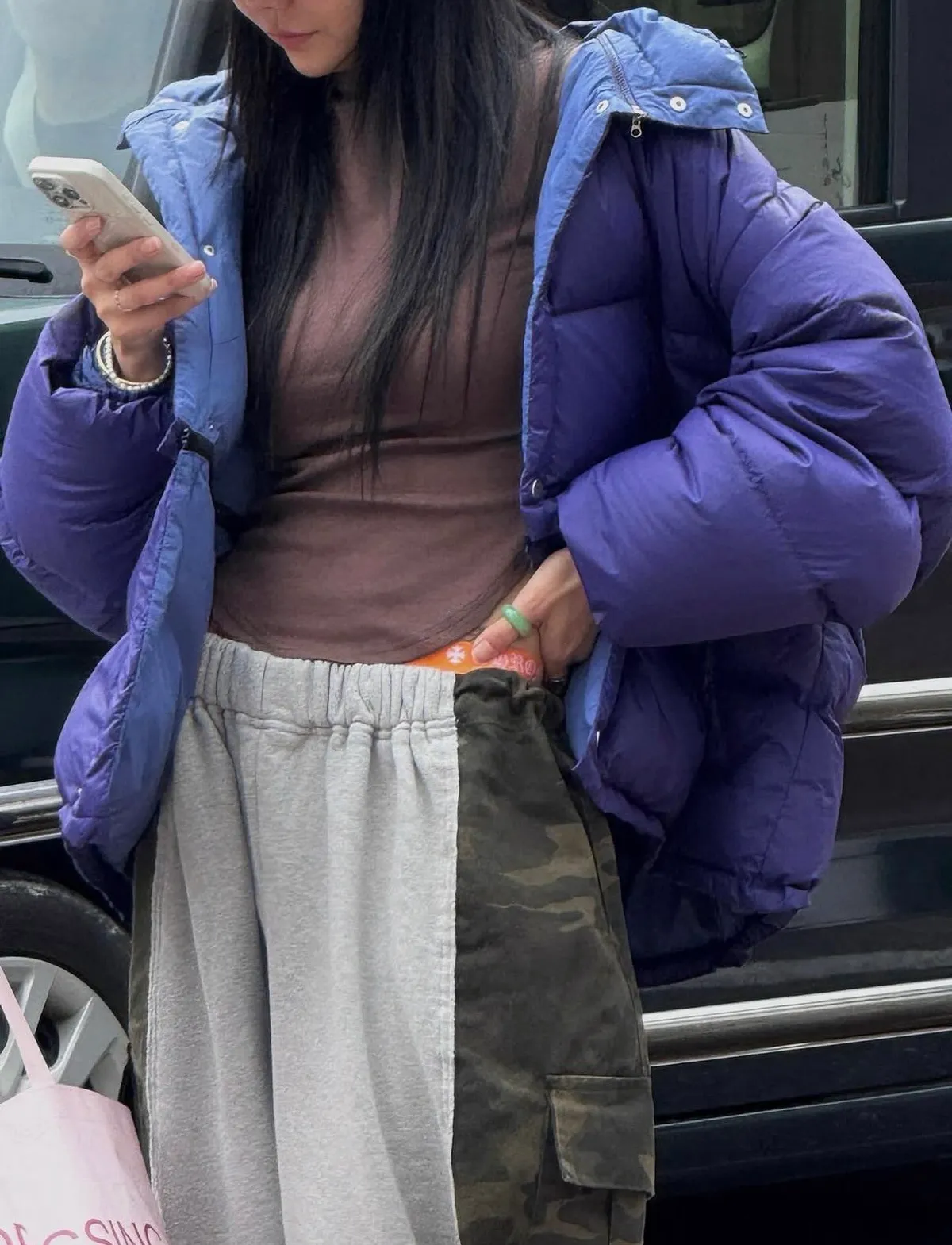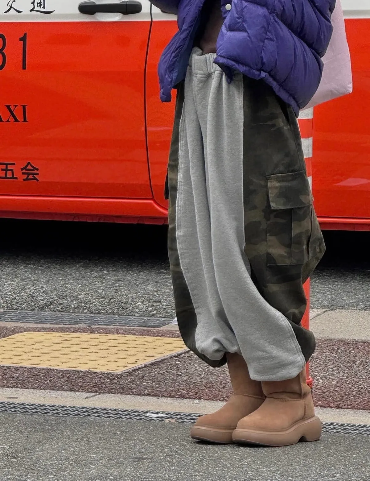 25JI10 內加絨迷彩拼接鬆緊腰棉褲