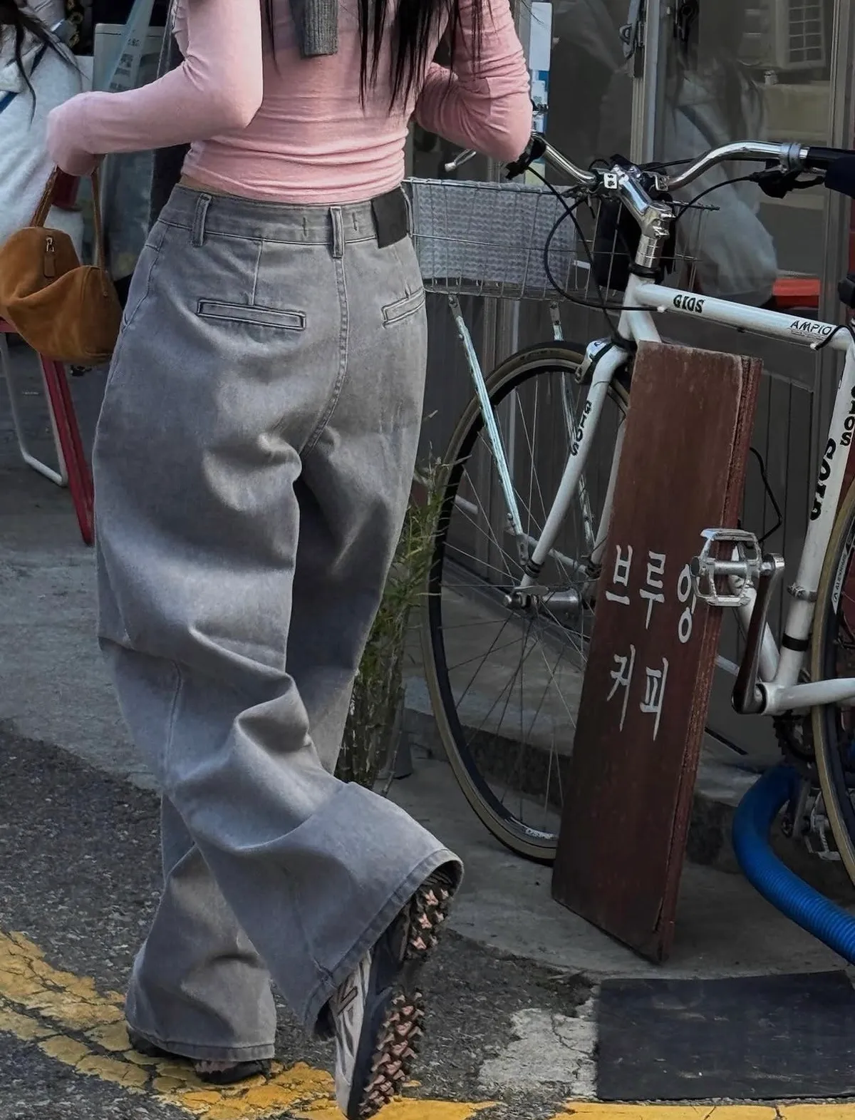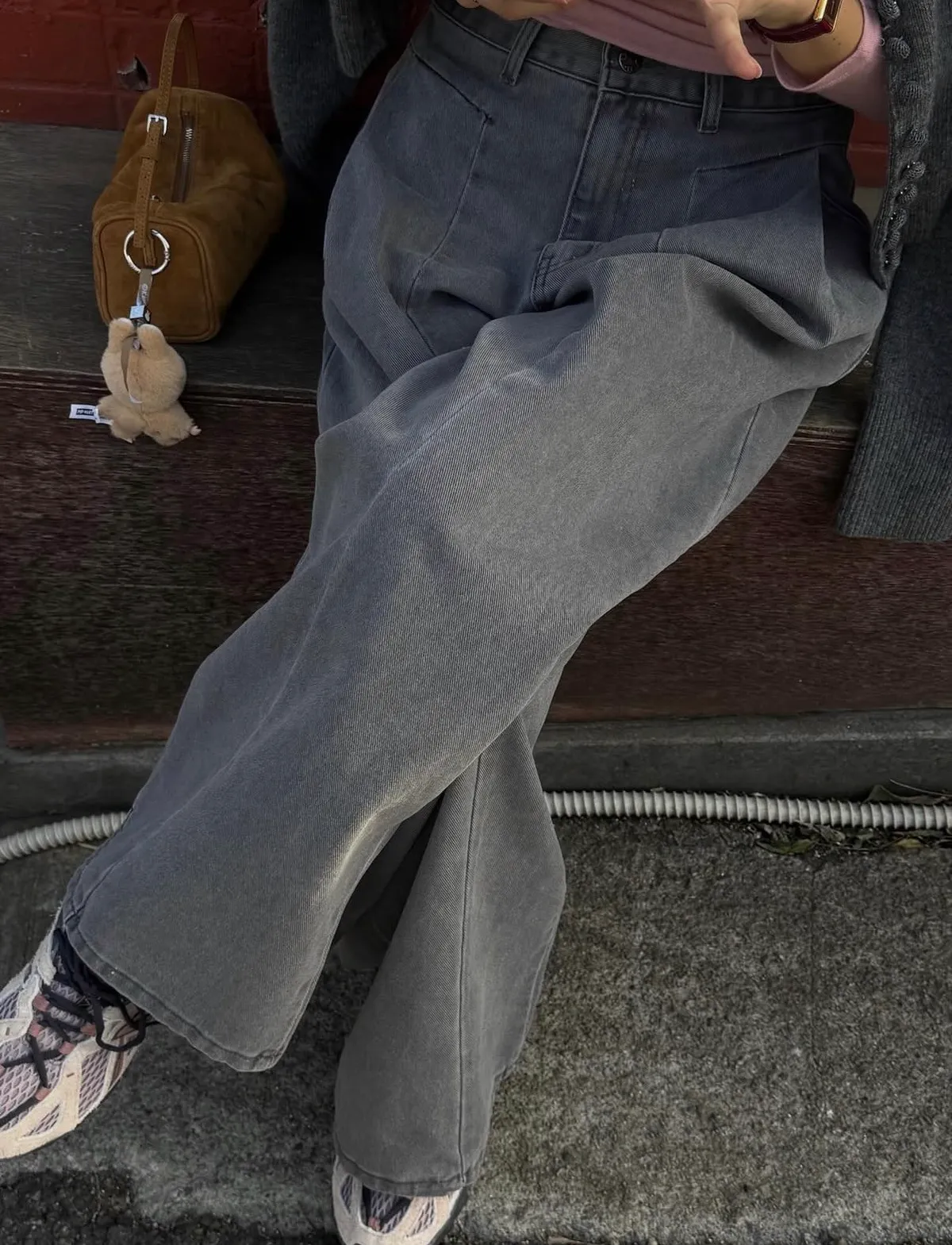 25JI13 打摺洗色灰斜紋牛仔長褲 SML