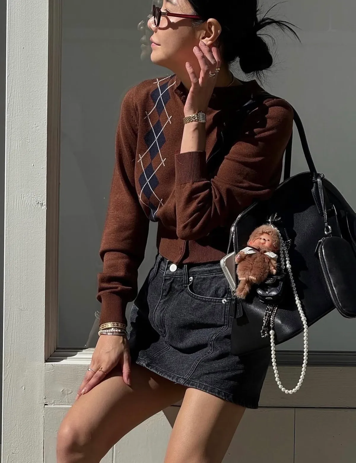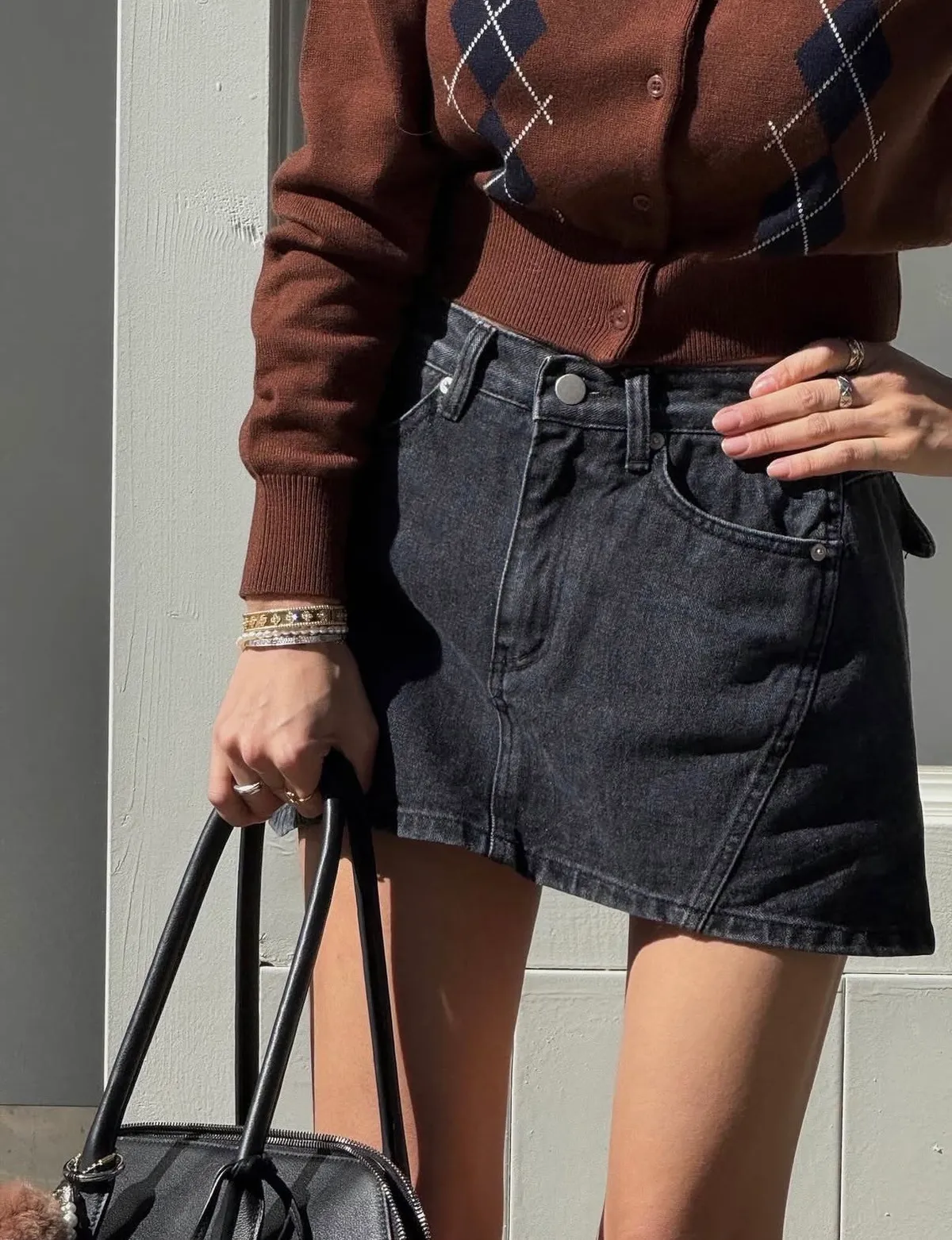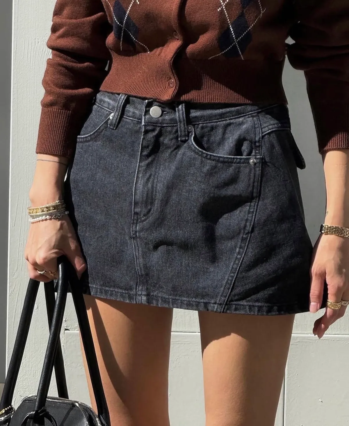 25JI15 A字洗色煙灰牛仔短褲裙 SML