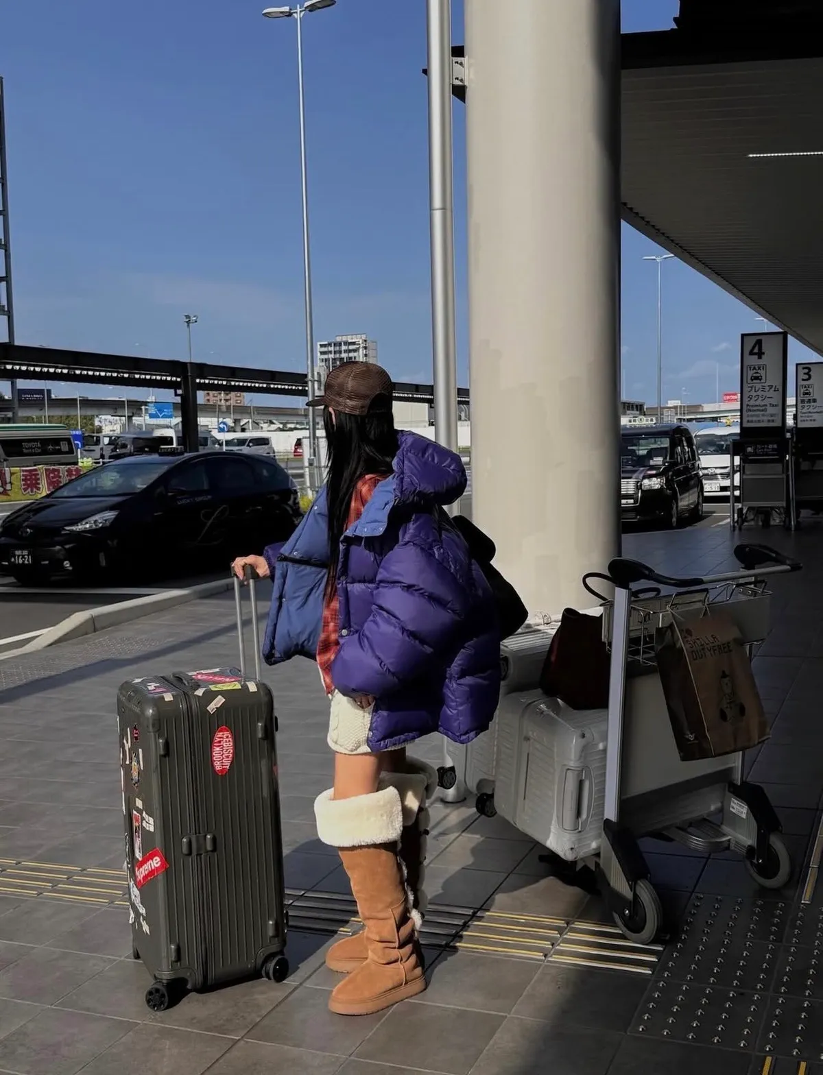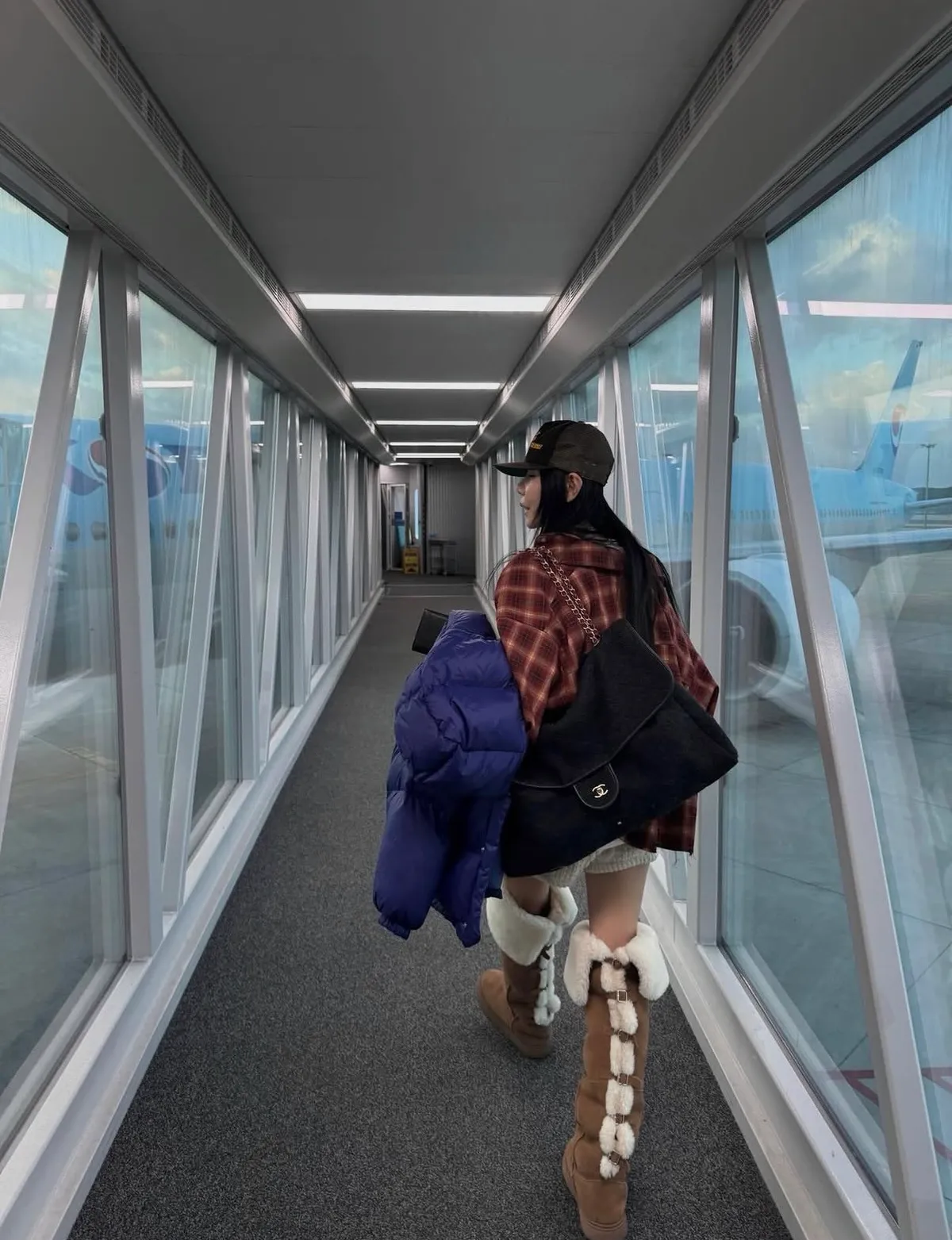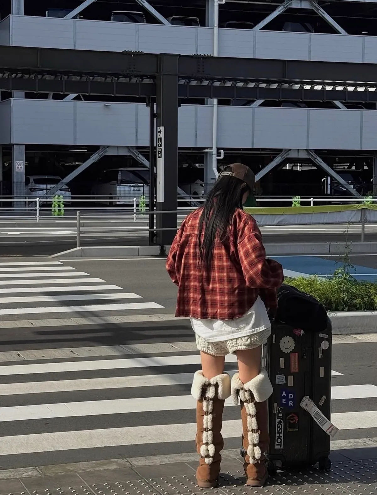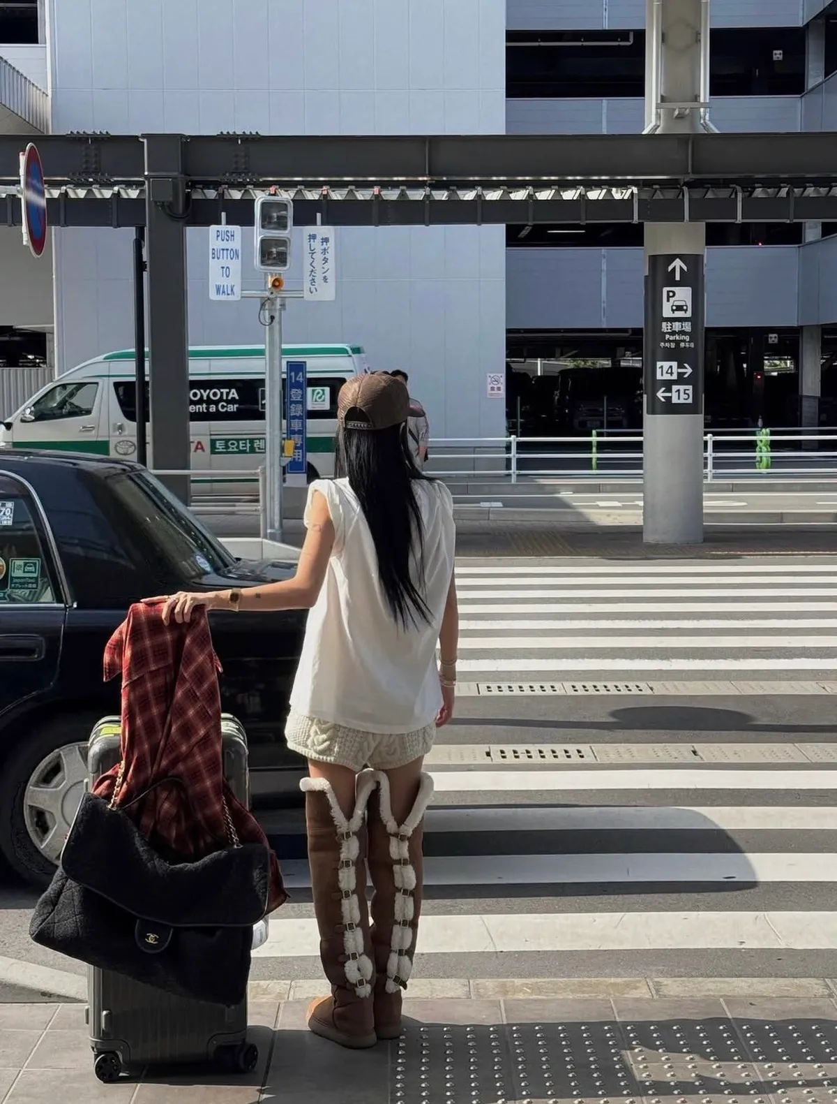 25JI16 真皮)牛麂皮羊羔毛過膝可反摺雪靴 SML