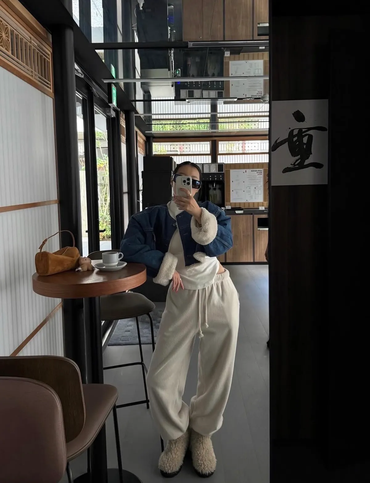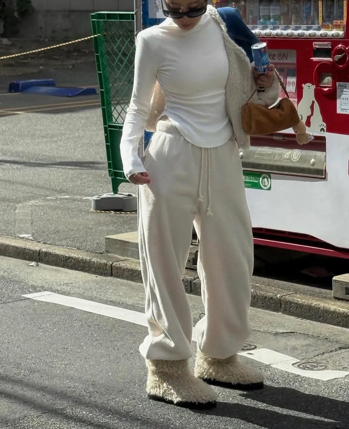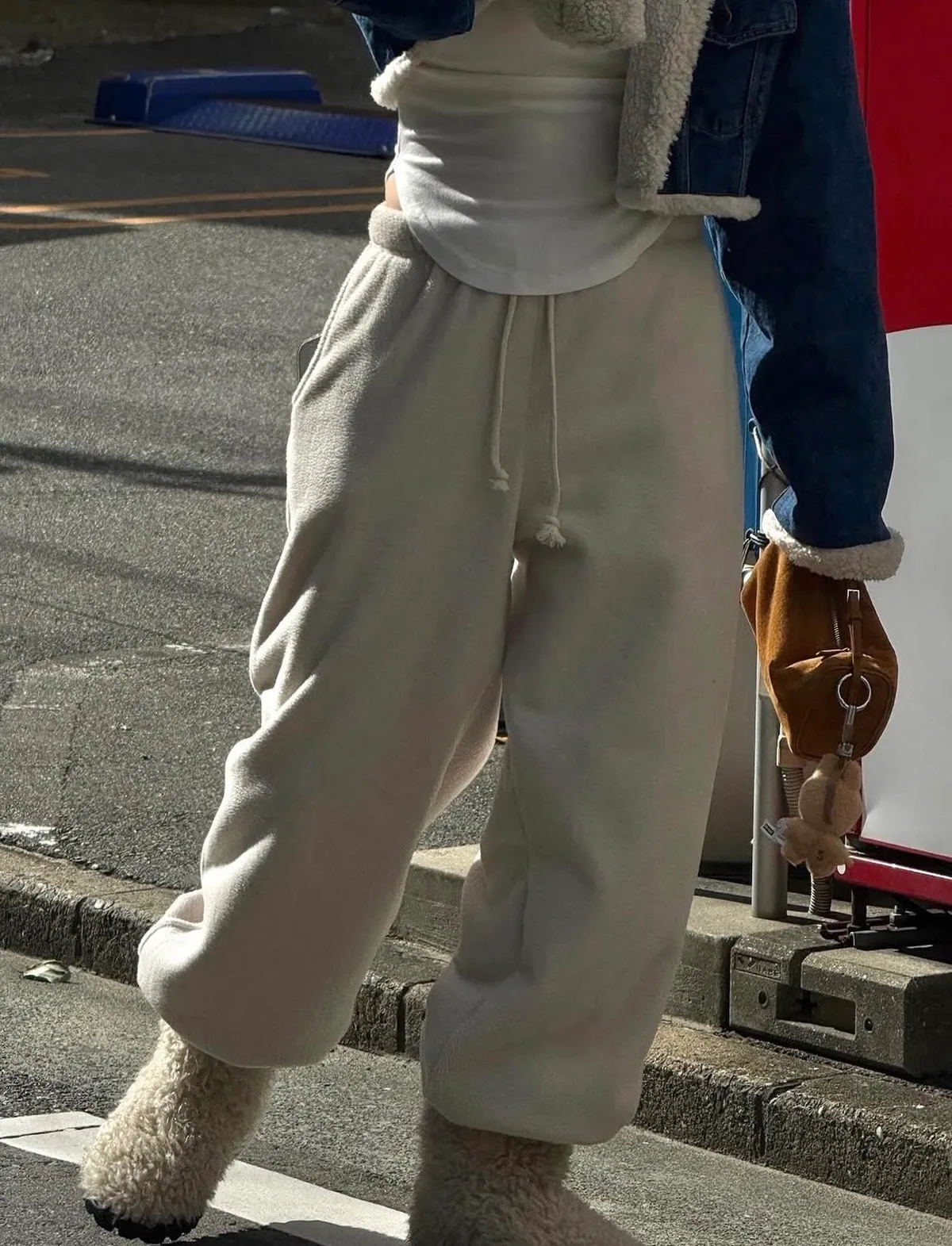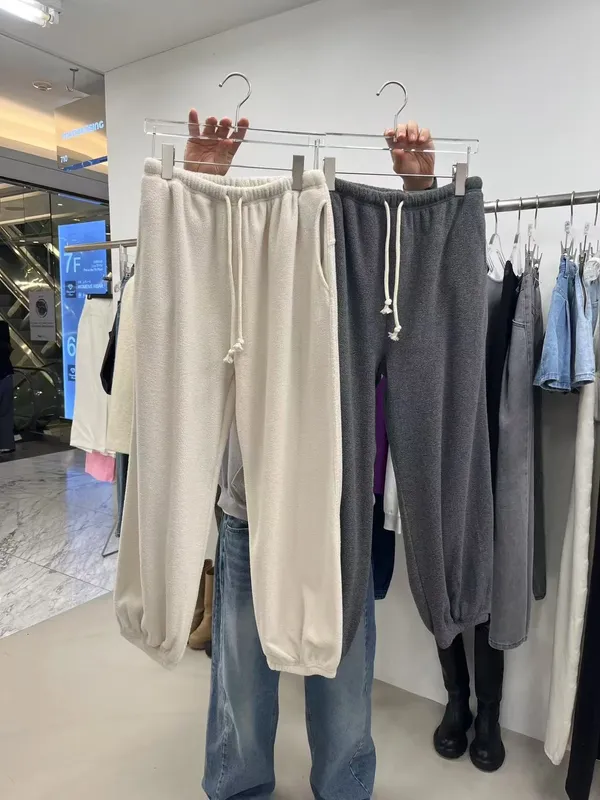 25JI21 絨感短腰頭縮腳棉長褲 2色