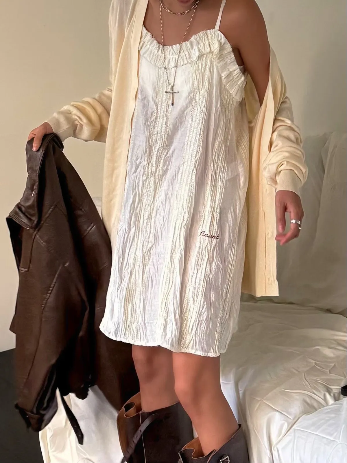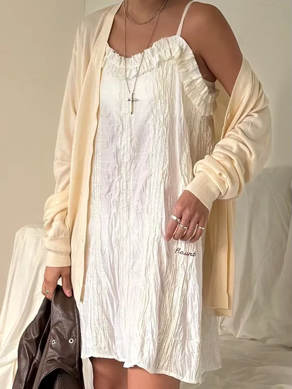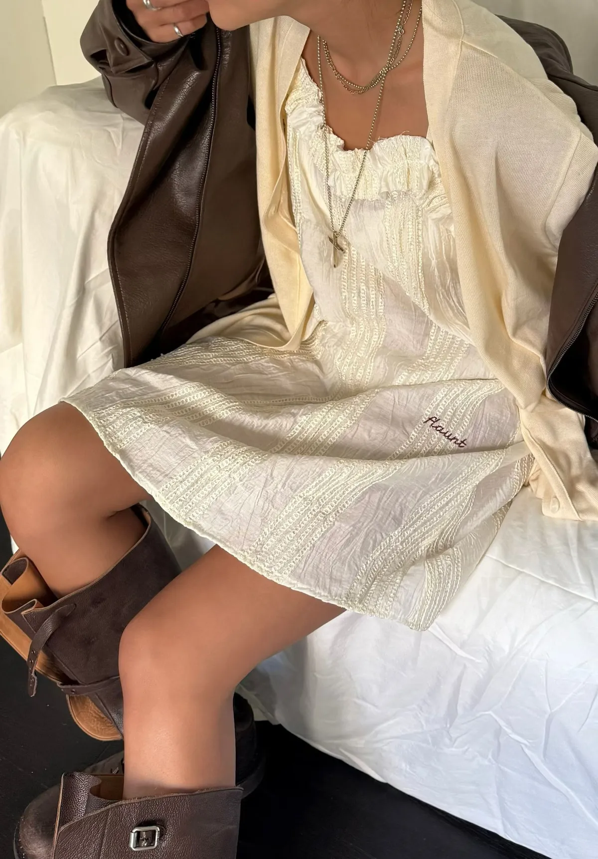 25JJ18 細肩帶電繡花紋短洋裝 3色