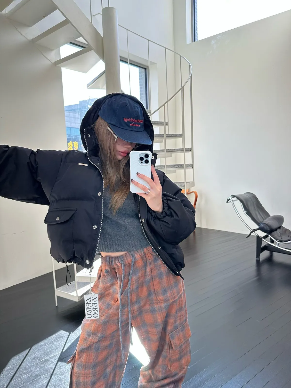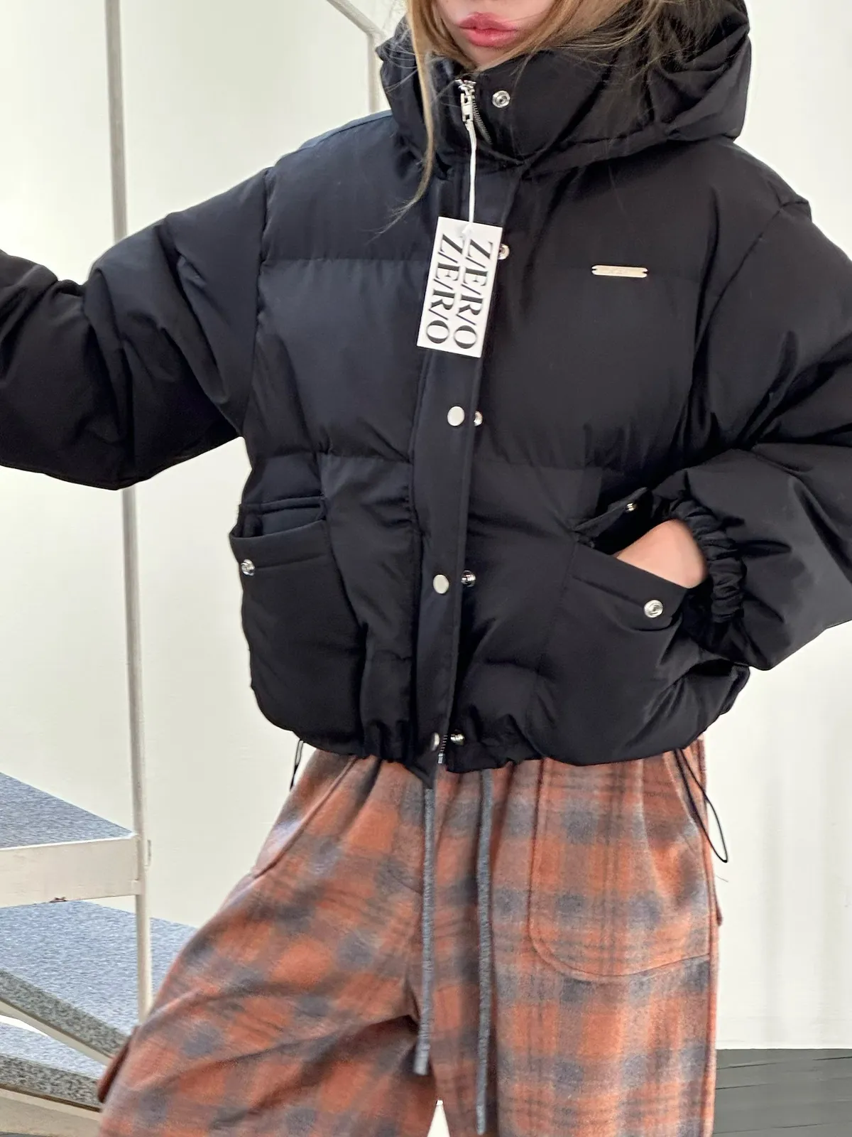 25JK11 連帽圓圓下縮繩羽絨棉外套 3色