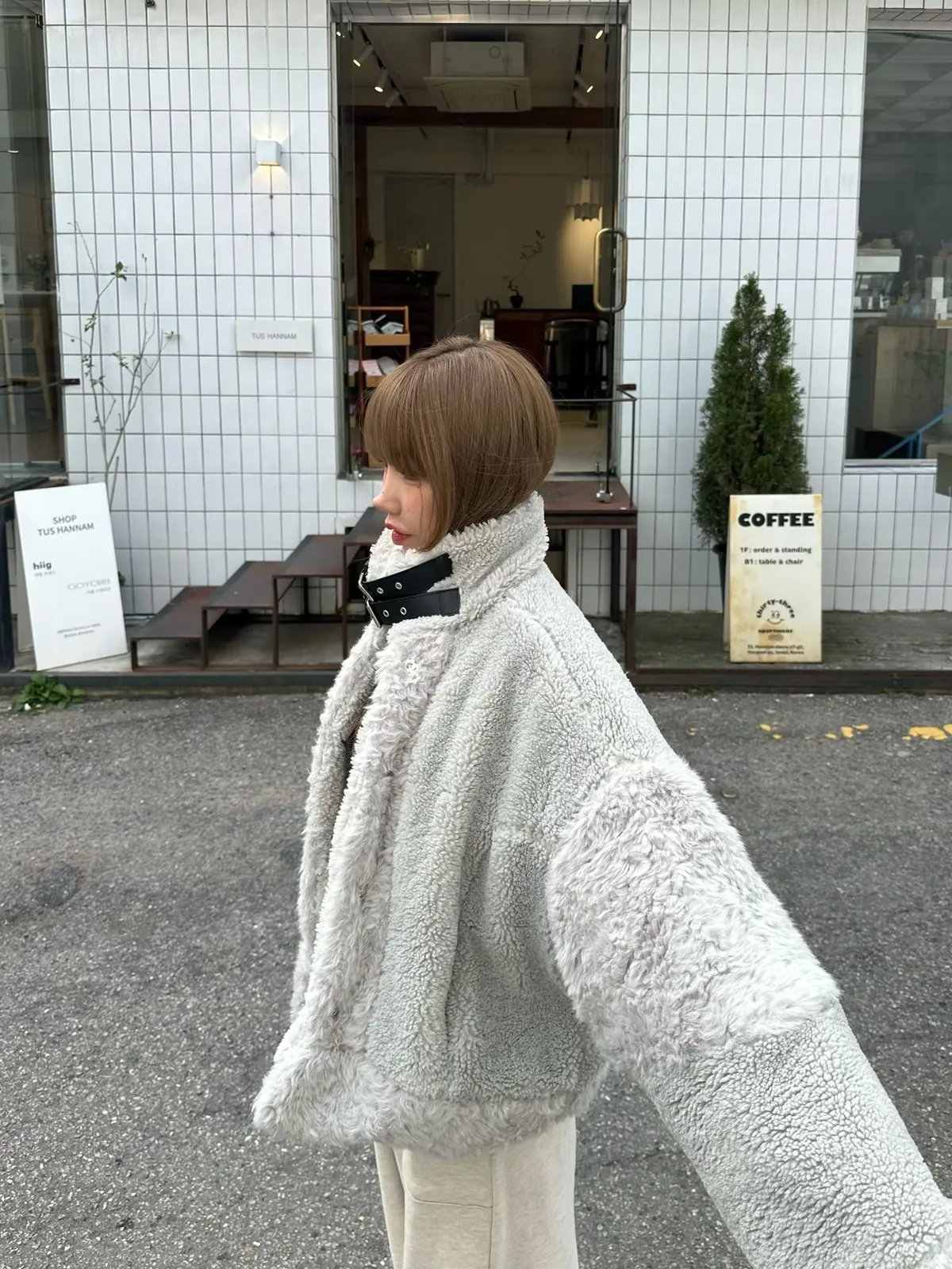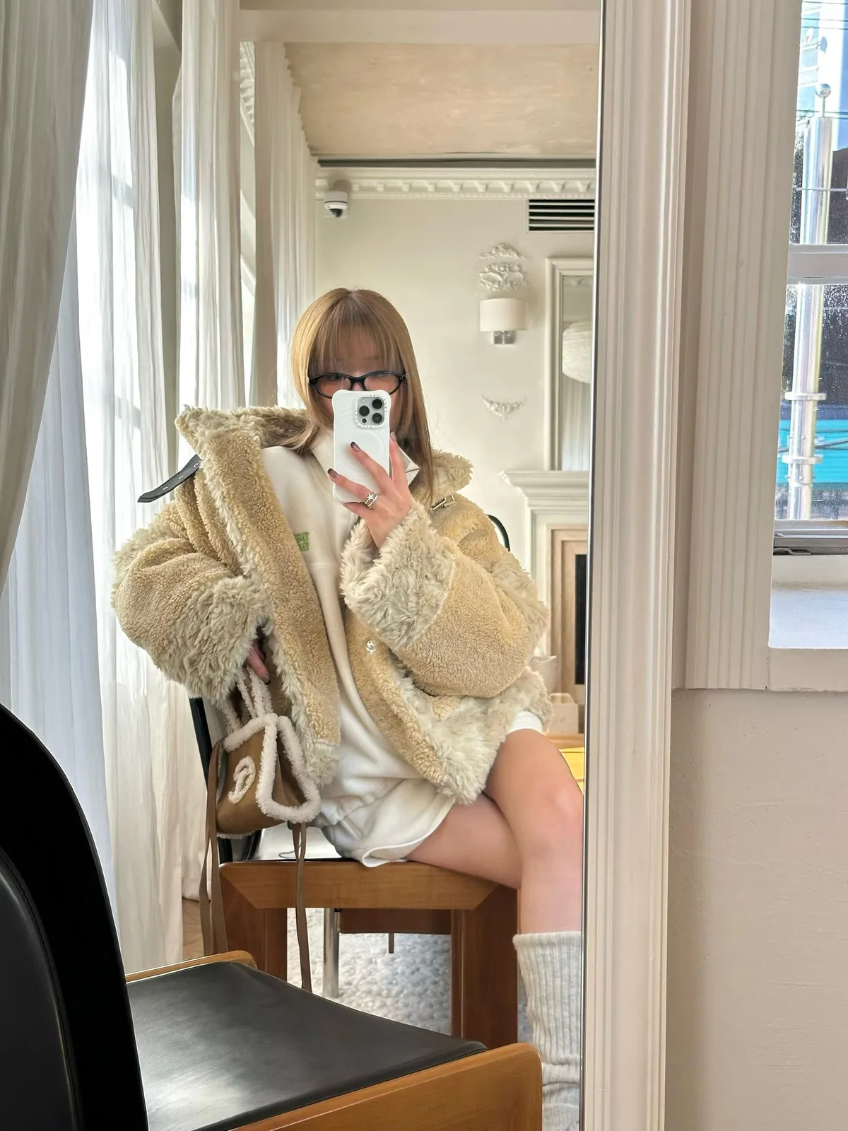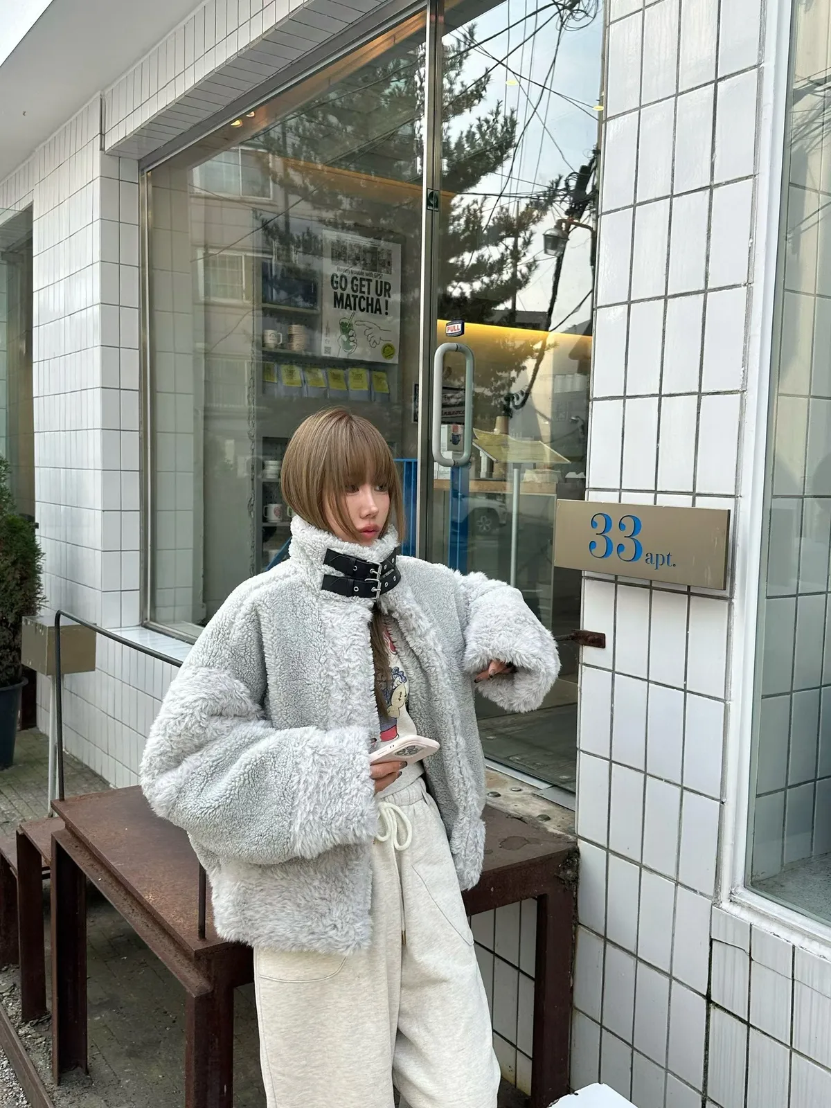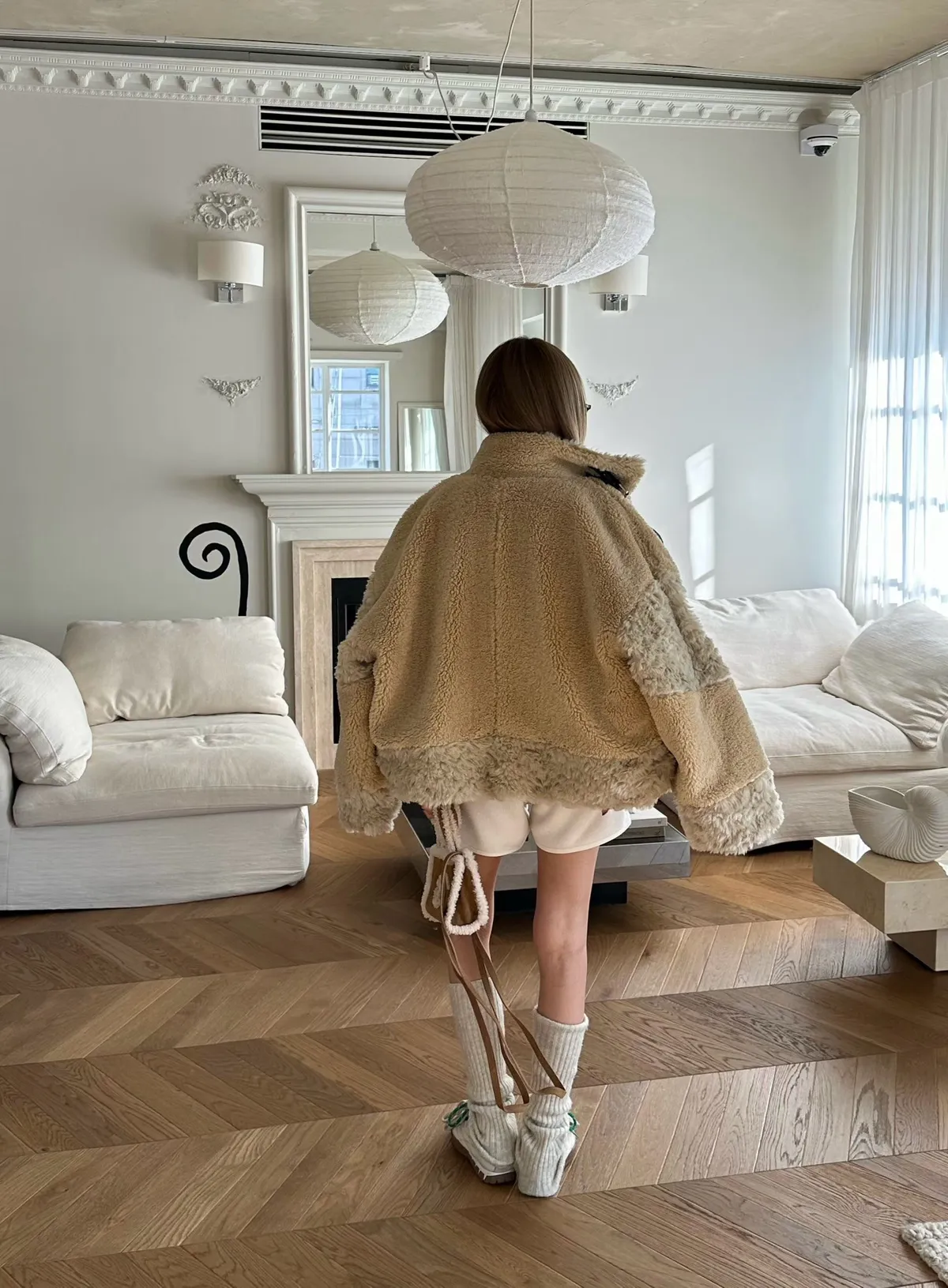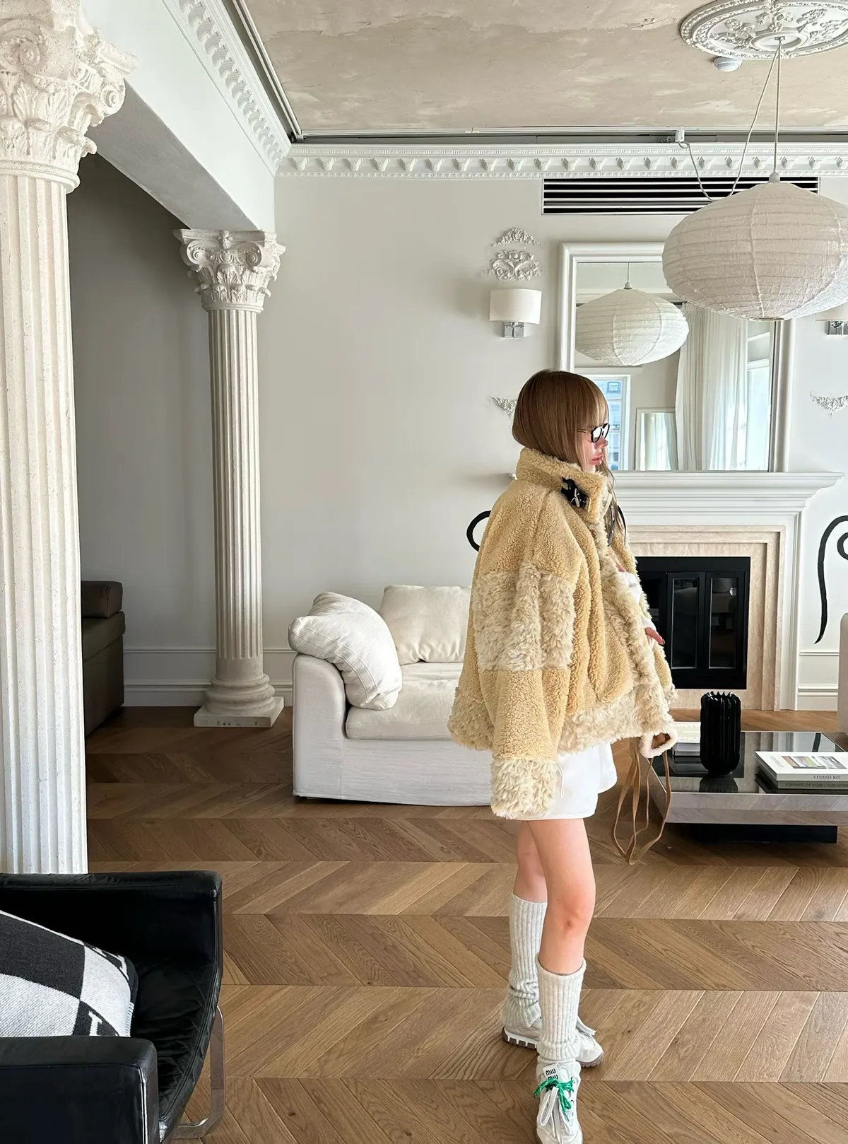 25JK13 拼接毛毛內夾棉騎士扣外套 3色