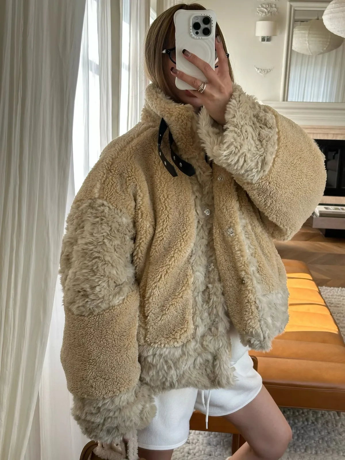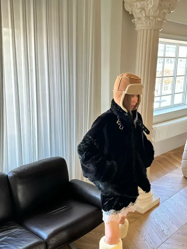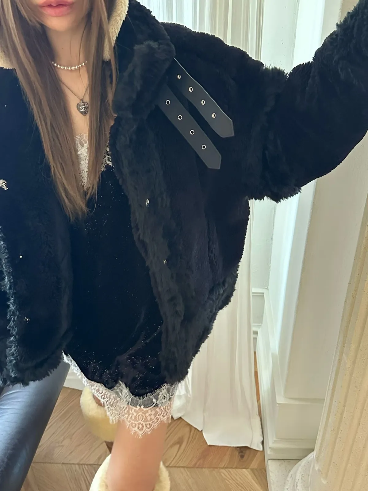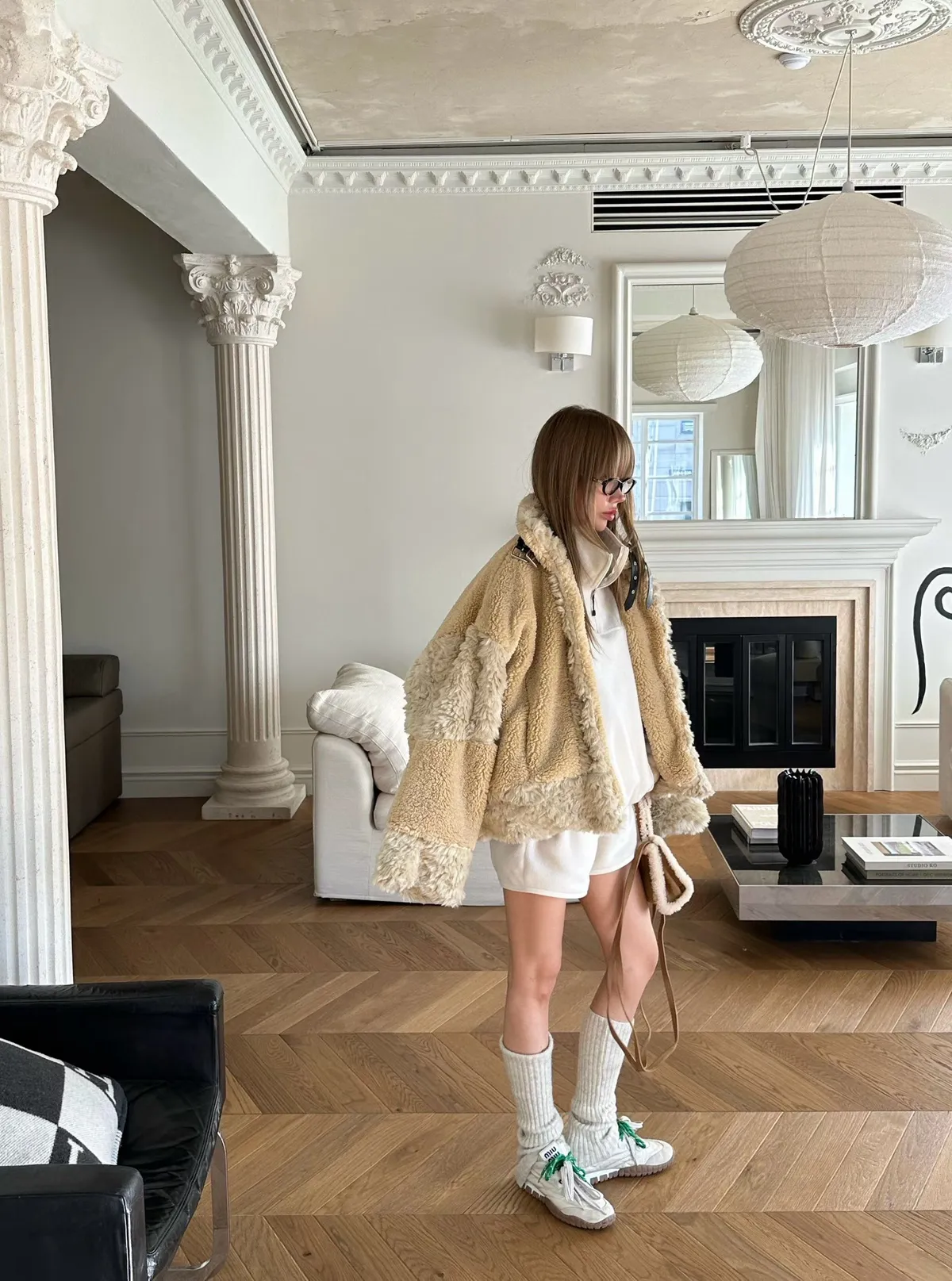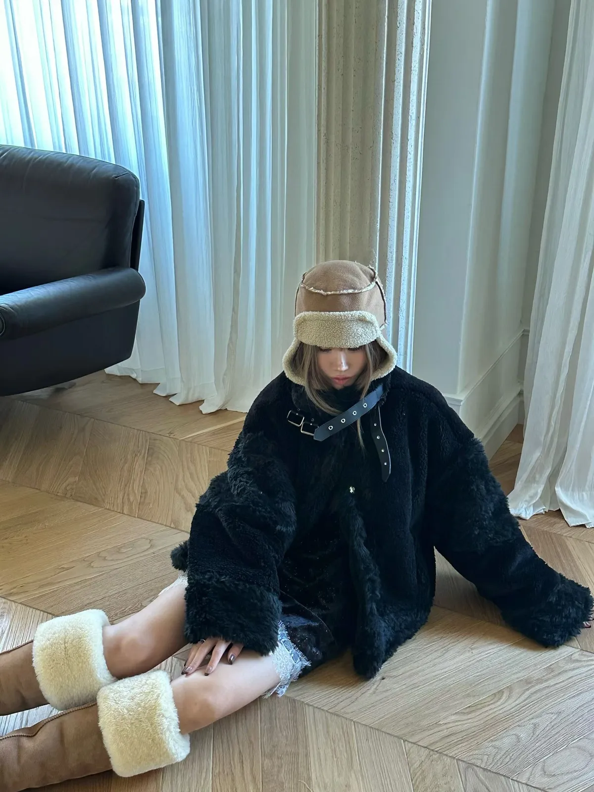 25JK13 拼接毛毛內夾棉騎士扣外套 3色