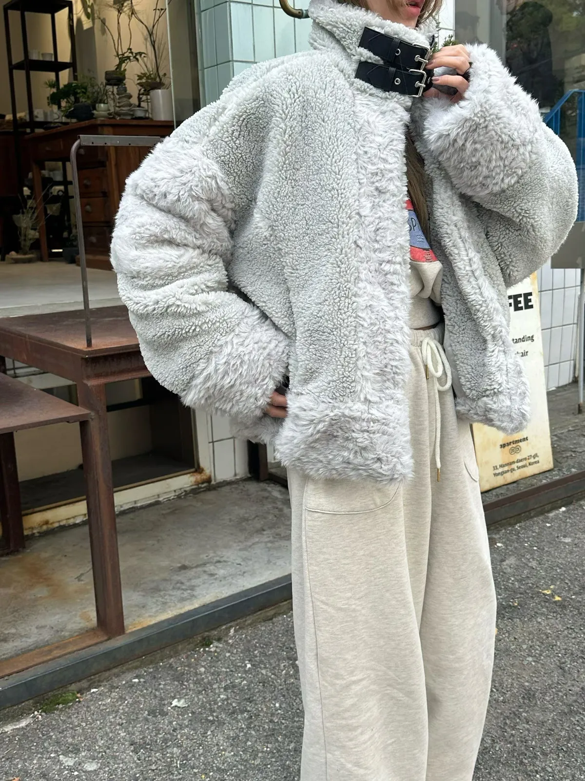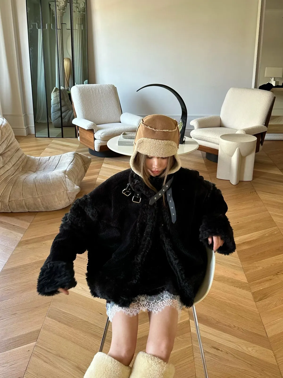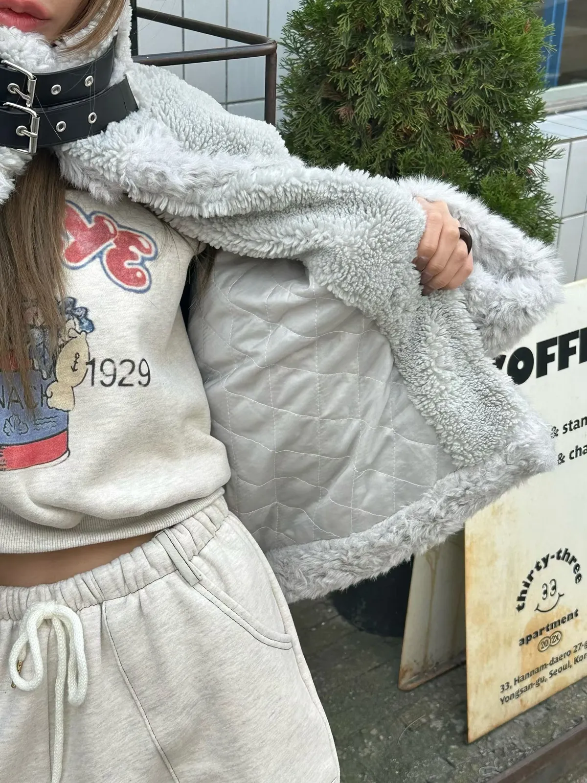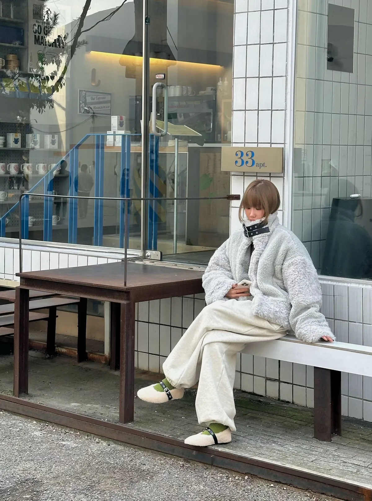 25JK13 拼接毛毛內夾棉騎士扣外套 3色
