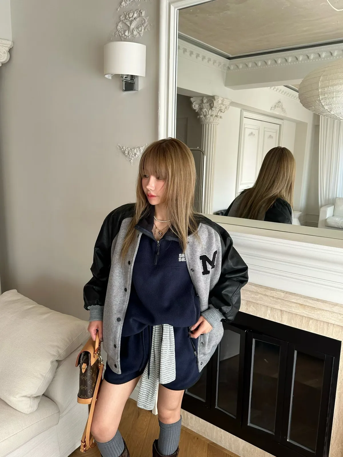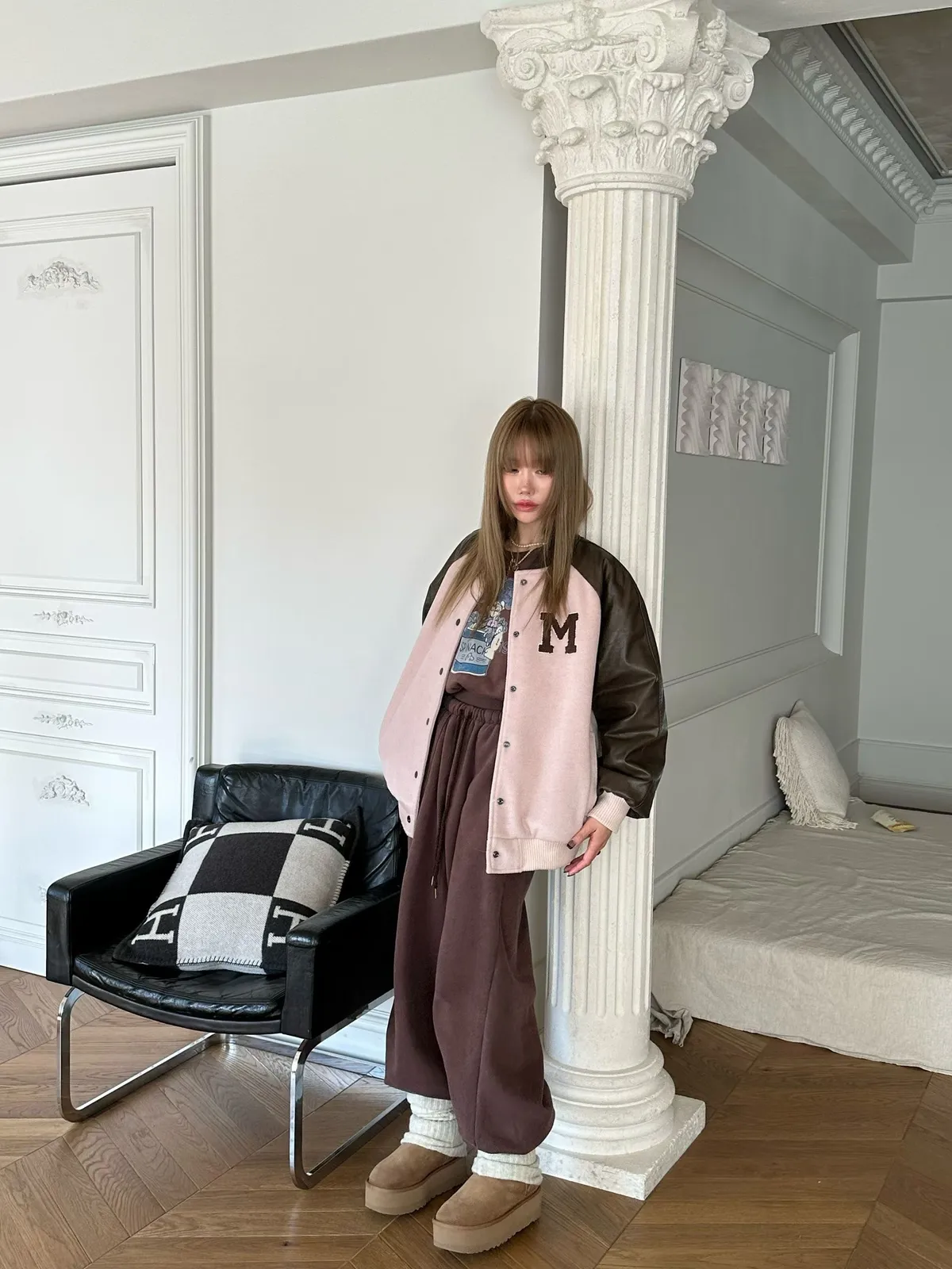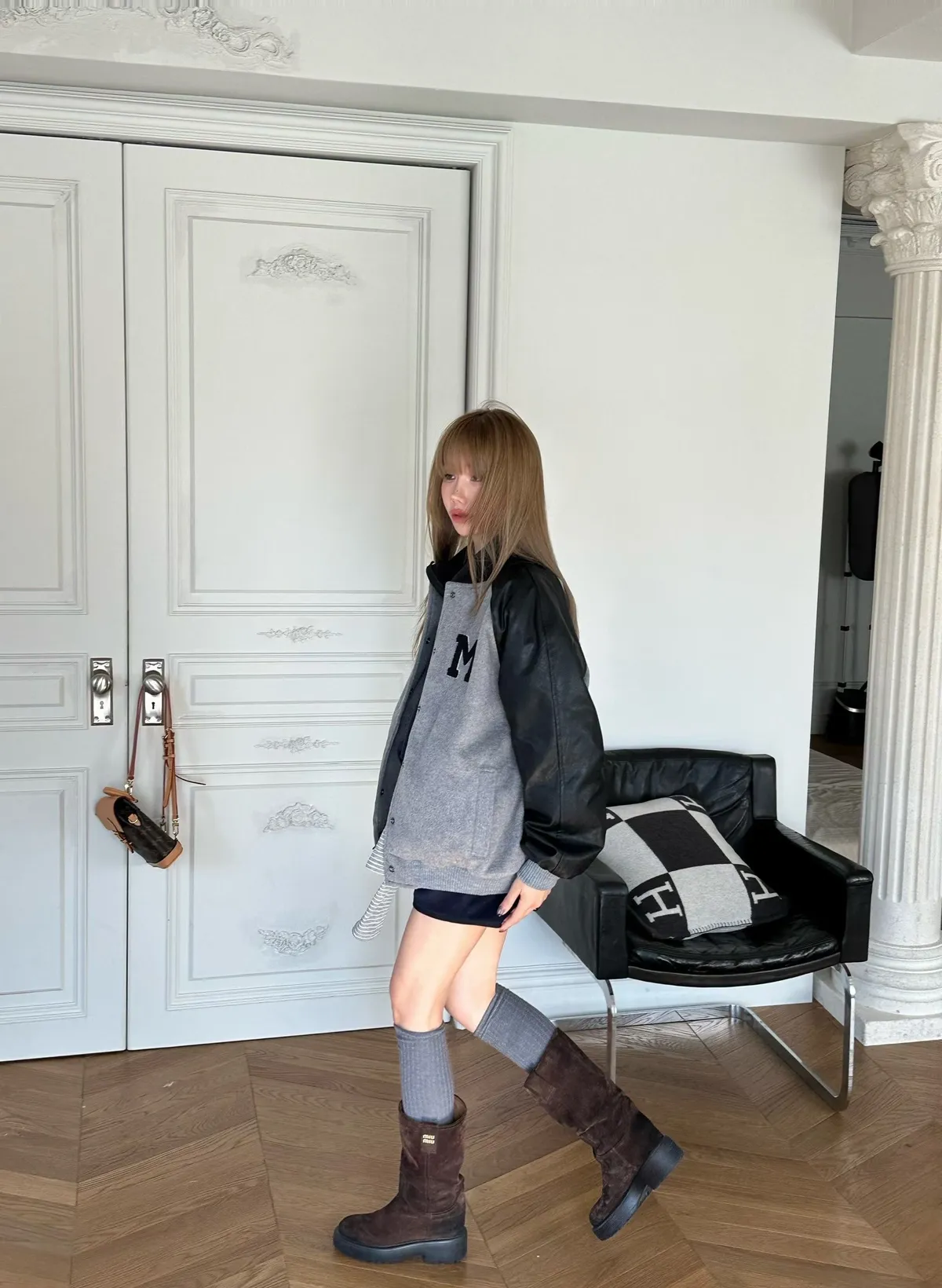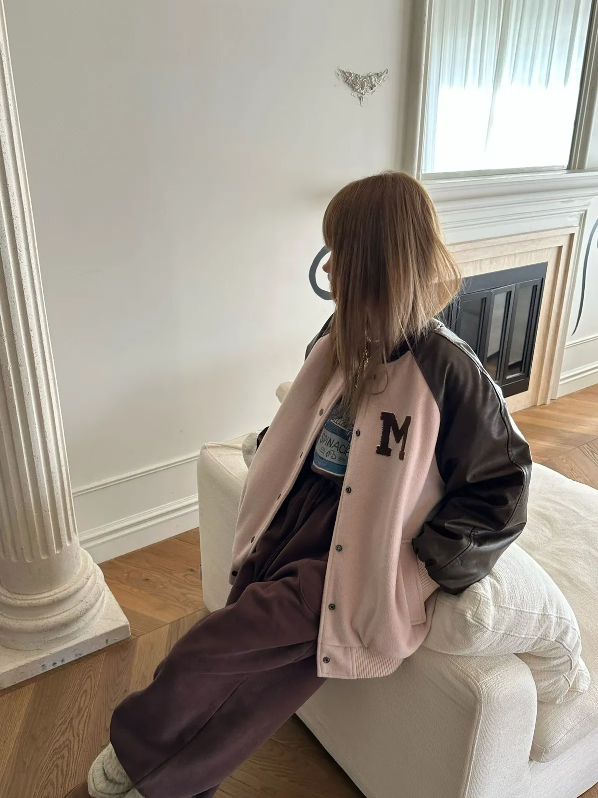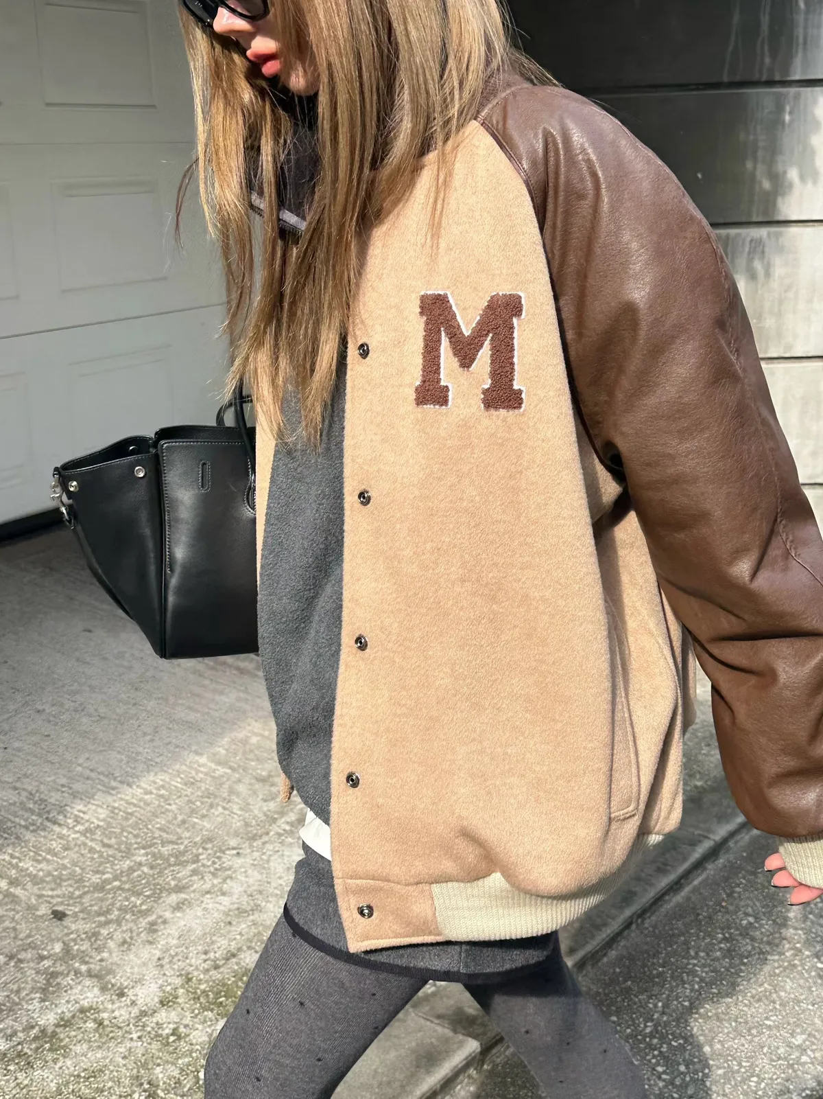 25JK17 羊毛M字拼皮袖棒球外套 3色