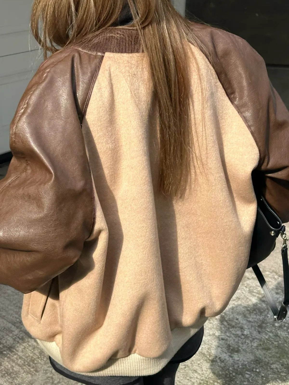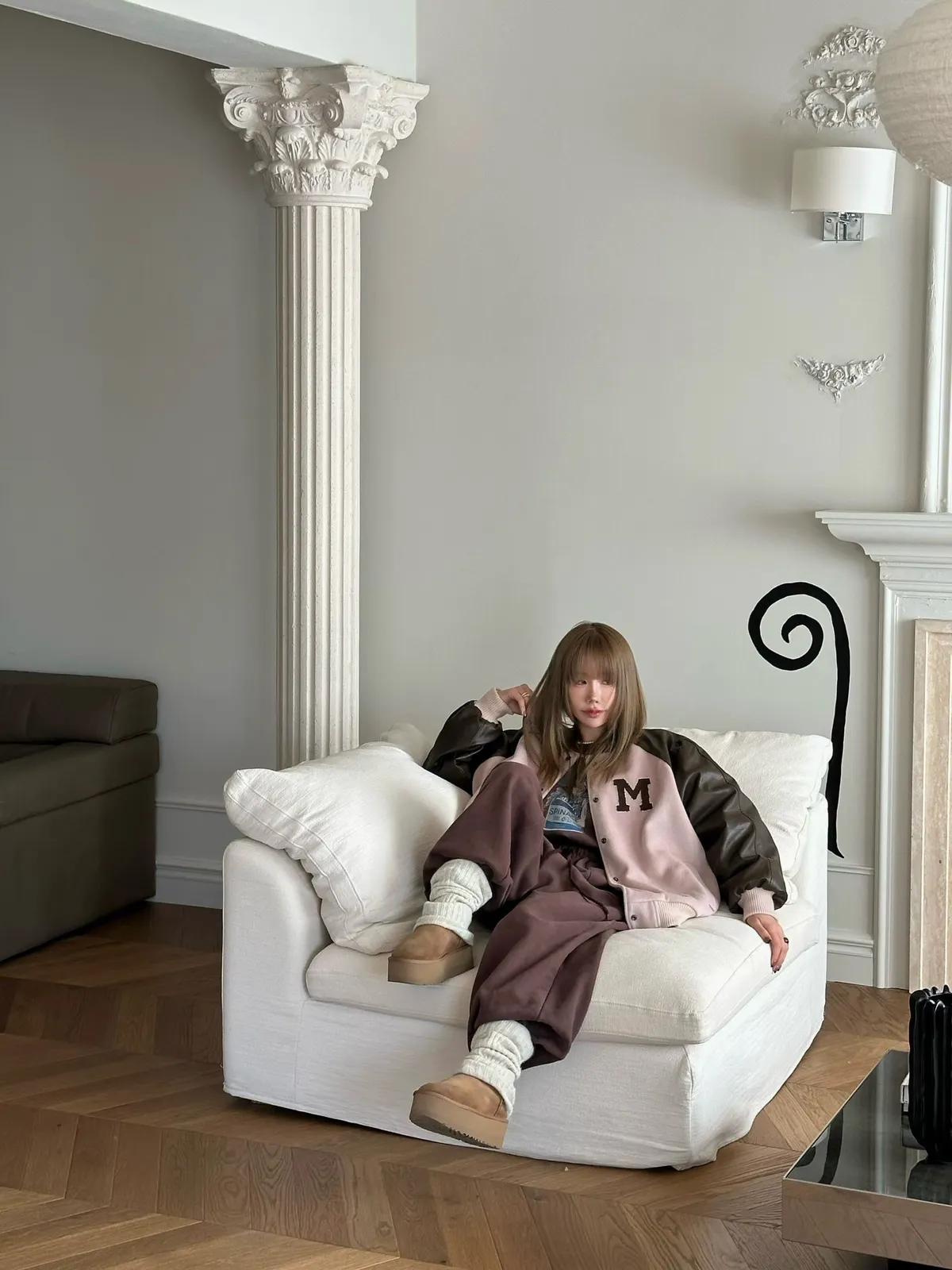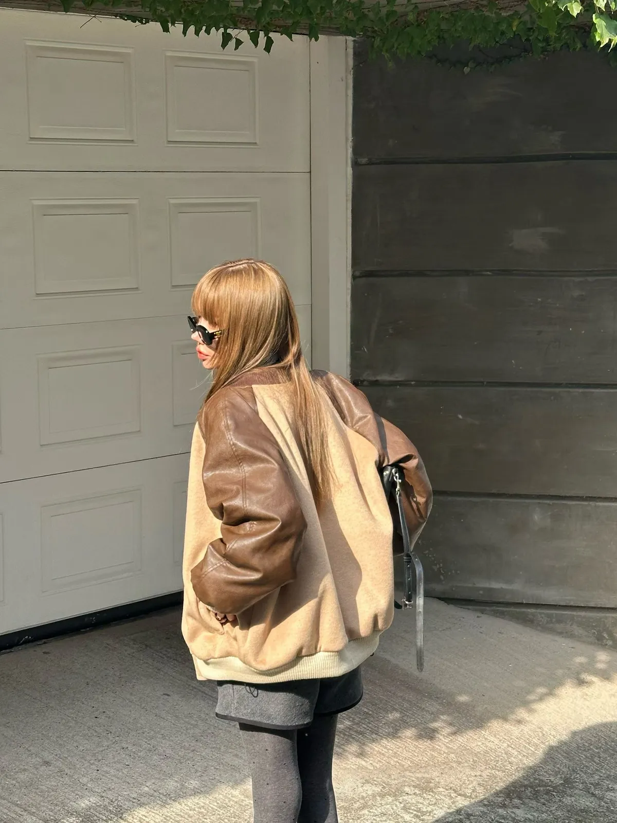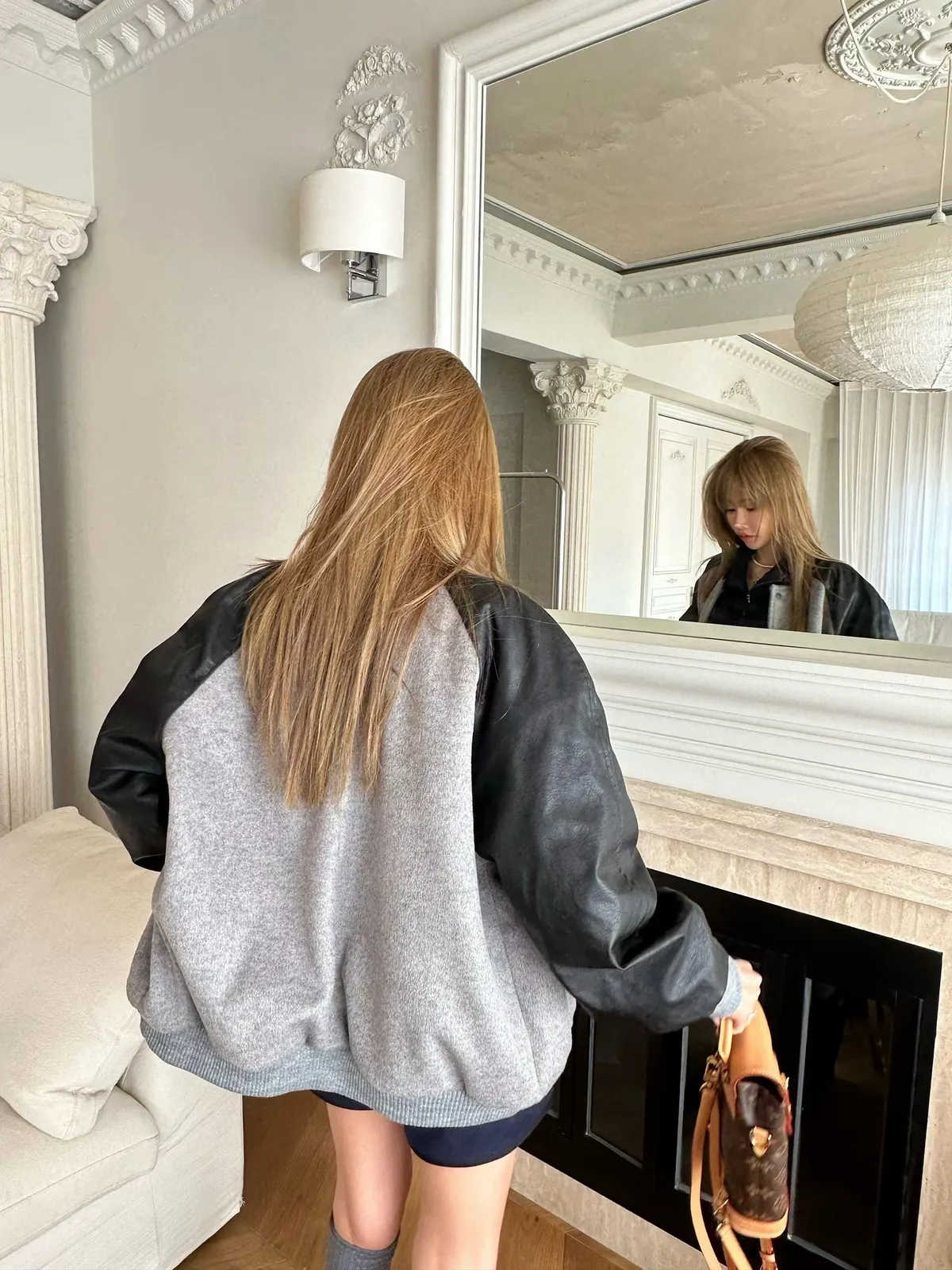 25JK17 羊毛M字拼皮袖棒球外套 3色