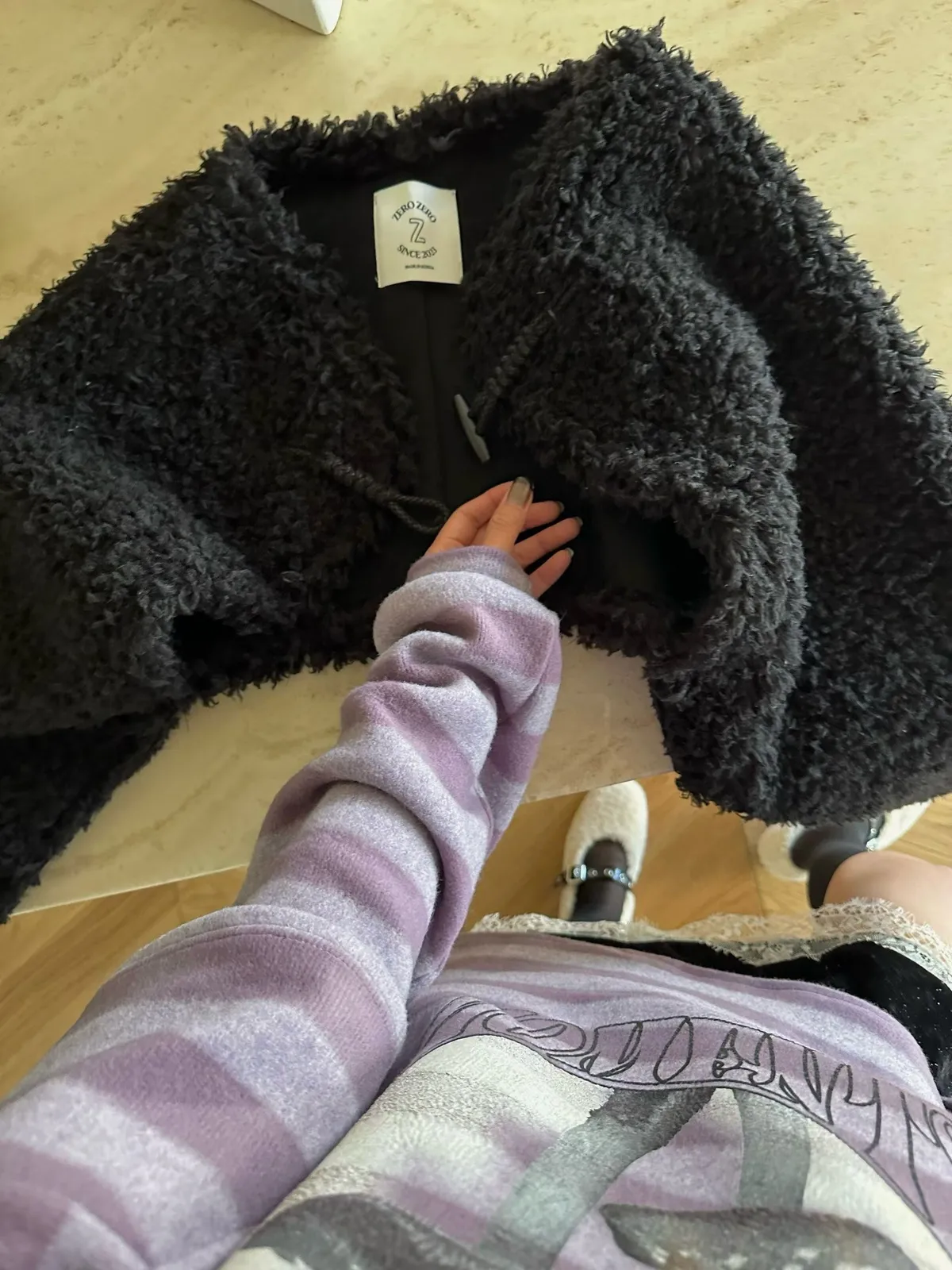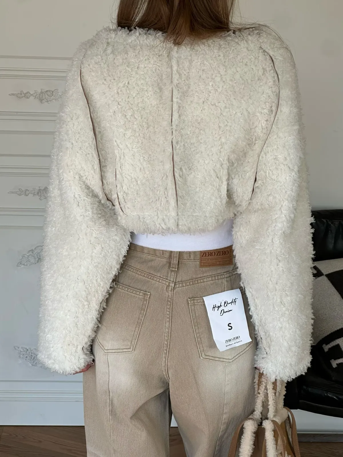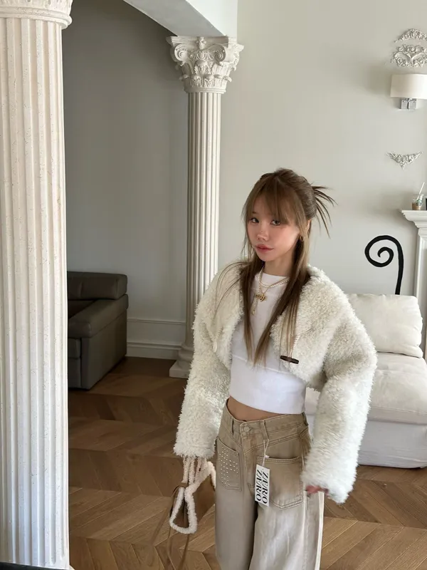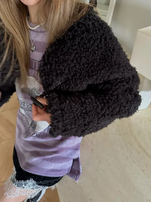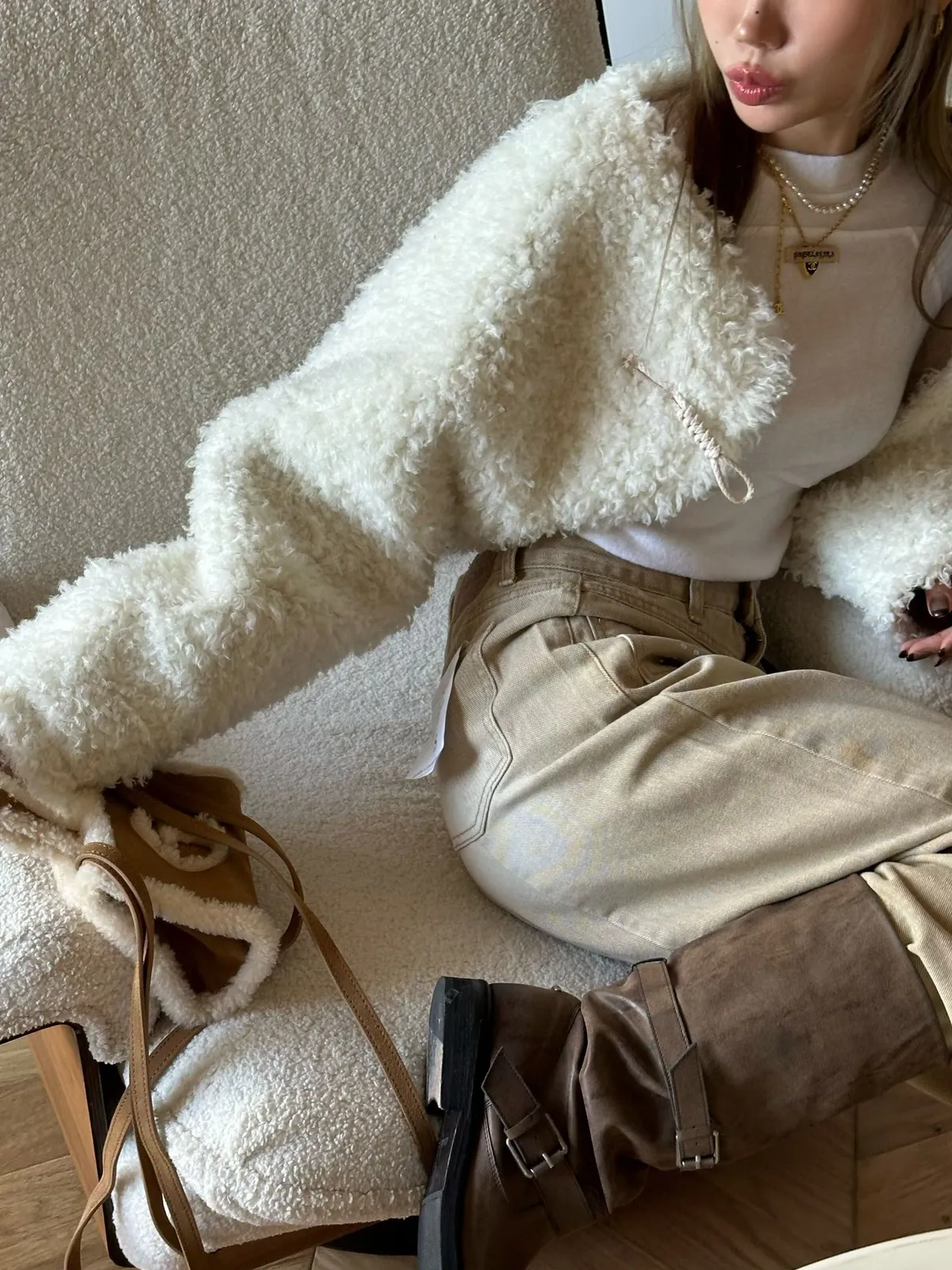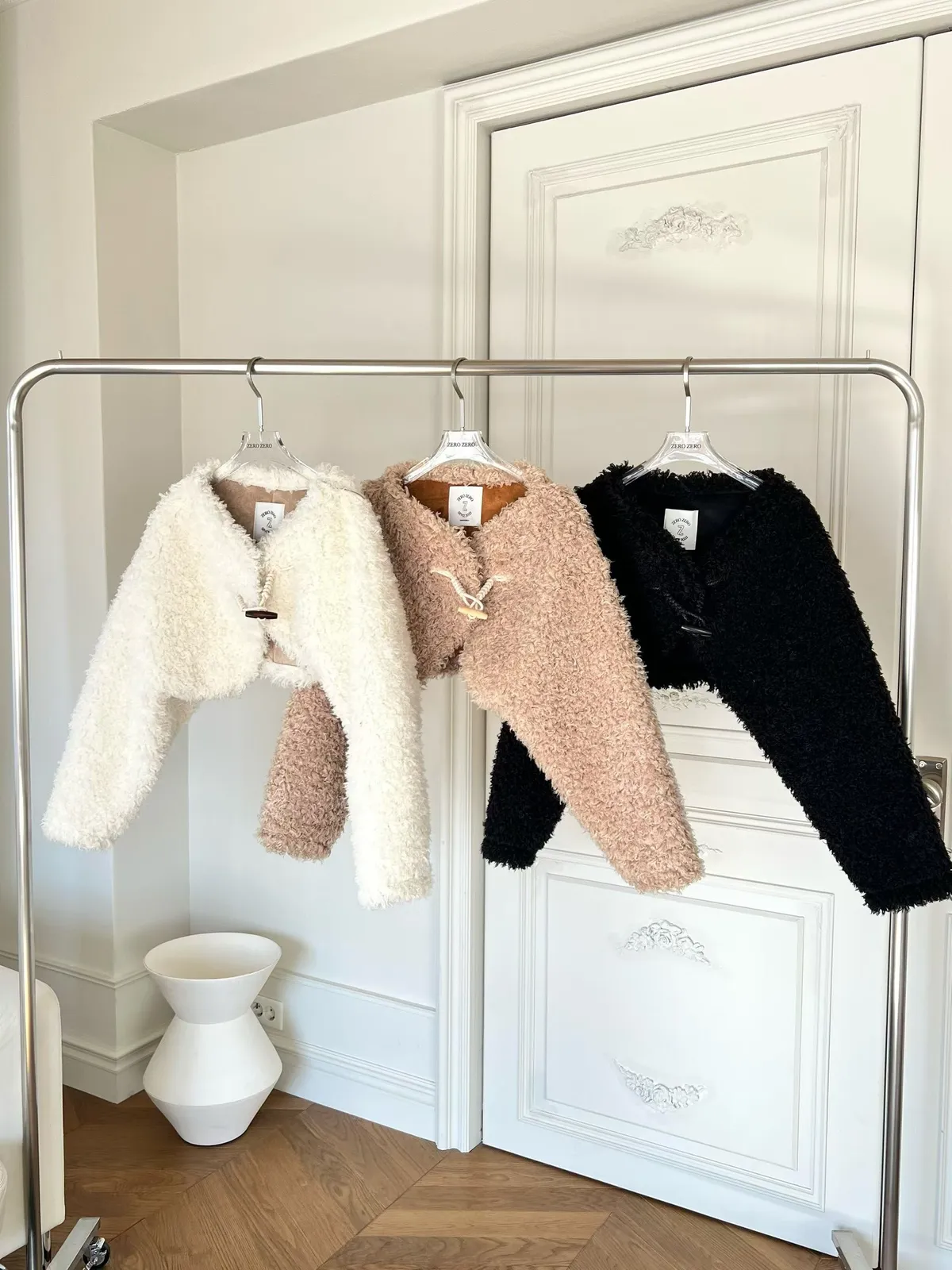 25JK20 卷毛毛麂皮短版牛角扣外罩 3色