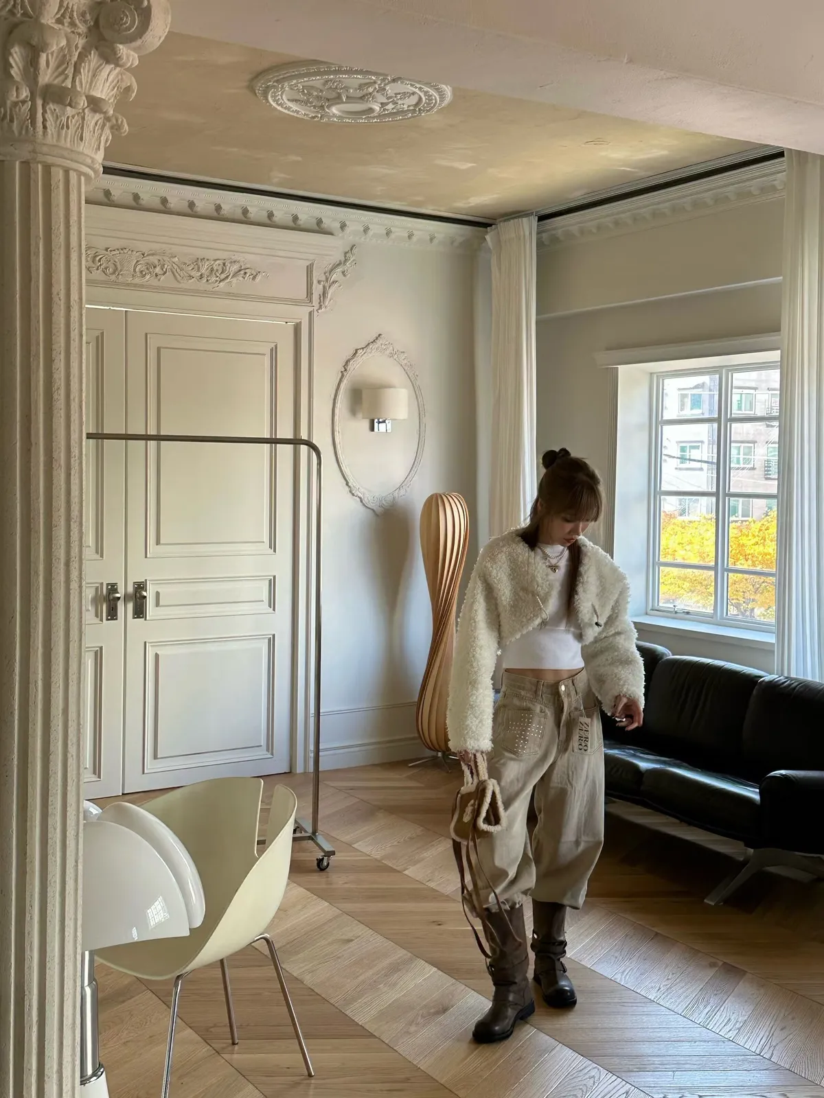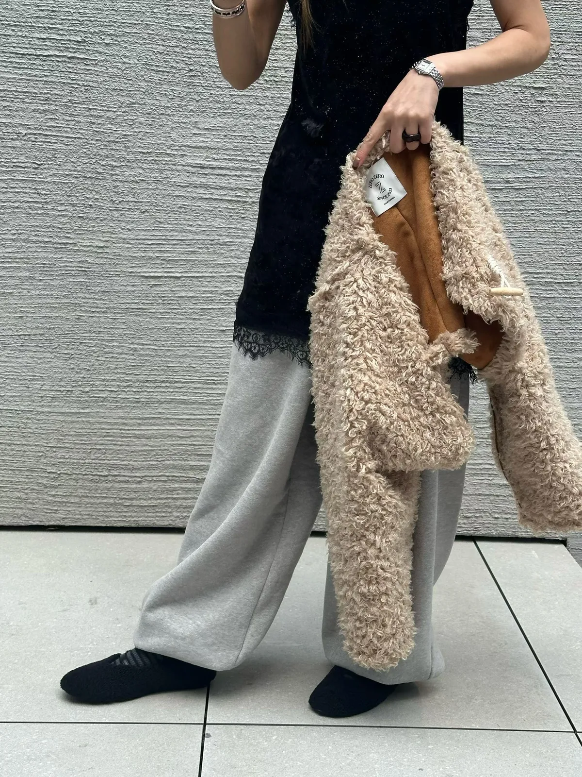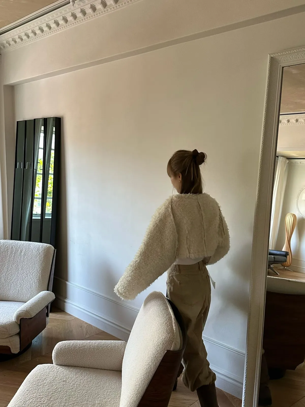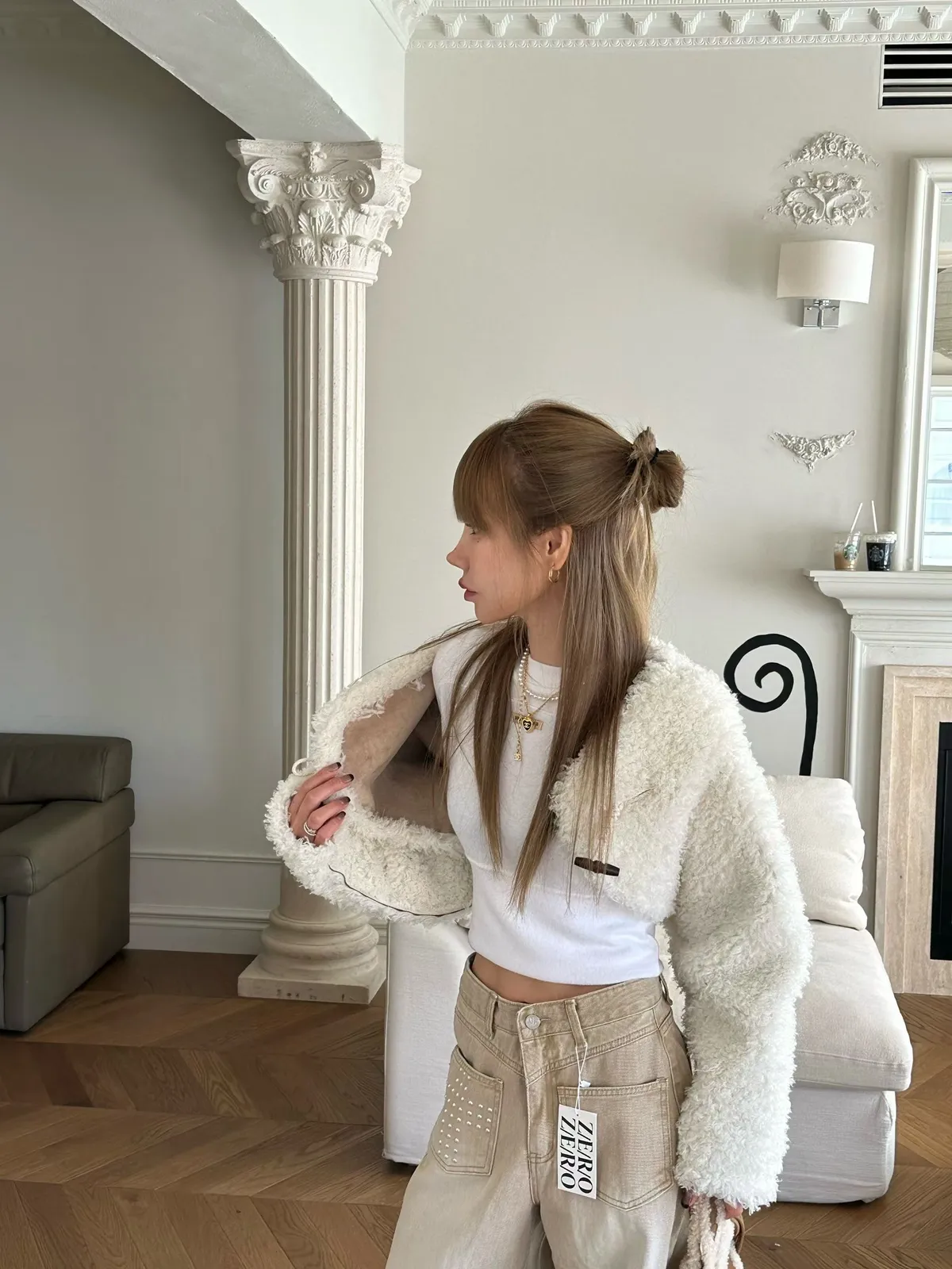 25JK20 卷毛毛麂皮短版牛角扣外罩 3色