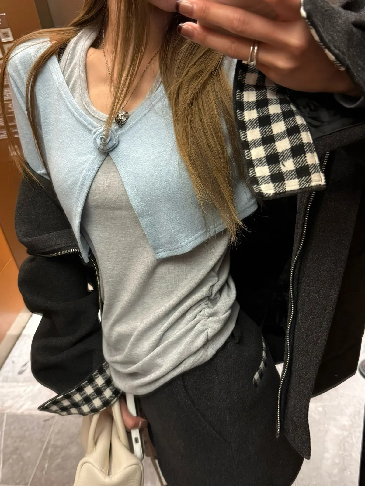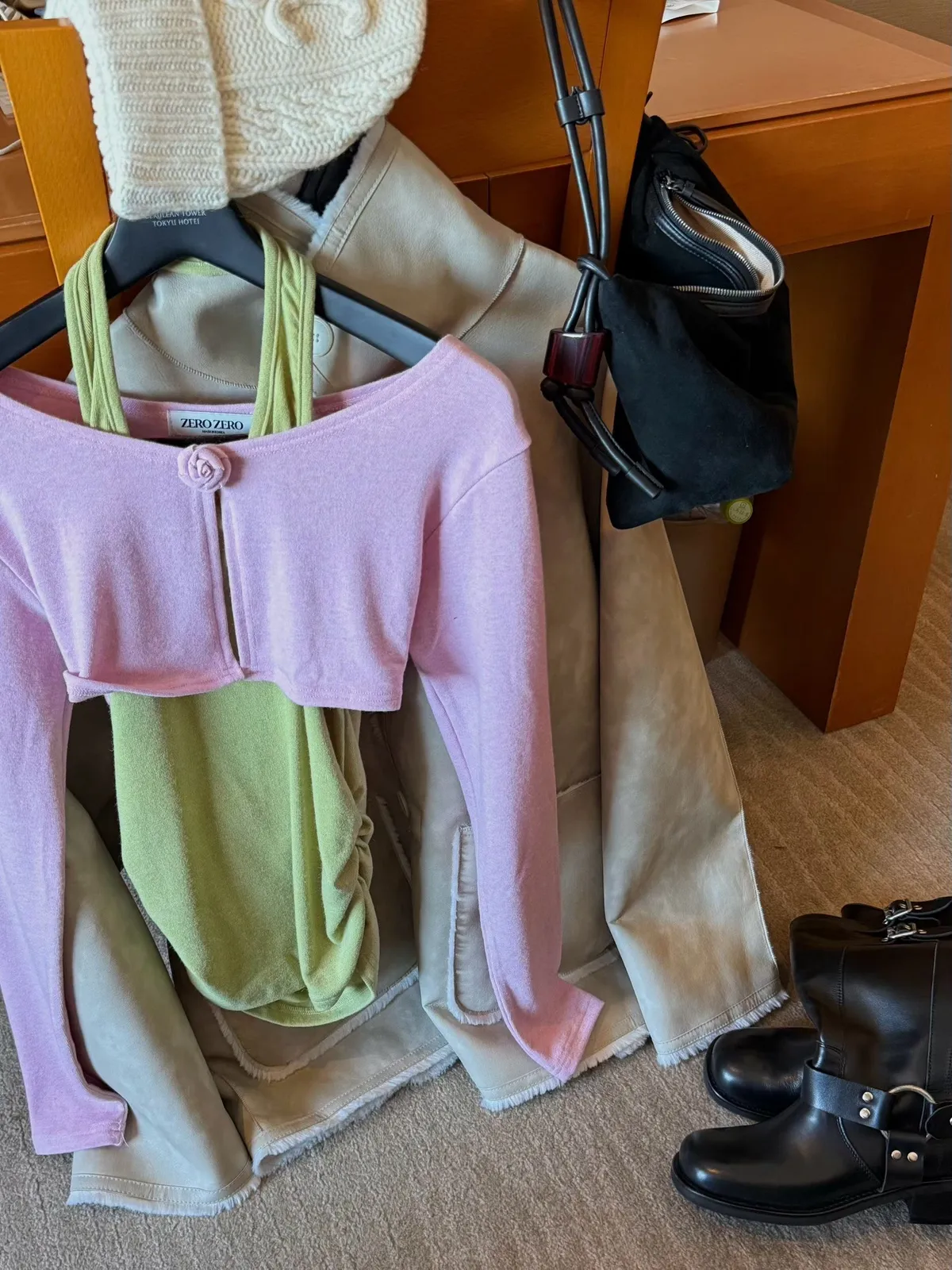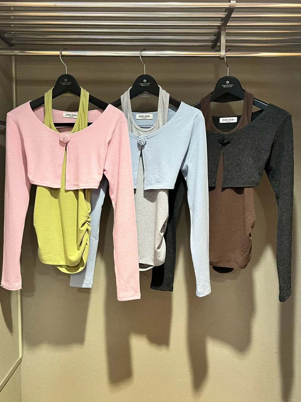 25JK21 假兩件羊絨短版花花外罩+繞脖背心 3色