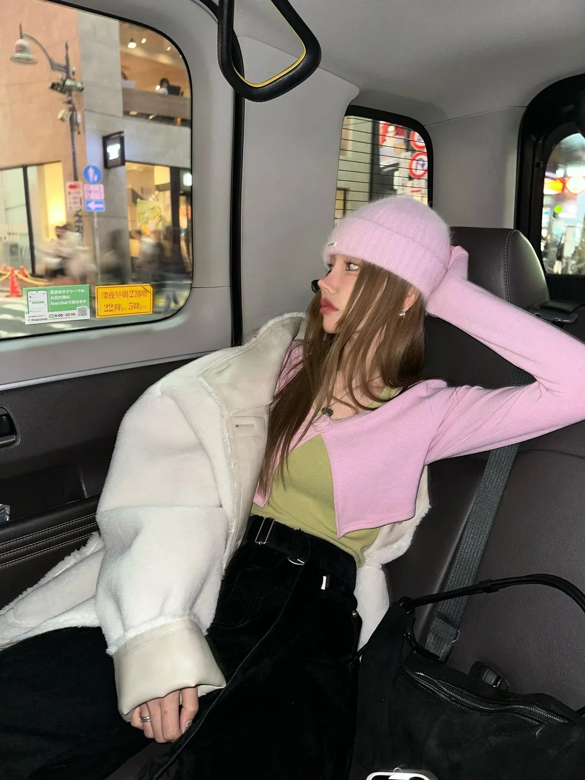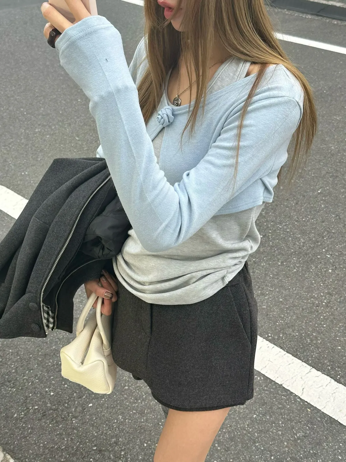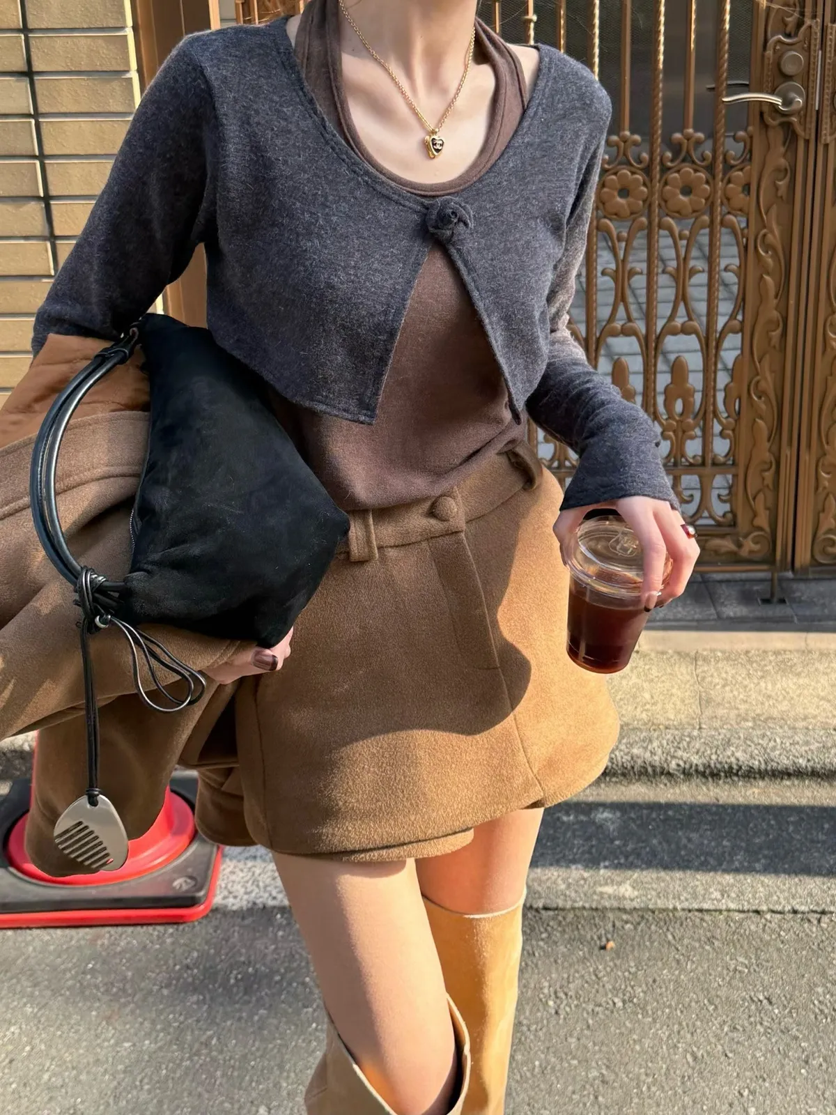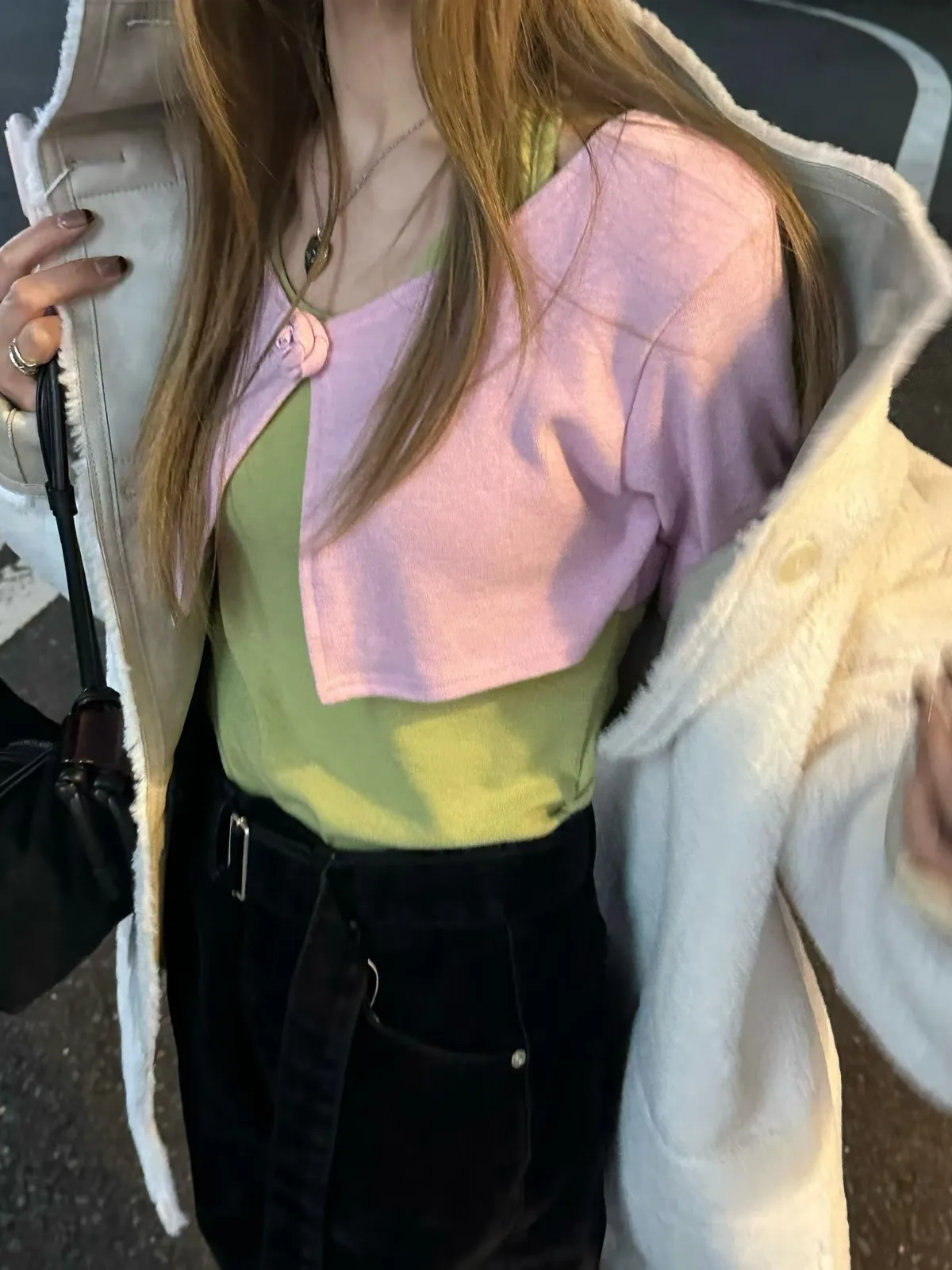 25JK21 假兩件羊絨短版花花外罩+繞脖背心 3色