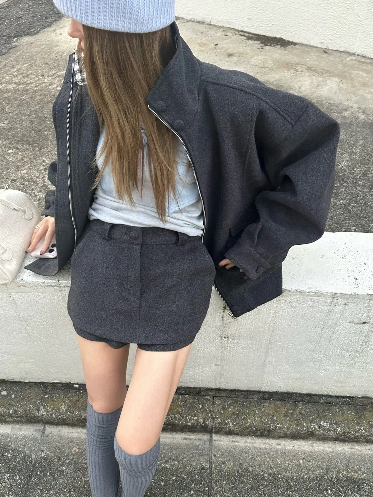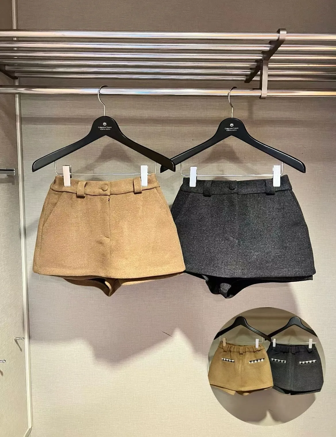 25JK23 羊毛呢後鬆緊短褲裙 2色 SM