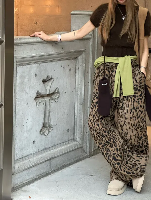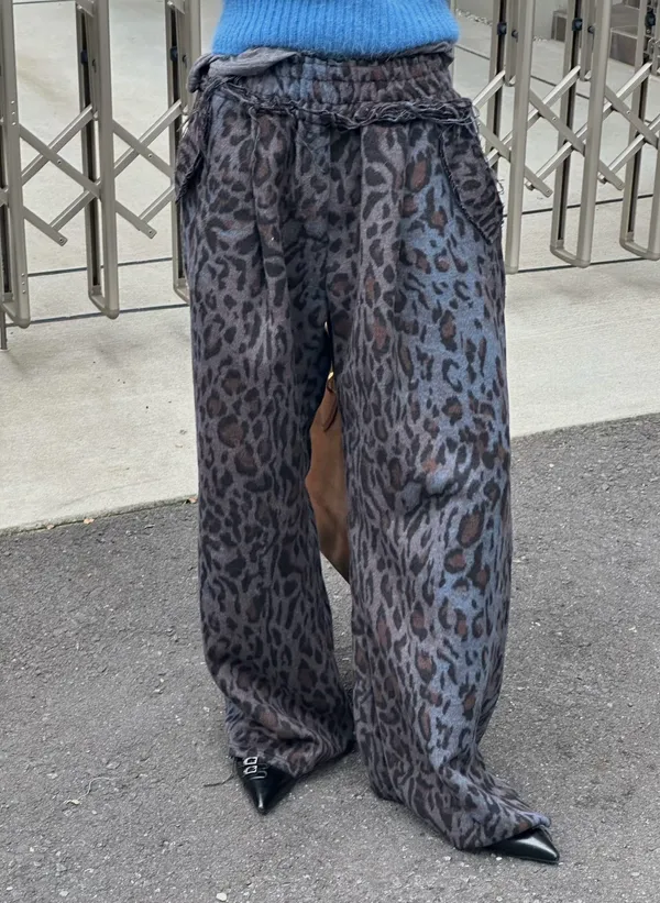 25JK25 羊毛豹紋鬆緊長褲 2色