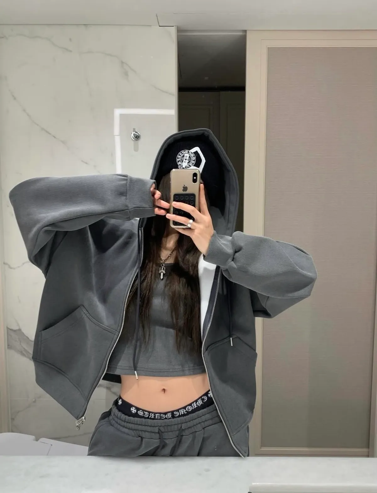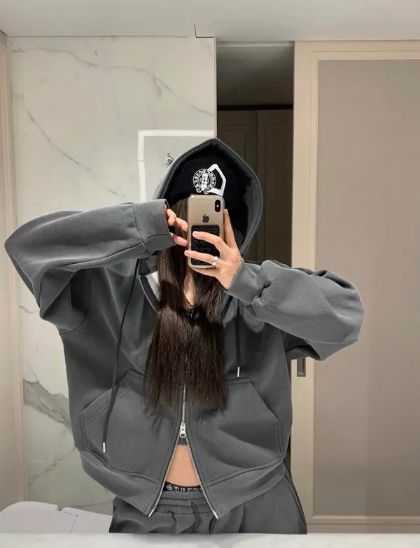 25JL02 壓縮絨中長版雙拉鏈連帽外套 3色