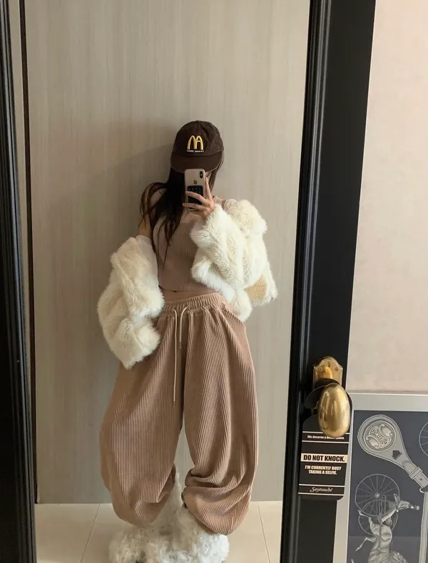 25JL09 燈芯絨兩穿縮腳棉長褲 4色