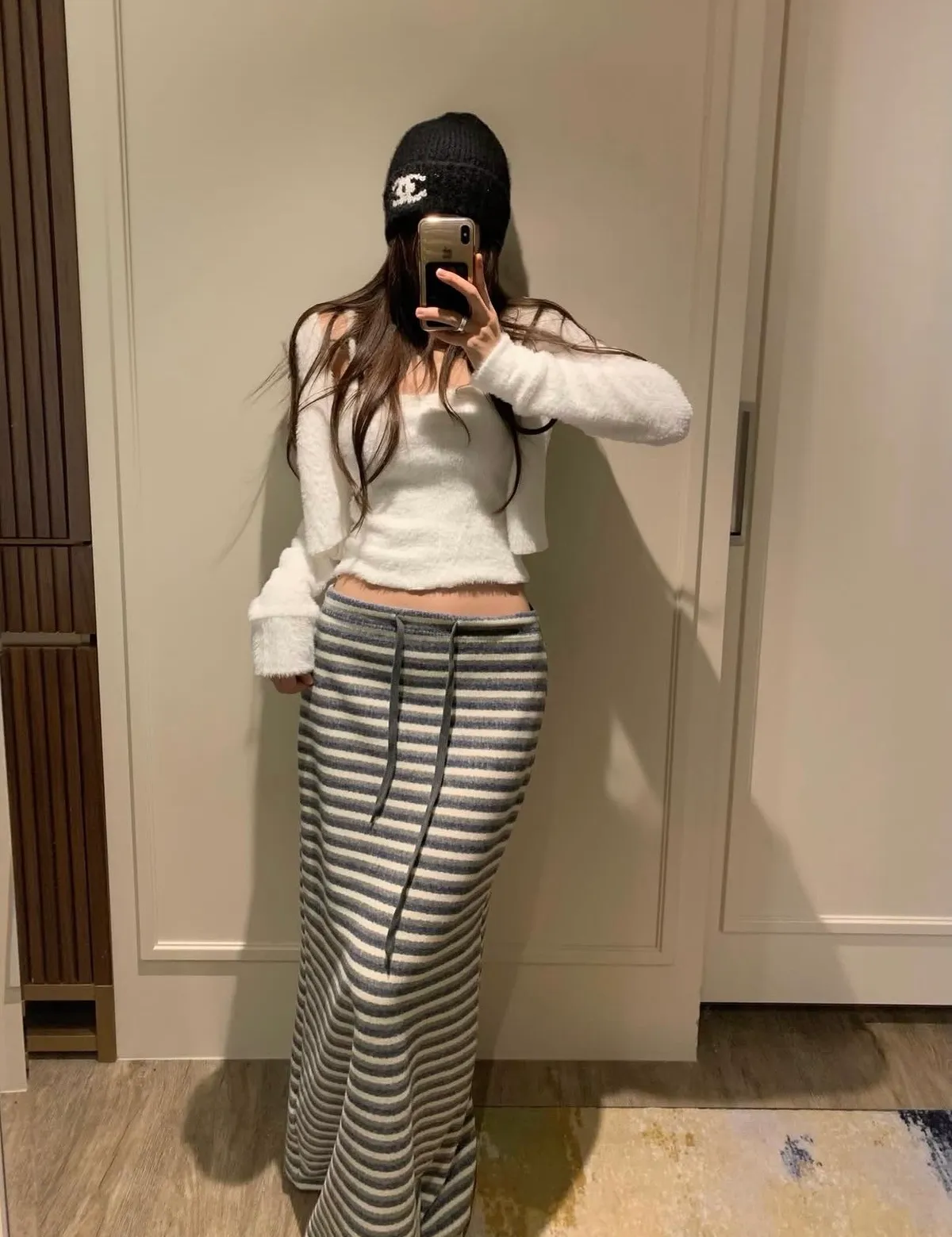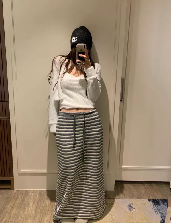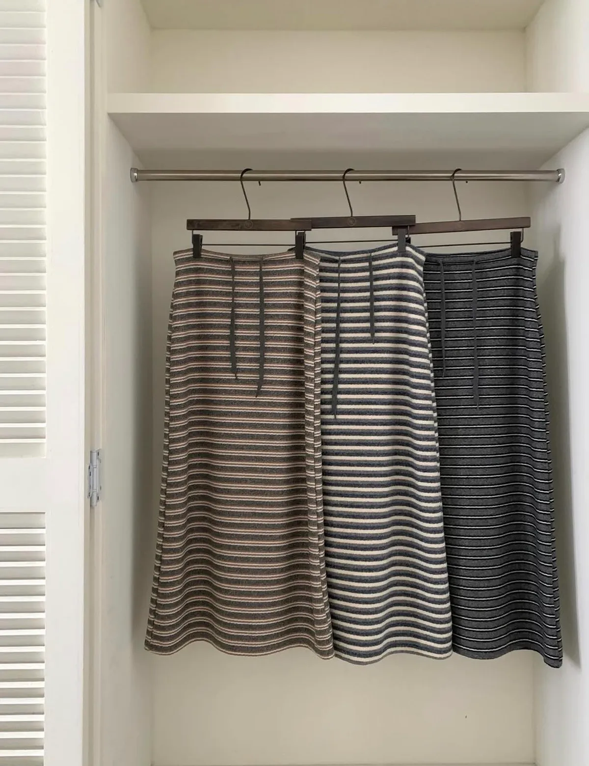 25JL16 絨料撞色條紋中低腰長裙 3色