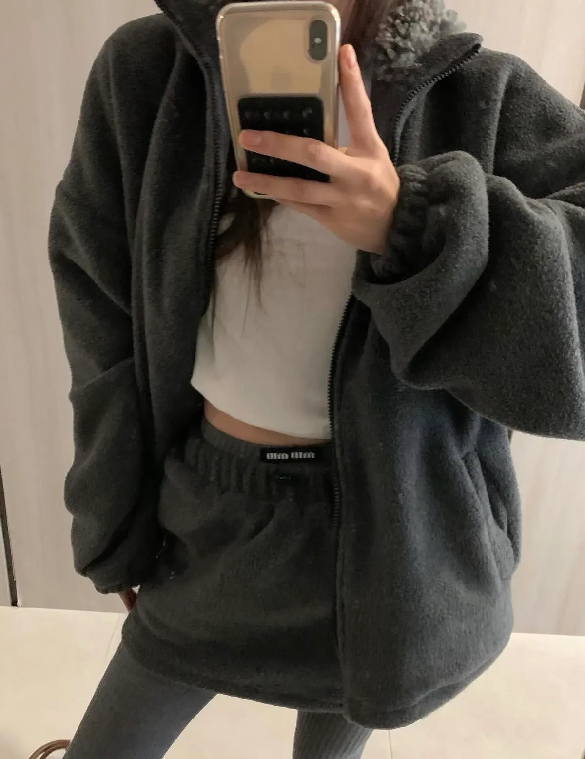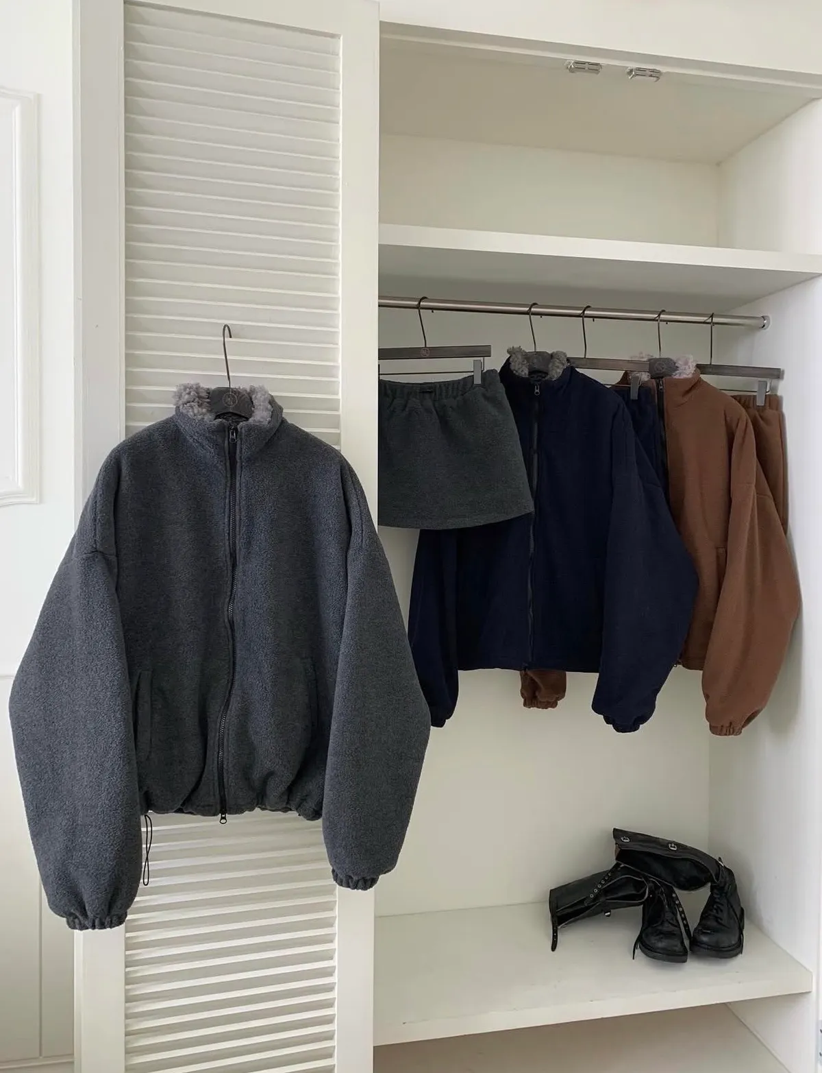 25JL23 搖粒絨立領QQ毛內夾棉外套 3色