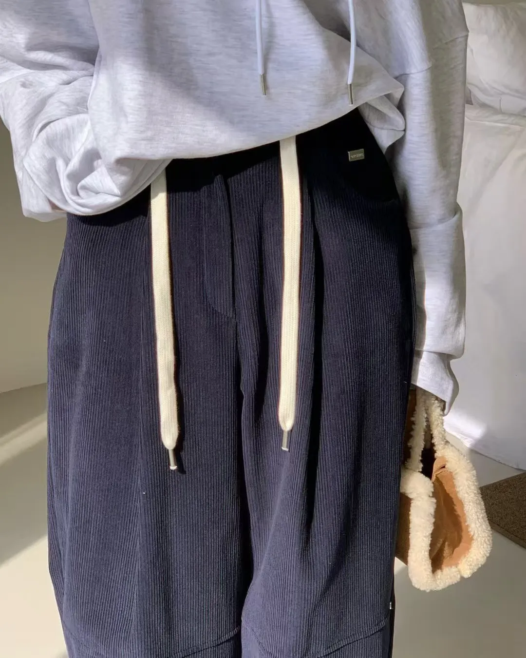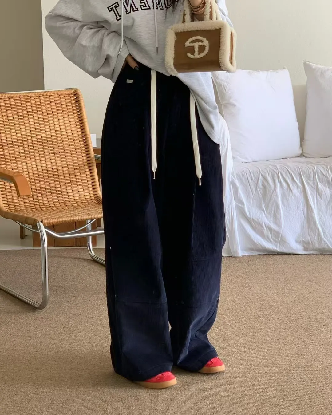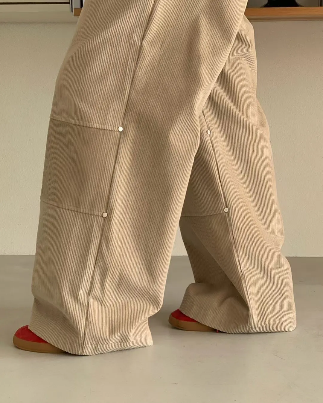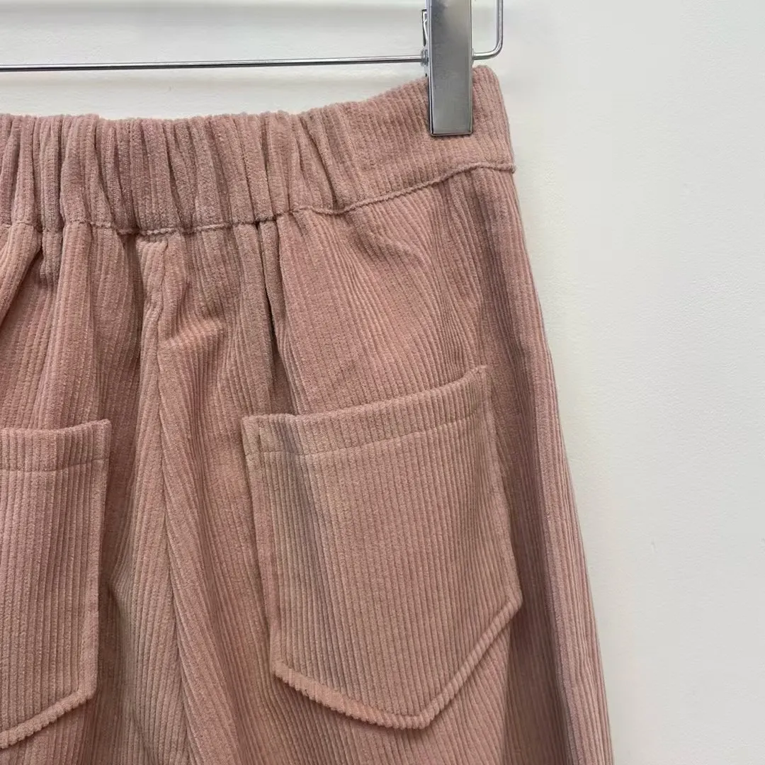 25JM13 燈芯絨後鬆緊釘扣休閒長褲 3色